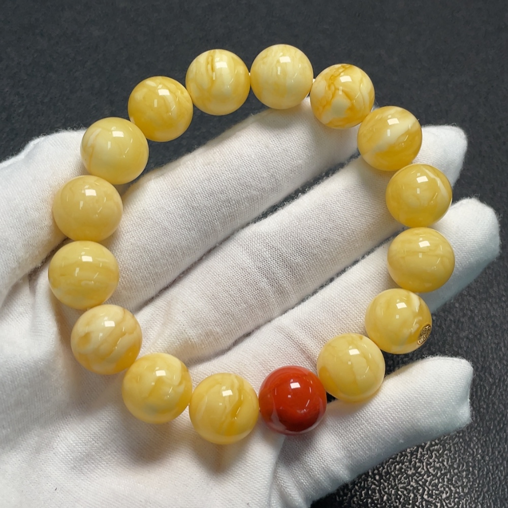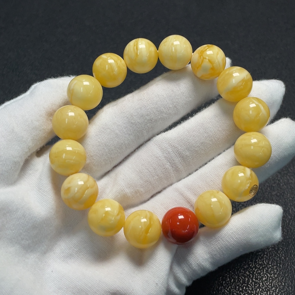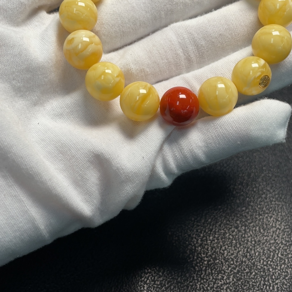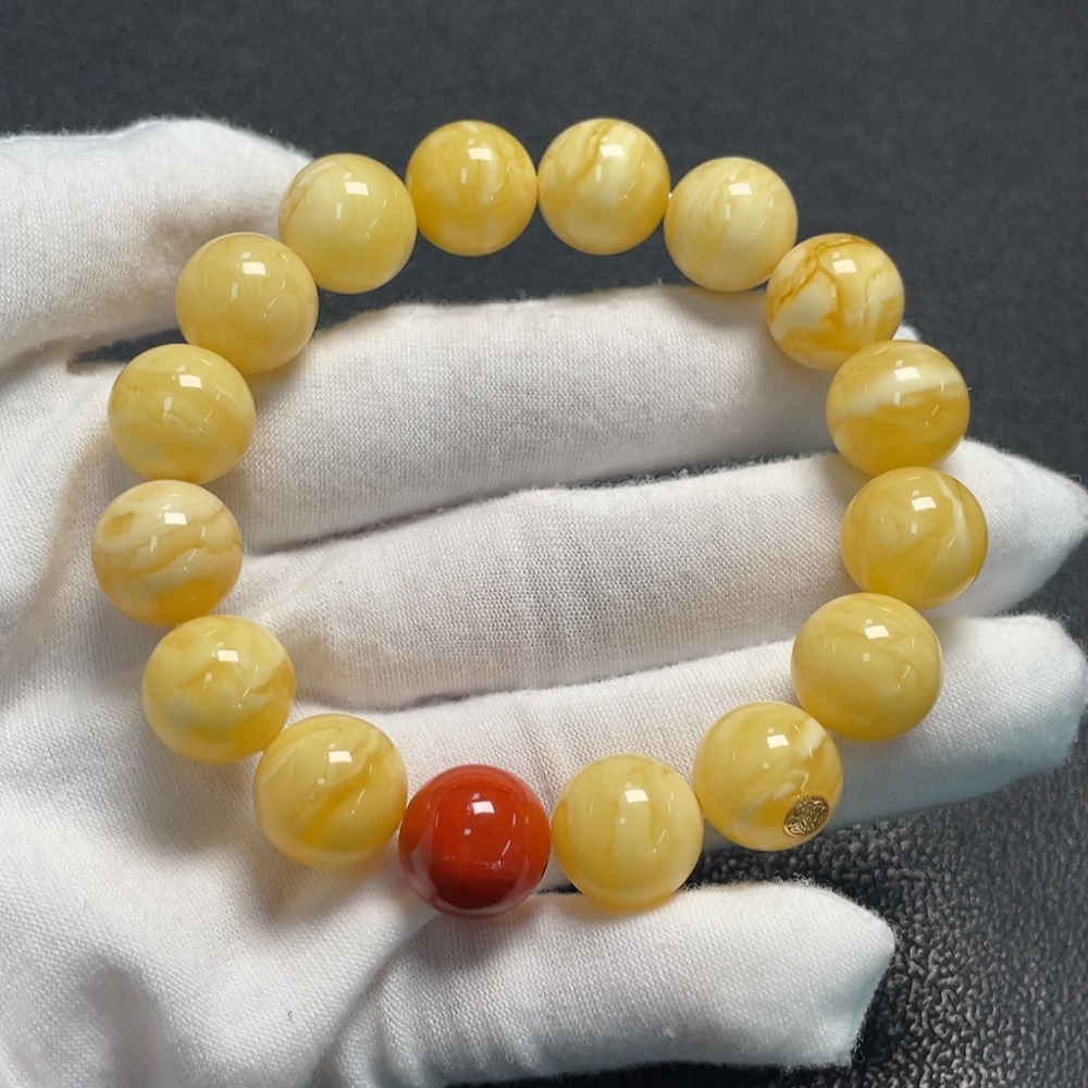 Amber and Beeswax Bracelet, Total Weight Approx. 22.09g, Size 12.8mm, with Southern Red Agate