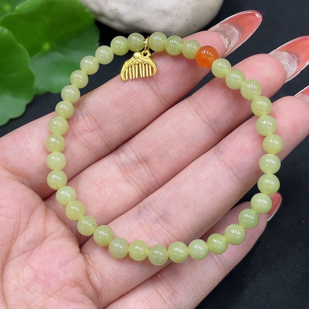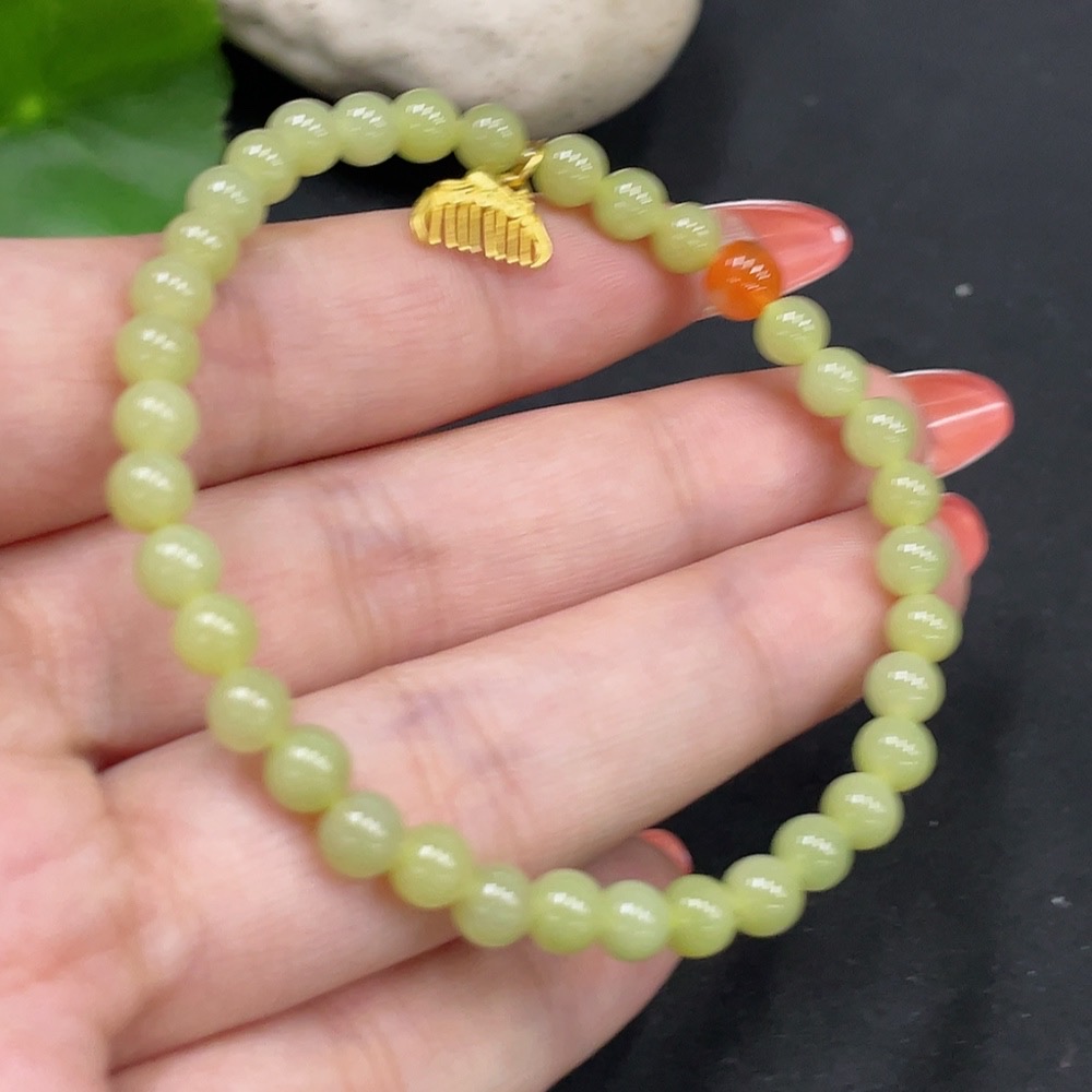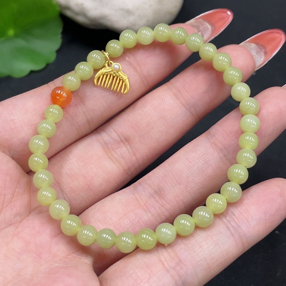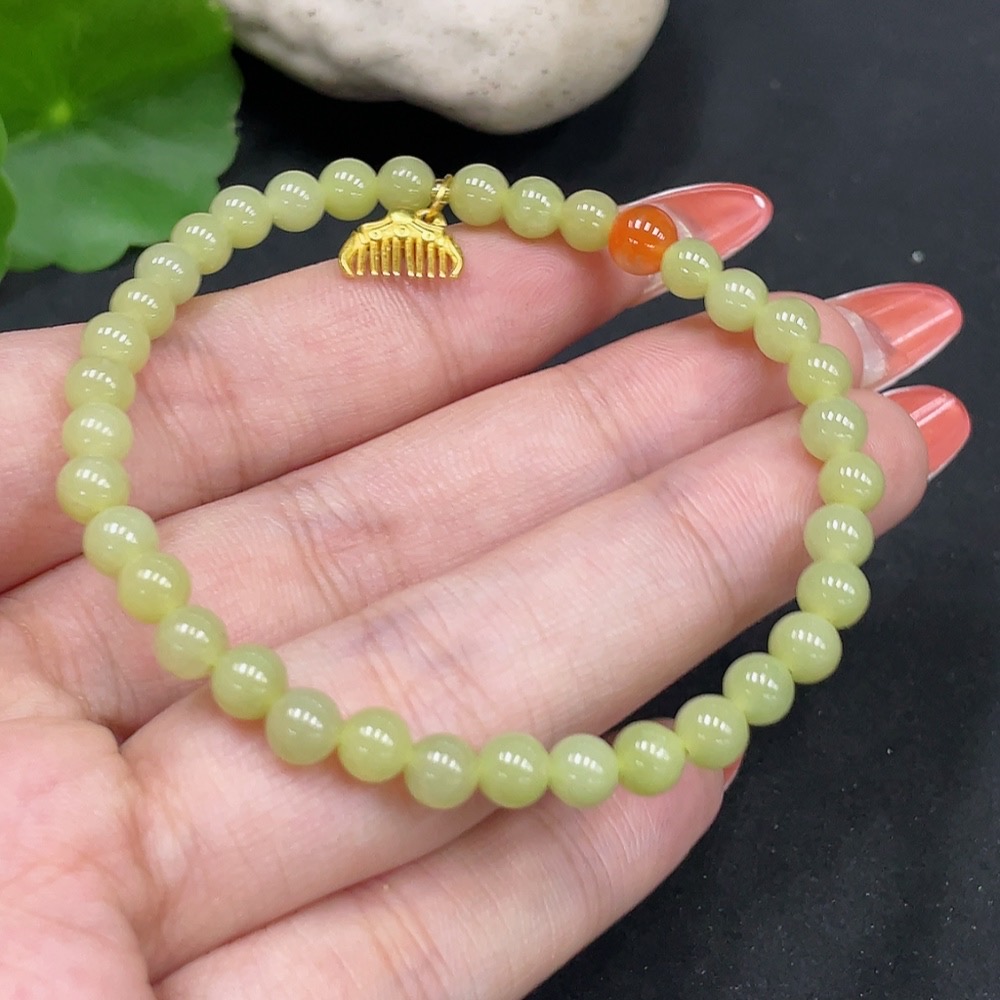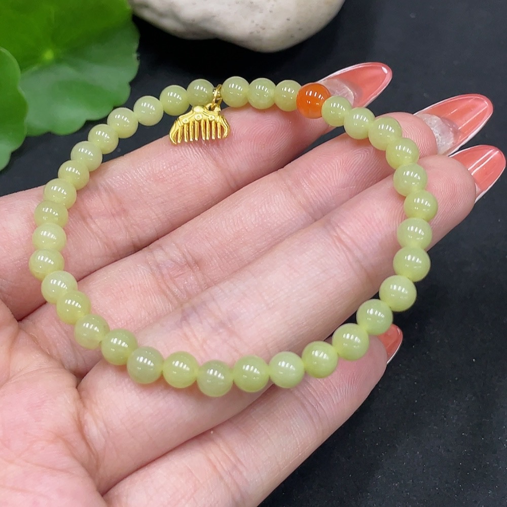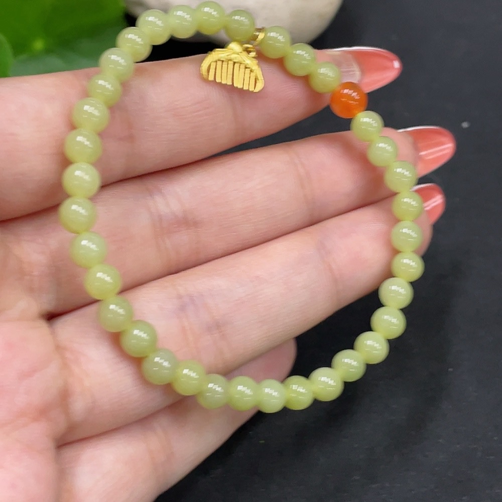 Hetian Jade Bracelet, Approx. 4.8mm, Total Weight Approx. 7.3g, Non-Gold, Beads Not Hetian Jade