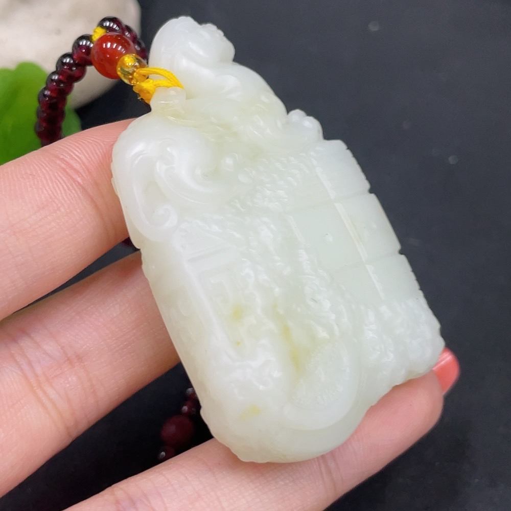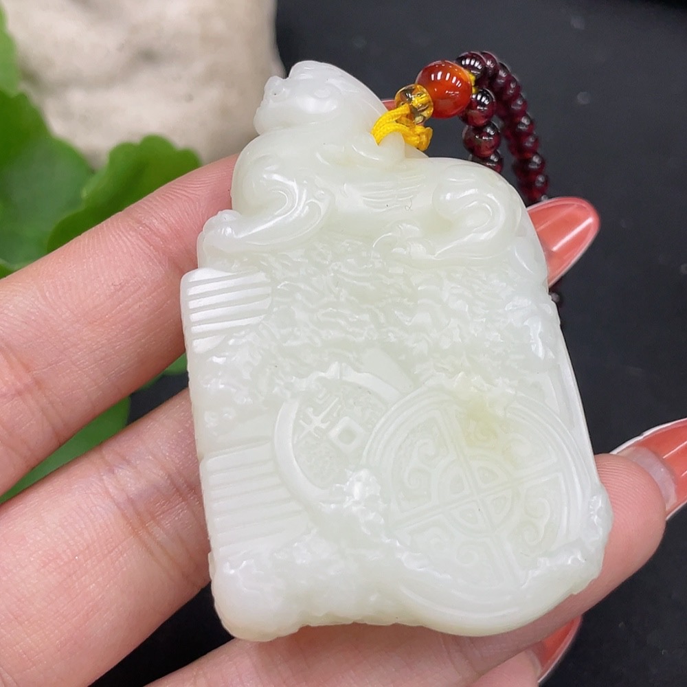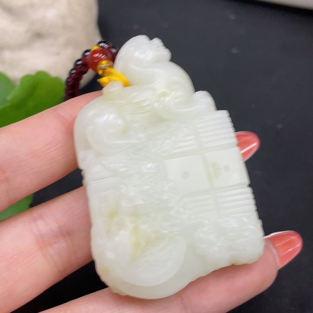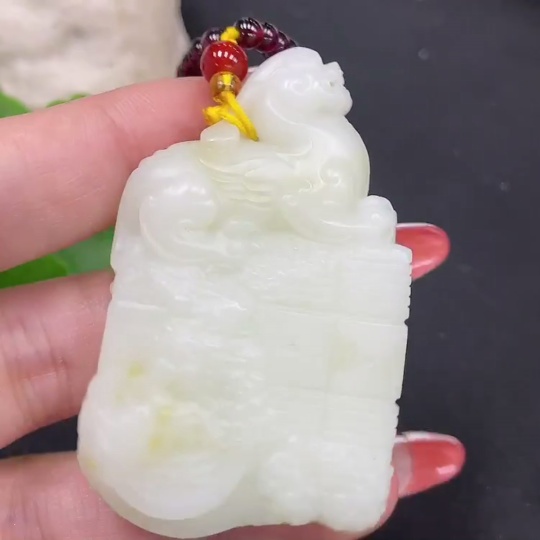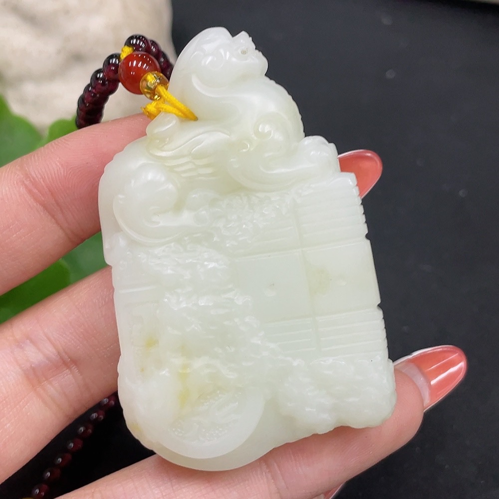 Hetian Jade Pendant Auspicious Beast with Non-Hetian Jade Chain