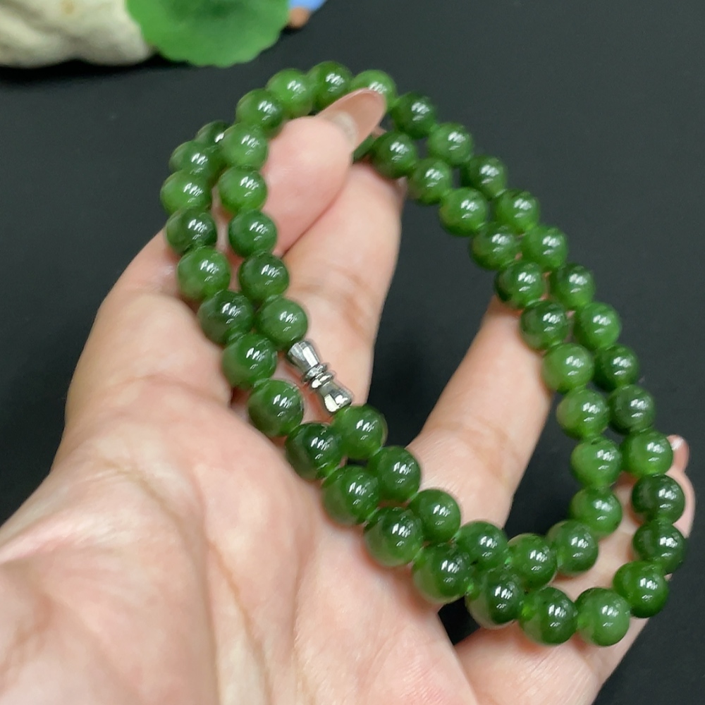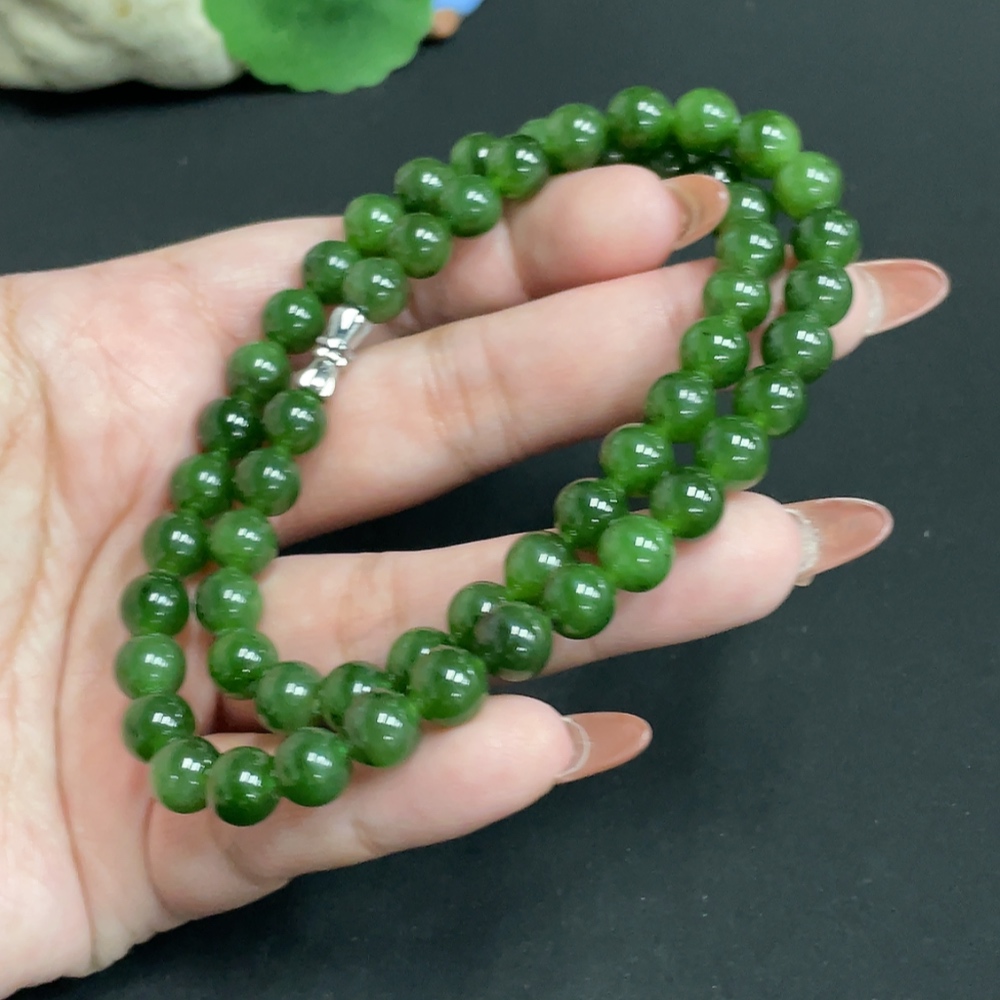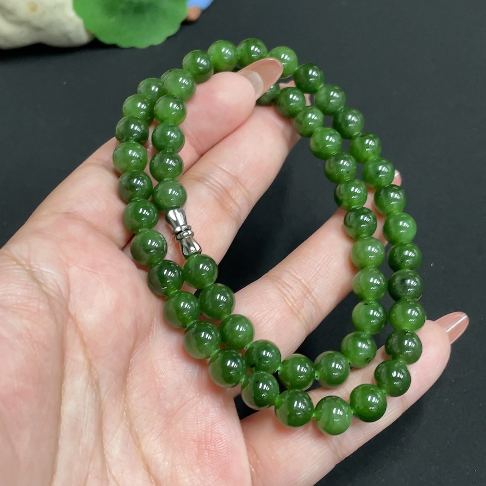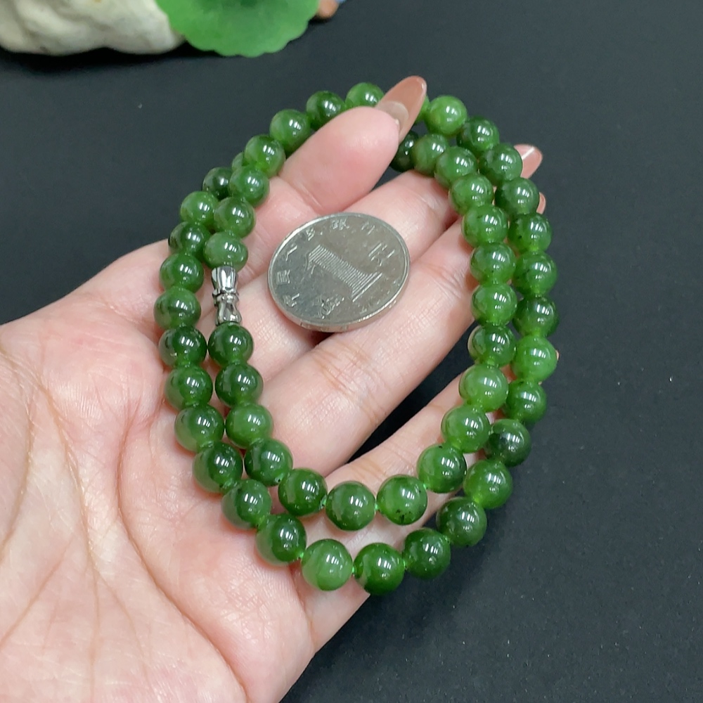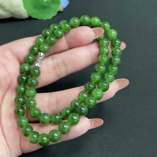 Hetian Jade Bead Chain, approx. 7.7mm, total weight approx. 45.2g