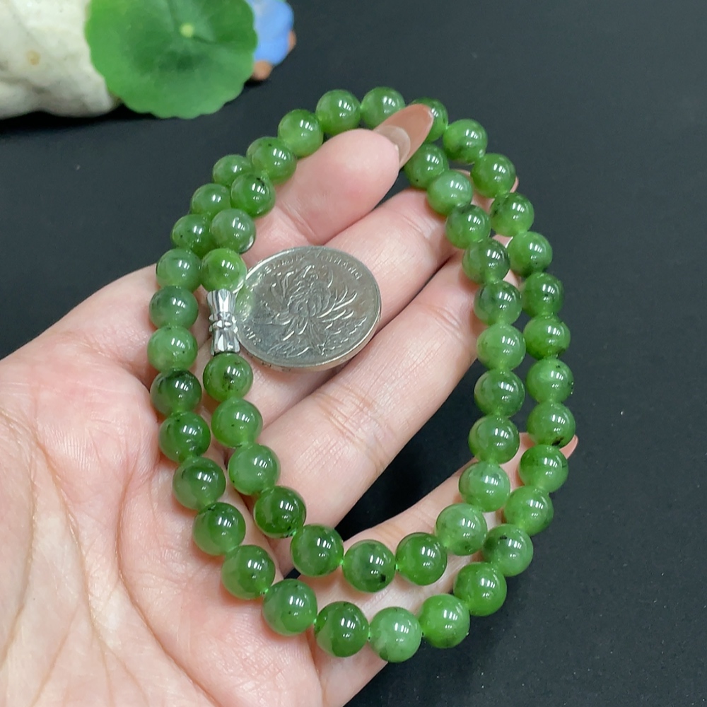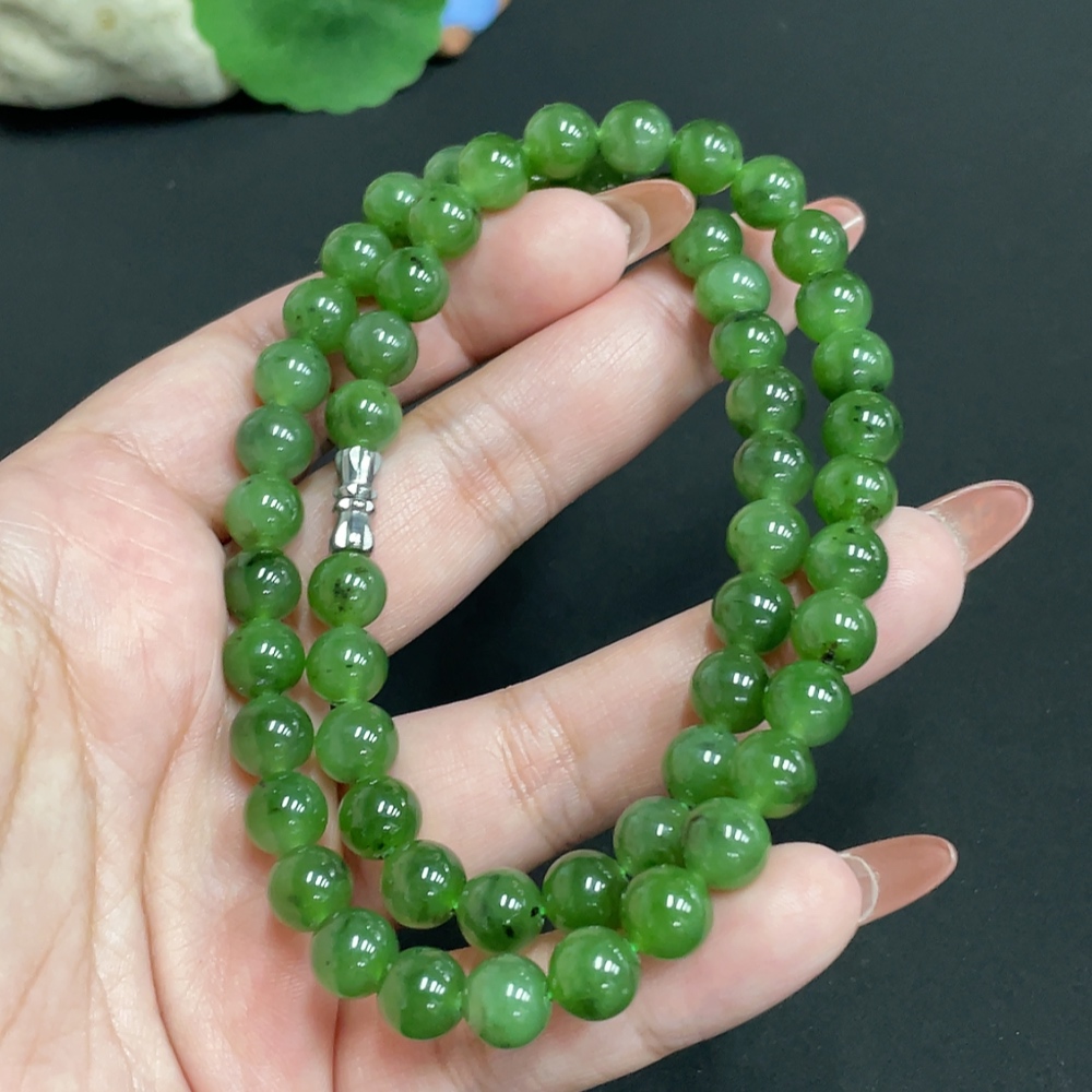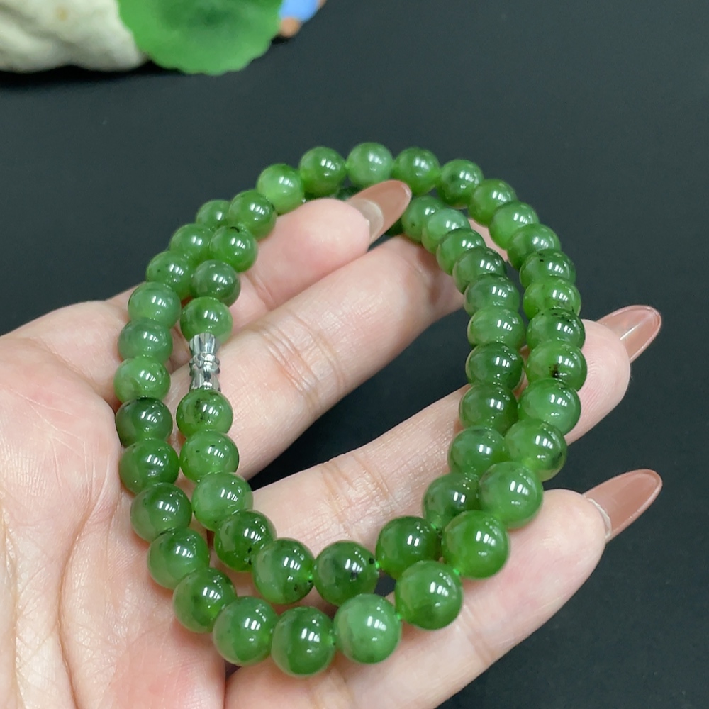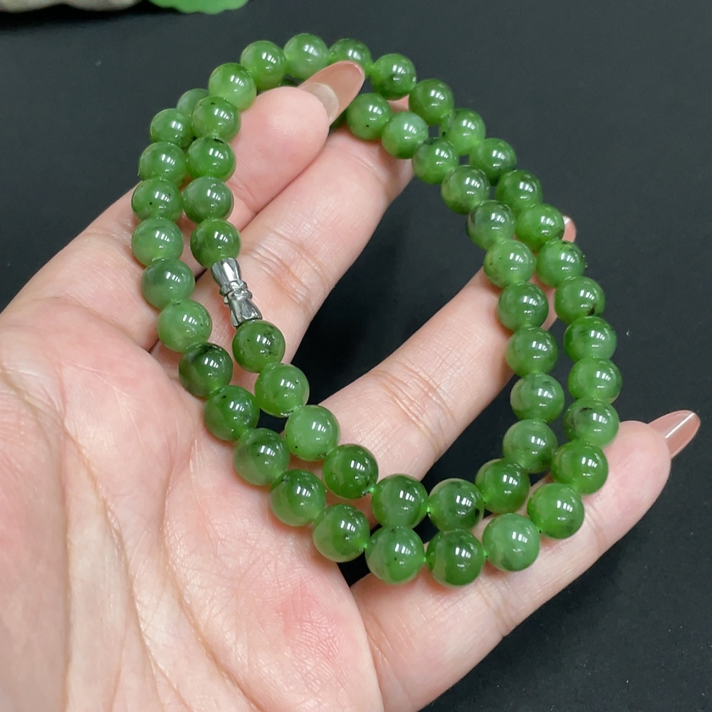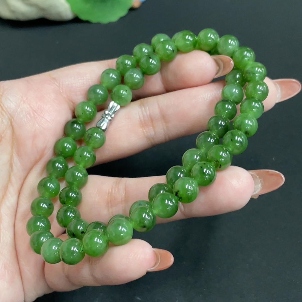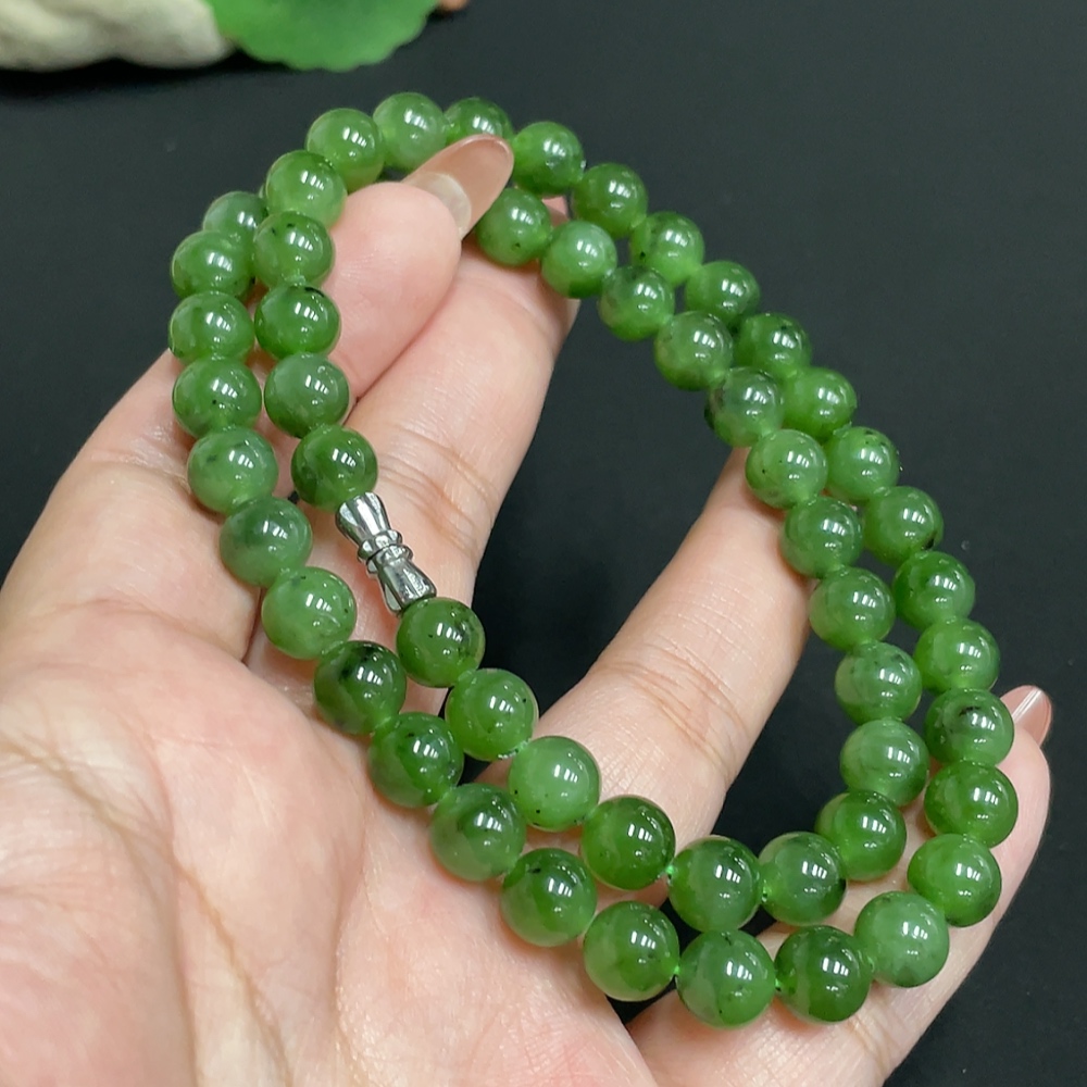 Hetian Jade Bead Necklace Approx. 7.8mm Total Weight Approx. 46.1g