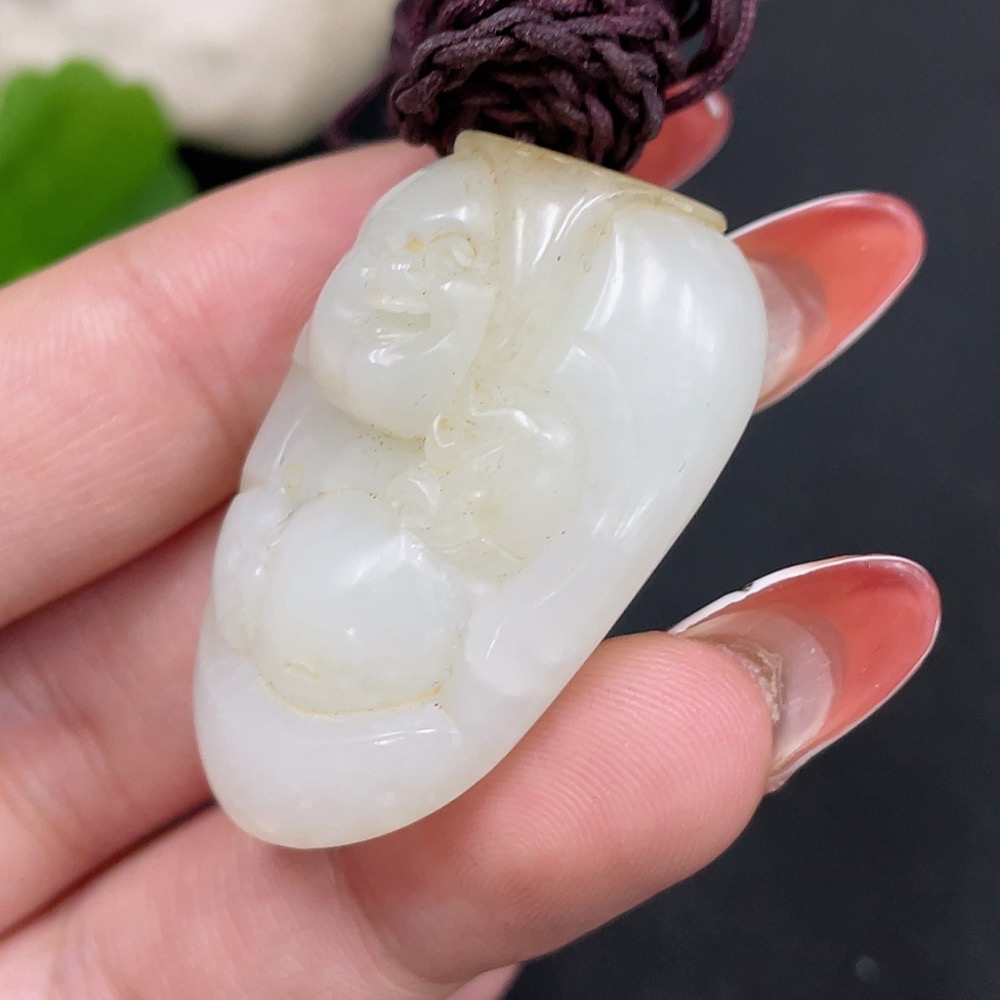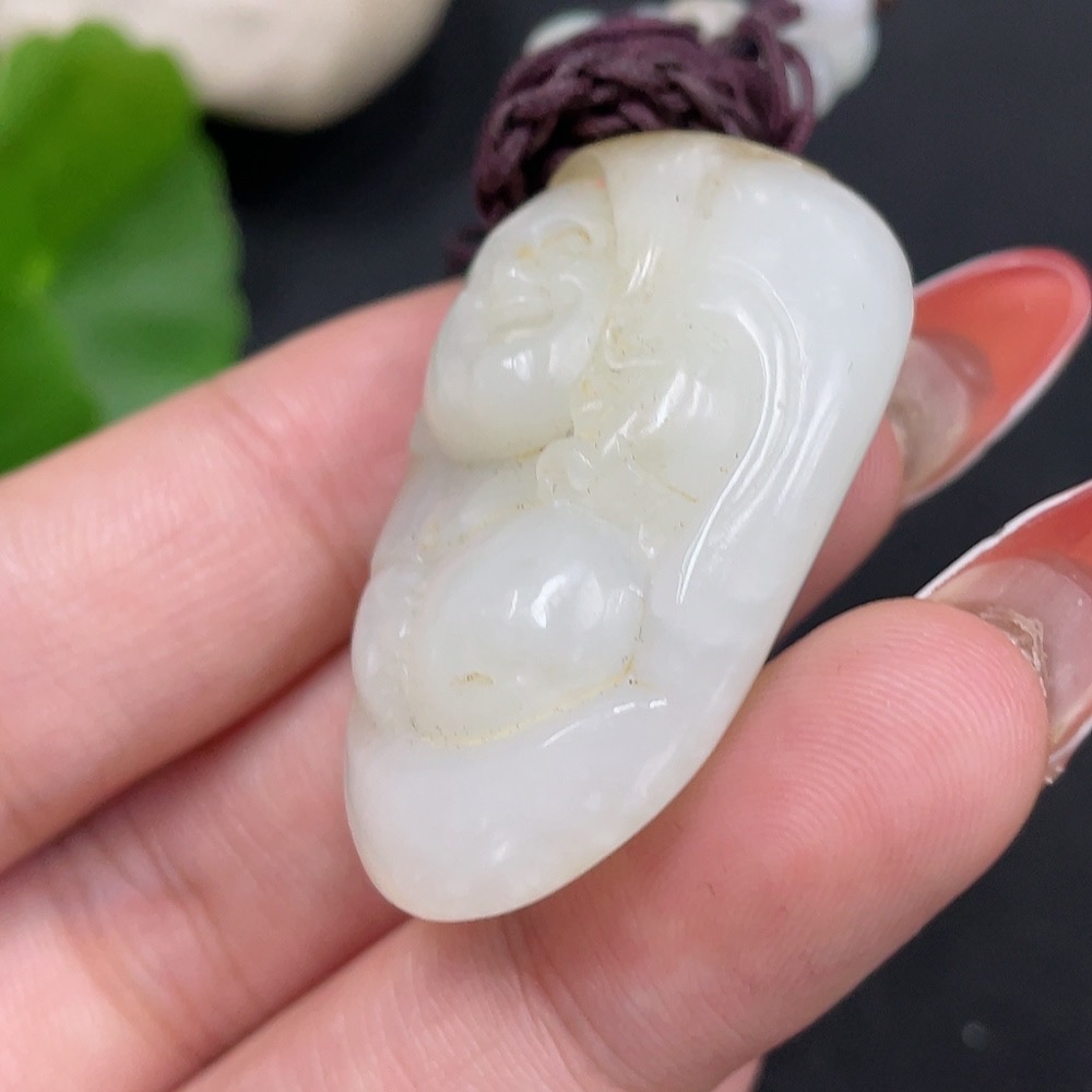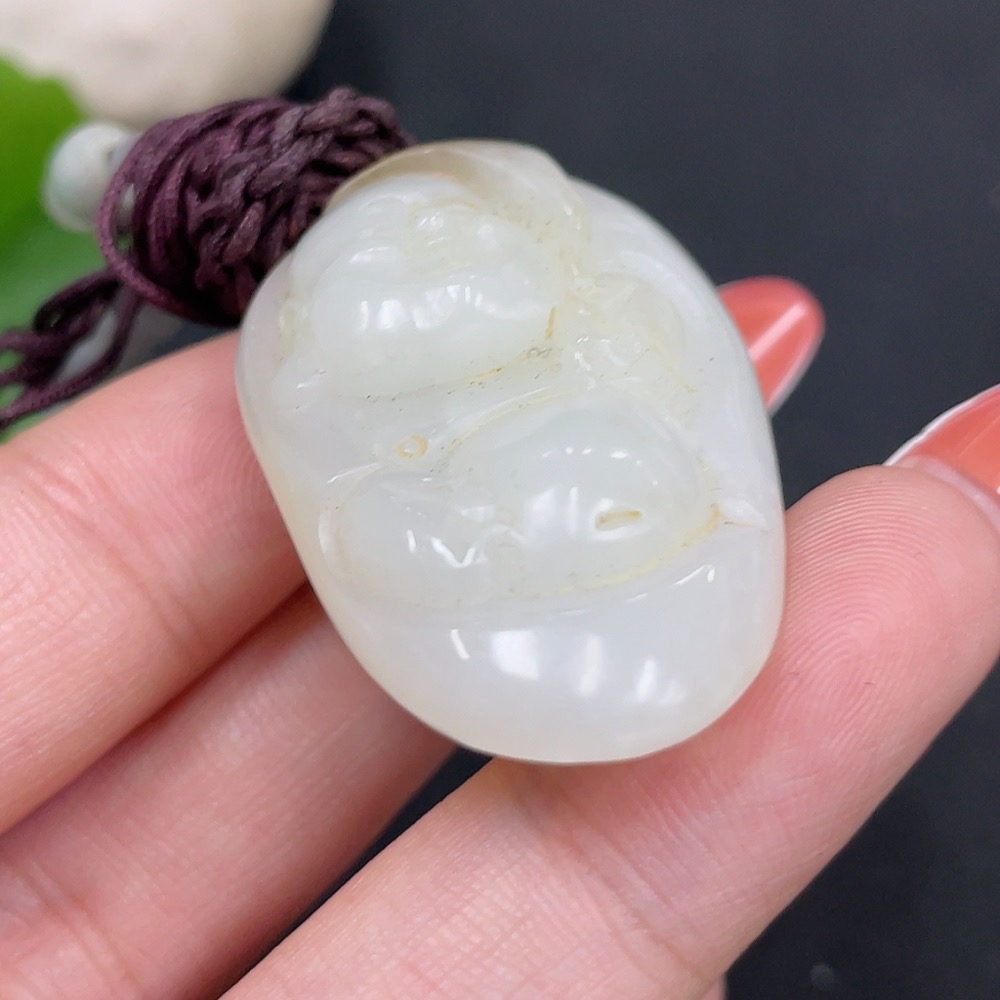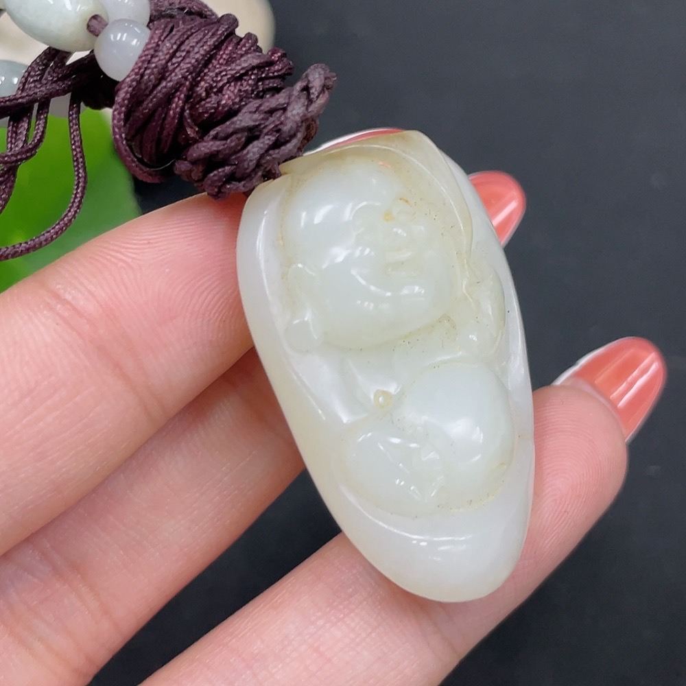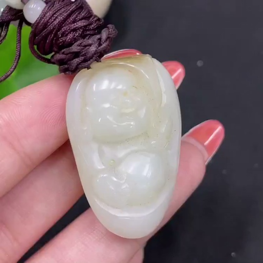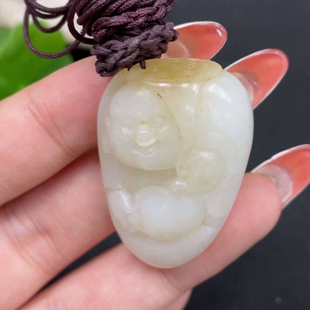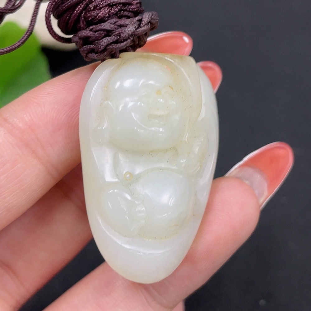 Hetian Jade Pendant - Buddha Statue, Undetermined Skin Color Origin, Beads Not Hetian Jade, Total Weight (Including String) Approximately 23.4g