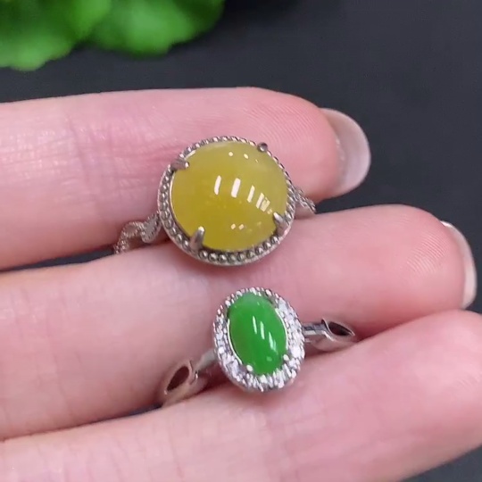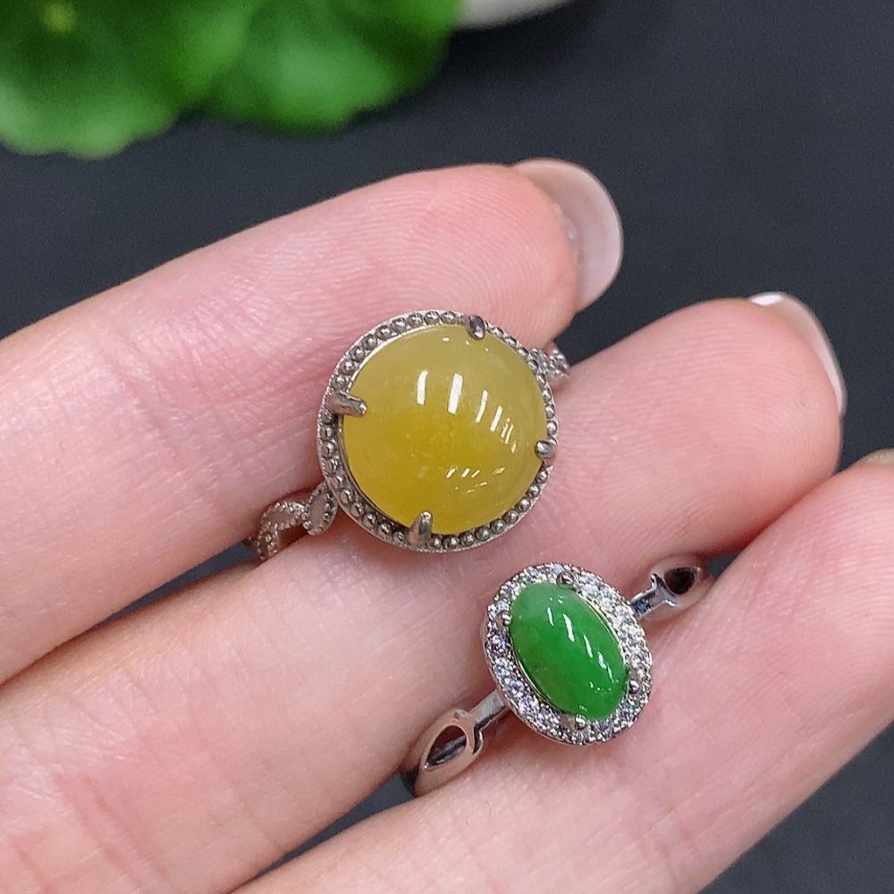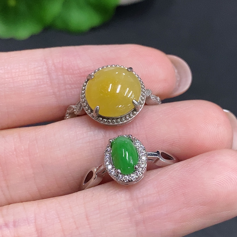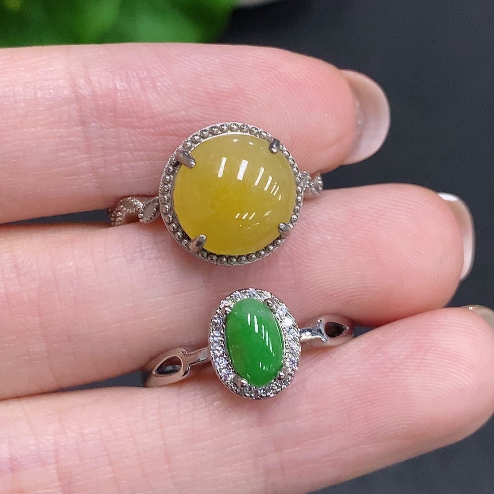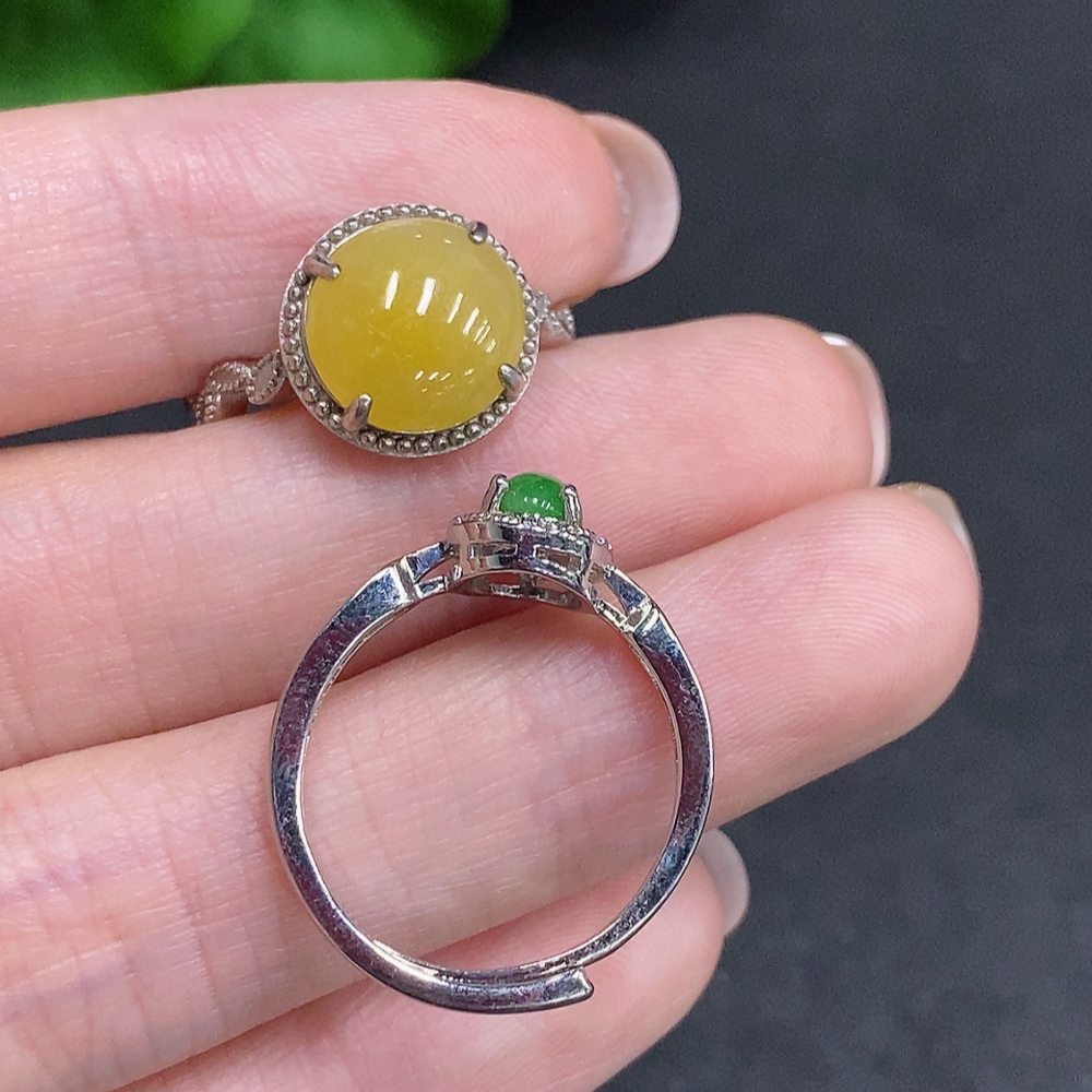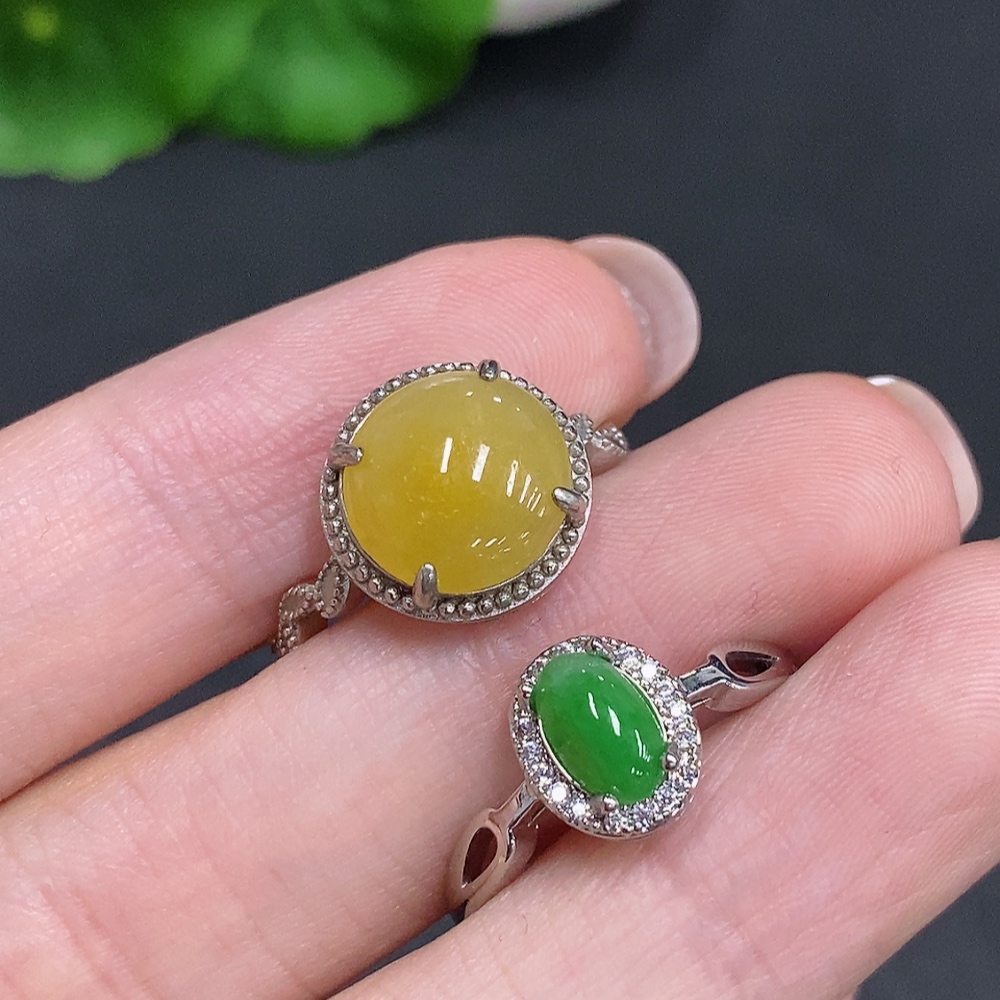 Jadeite cabochon inlay ring sell as a lot adjustable size non-gold inlay (yellow color origin undetermined)
