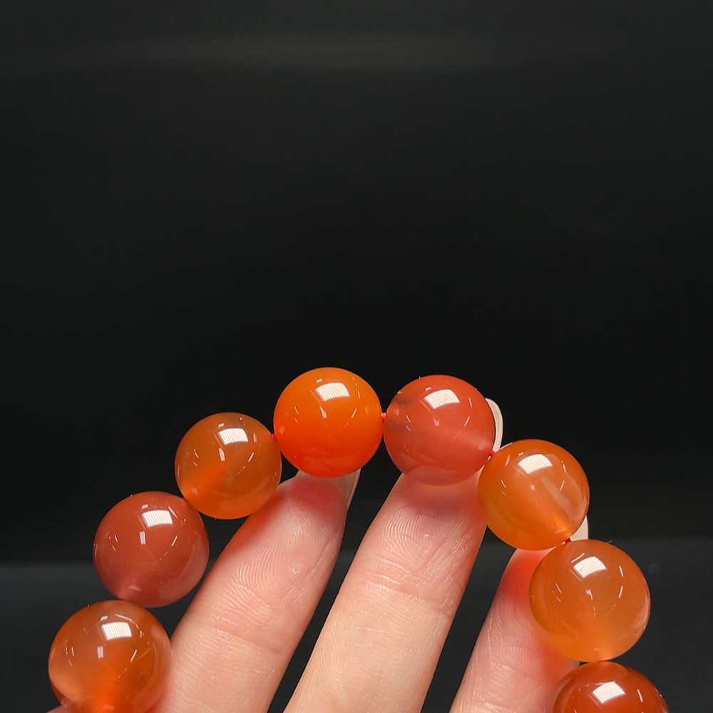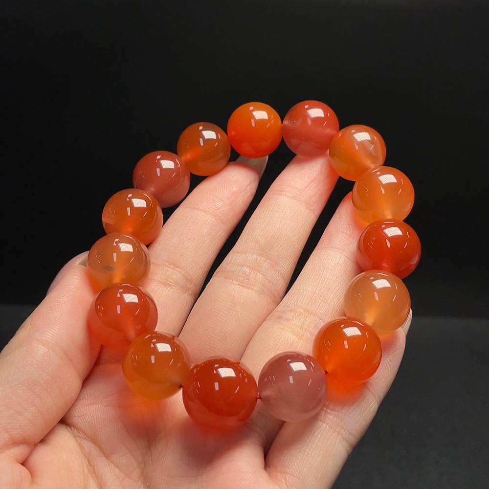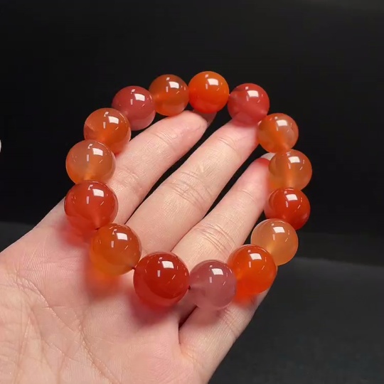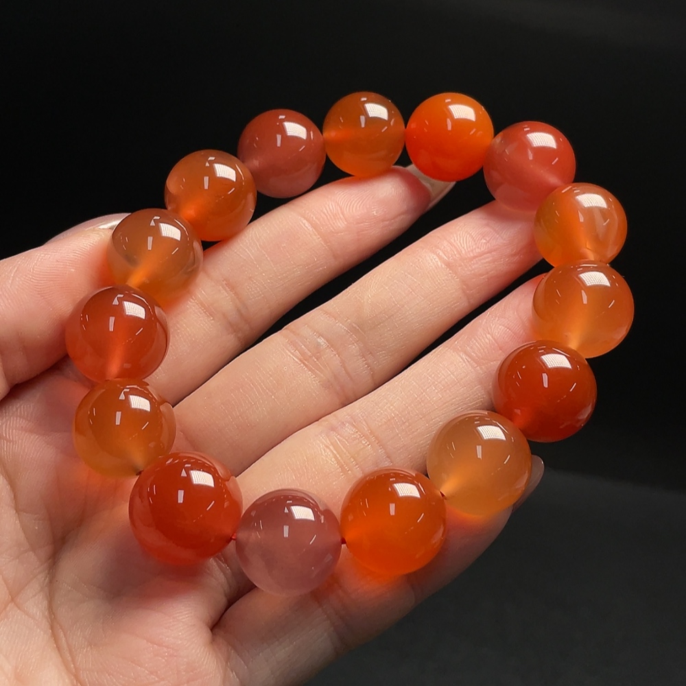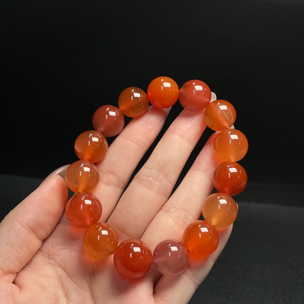 Southern Red Agate Bracelet with Visible Organic Inclusions, Total Weight Approximately 64g, Bead Size Around 14.5mm