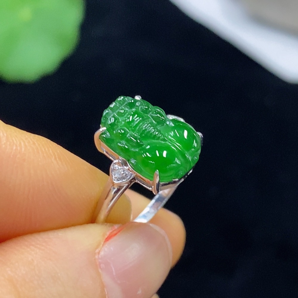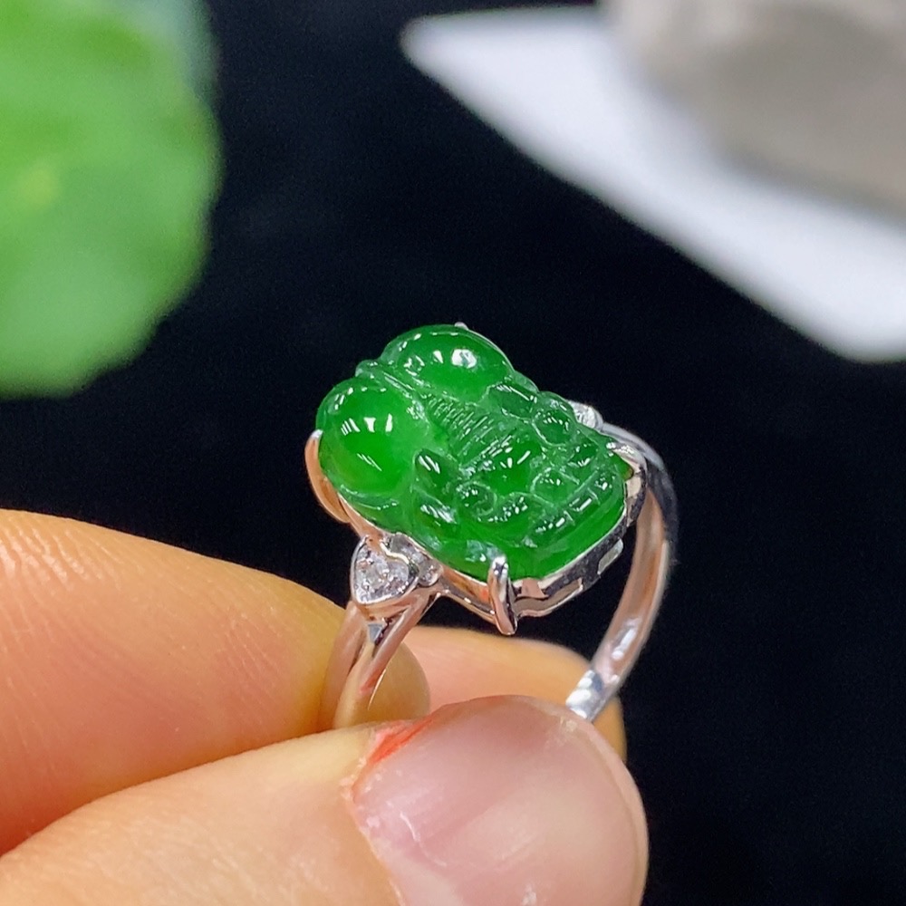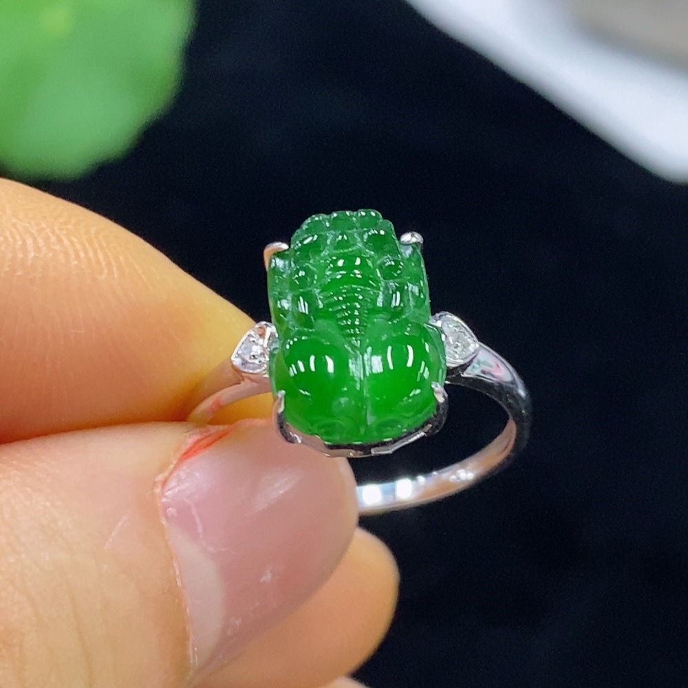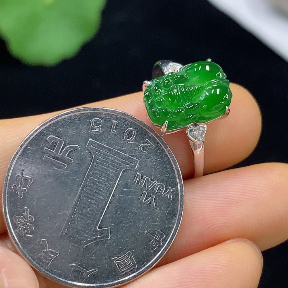Jadeite Pi Xiu Inlaid Ring 18k Non-Diamond Size 14 Total Weight Approx. 1.85g