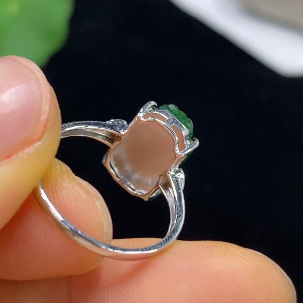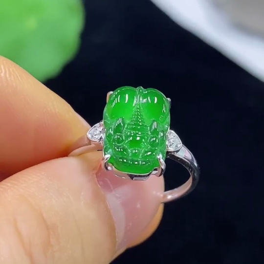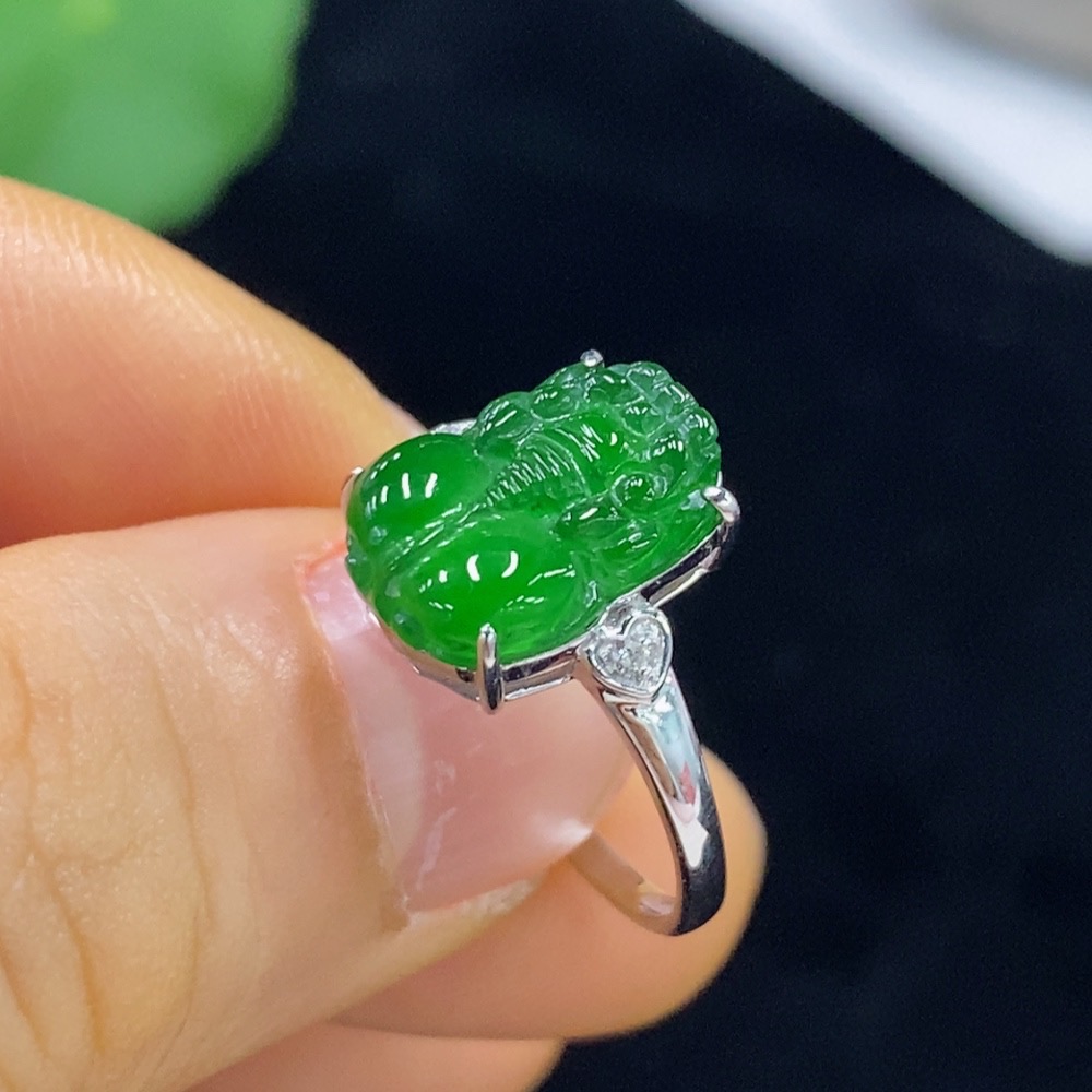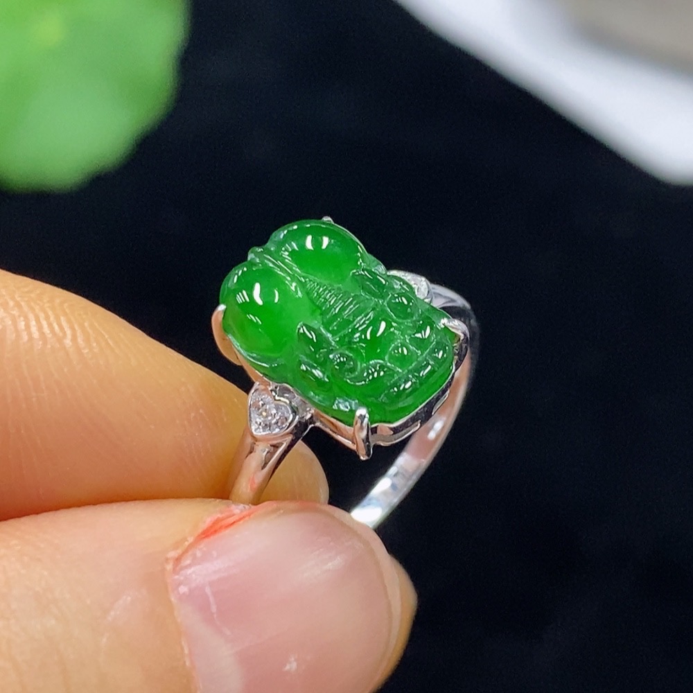 Jadeite Pi Xiu Inlaid Ring 18k Non-Diamond Size 14 Total Weight Approx. 1.85g