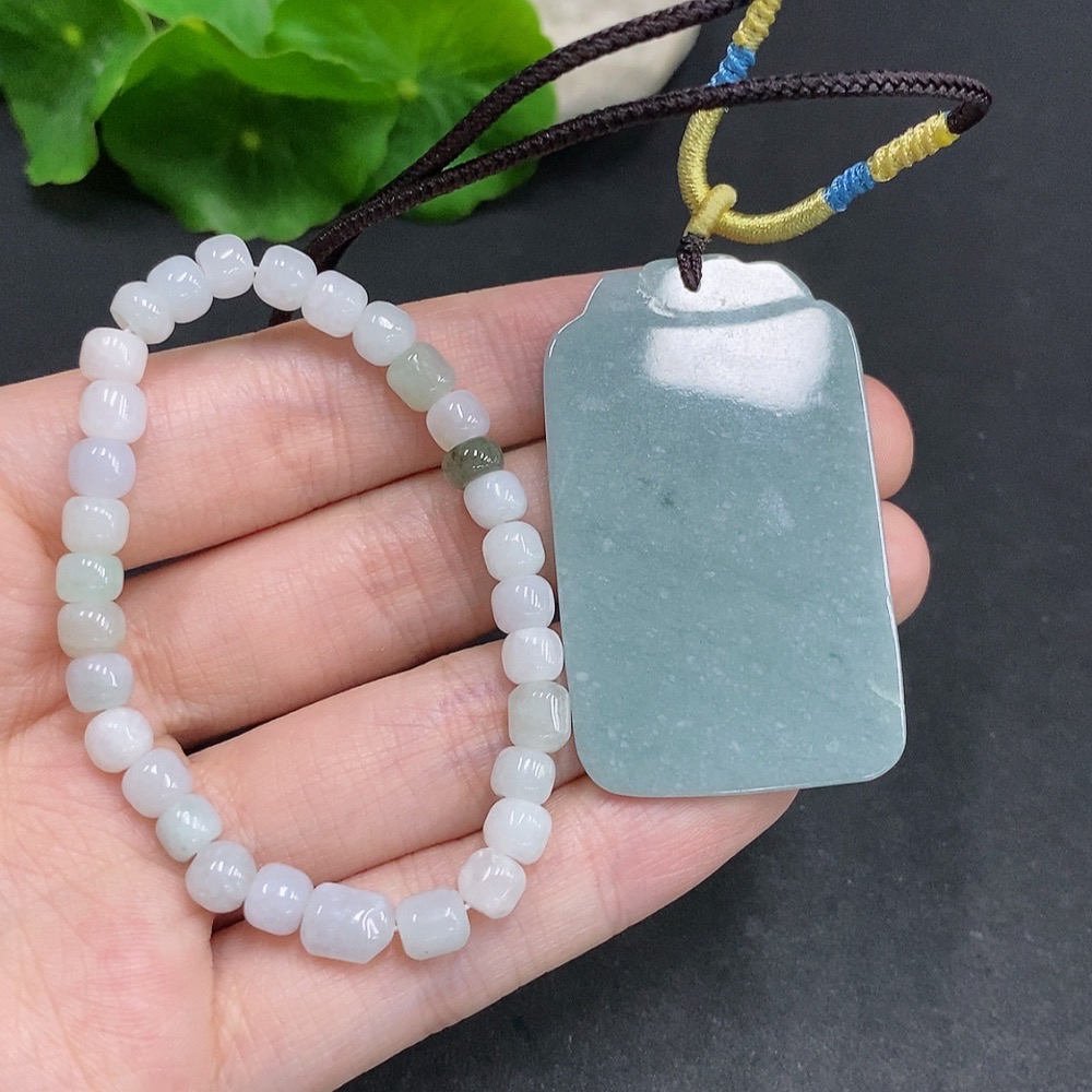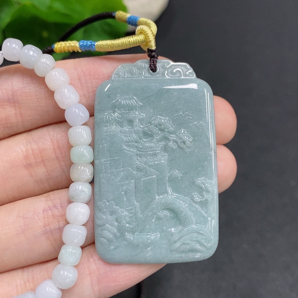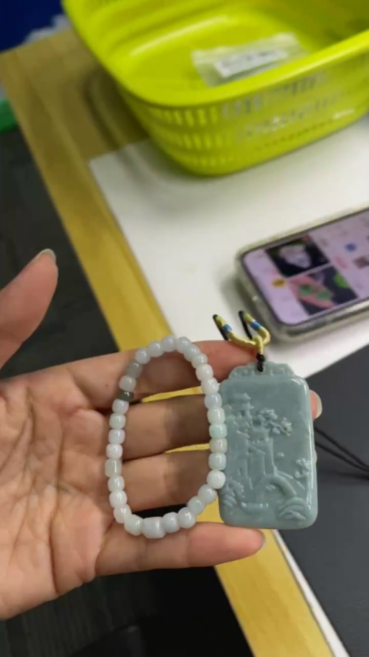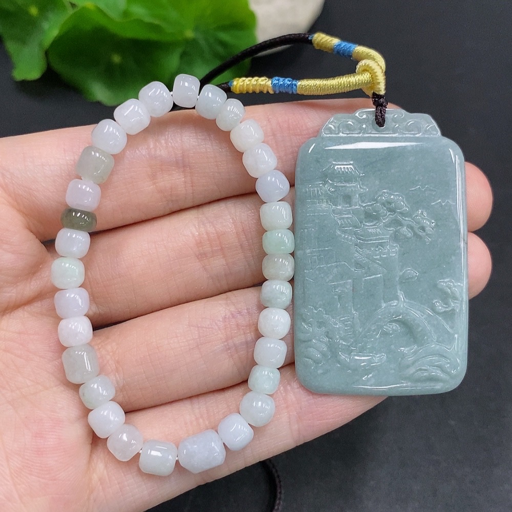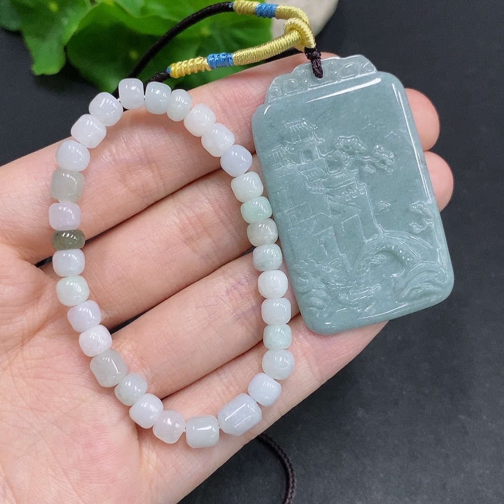 Jadeite Landscape Pendant + Bracelet Sell as a Lot