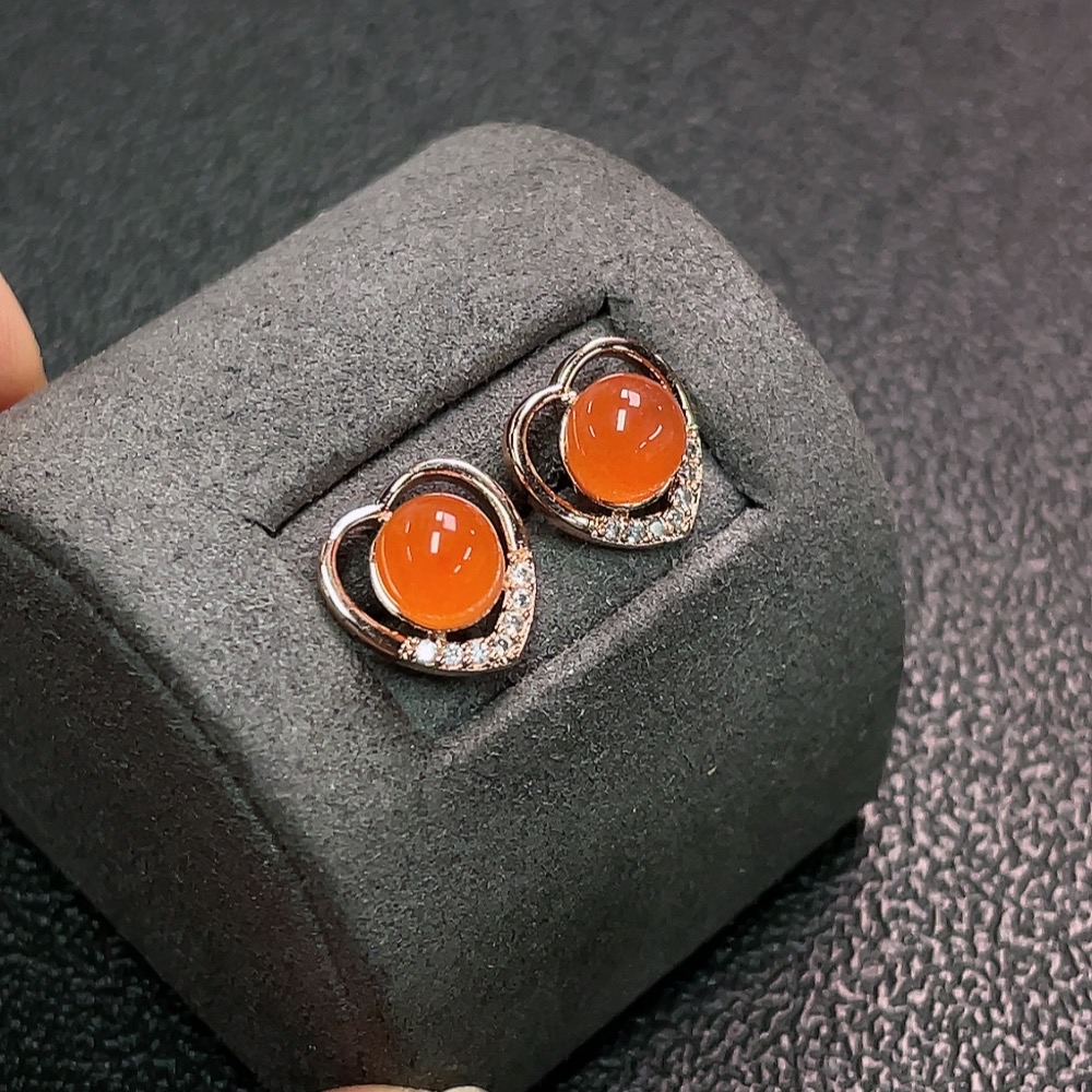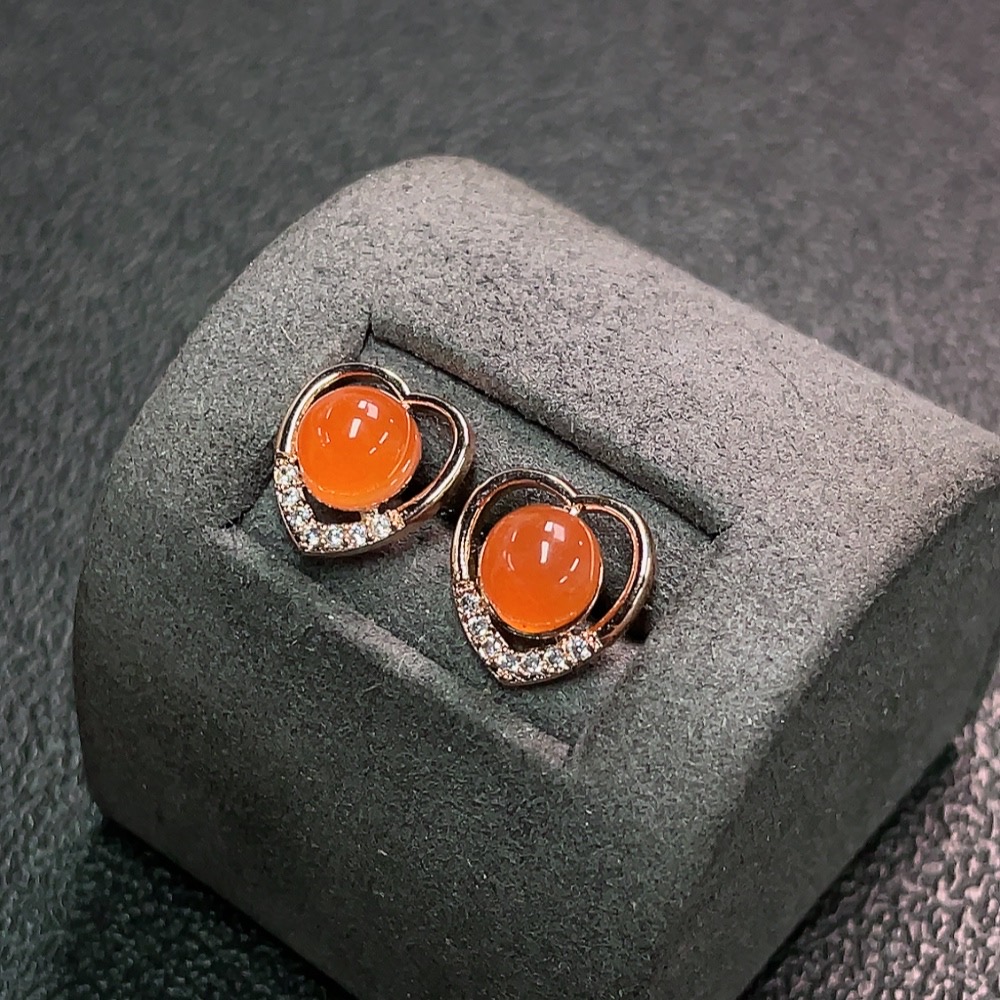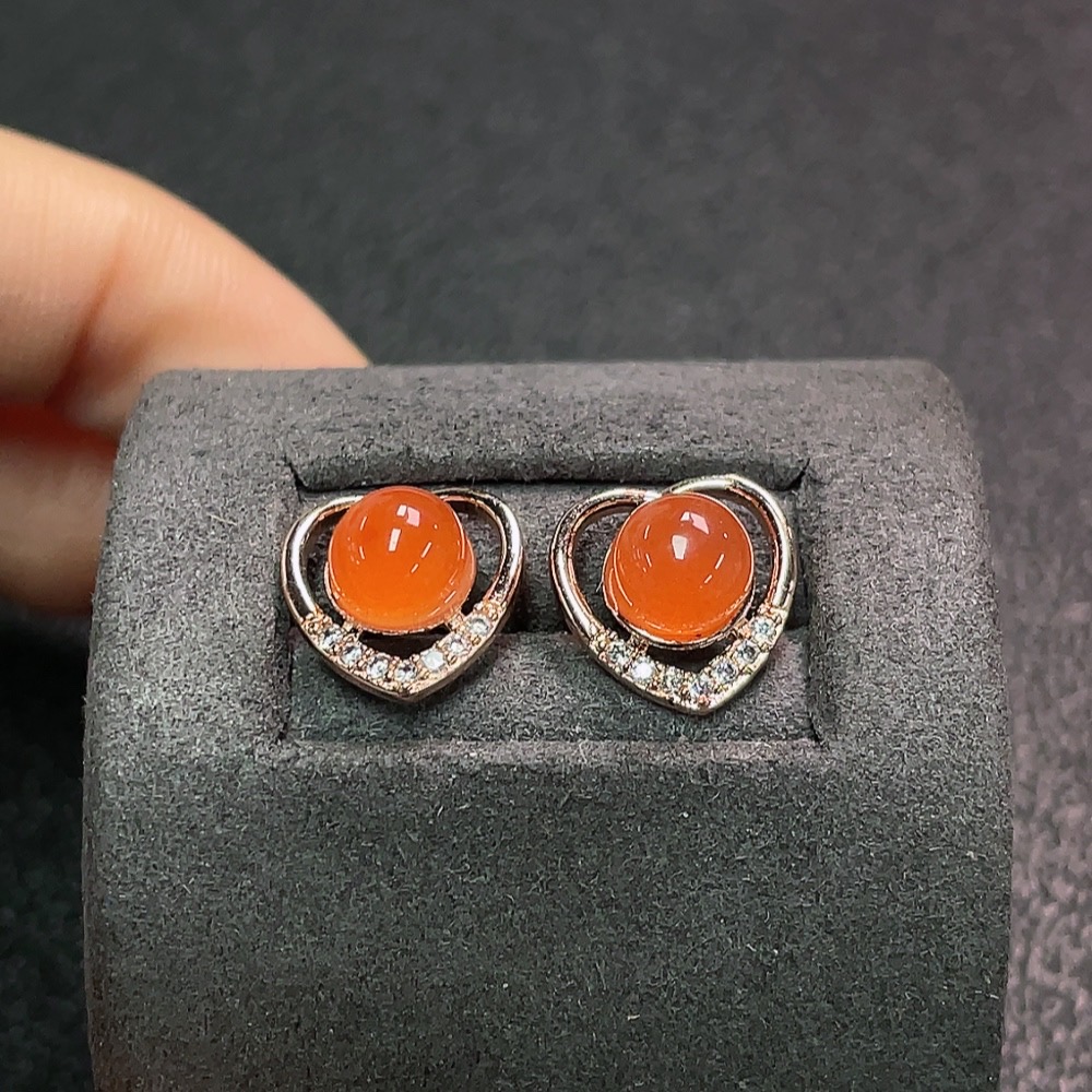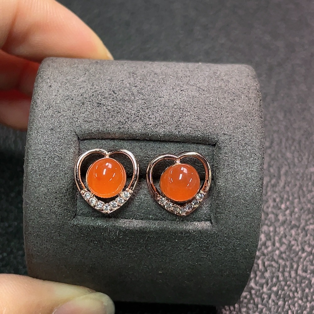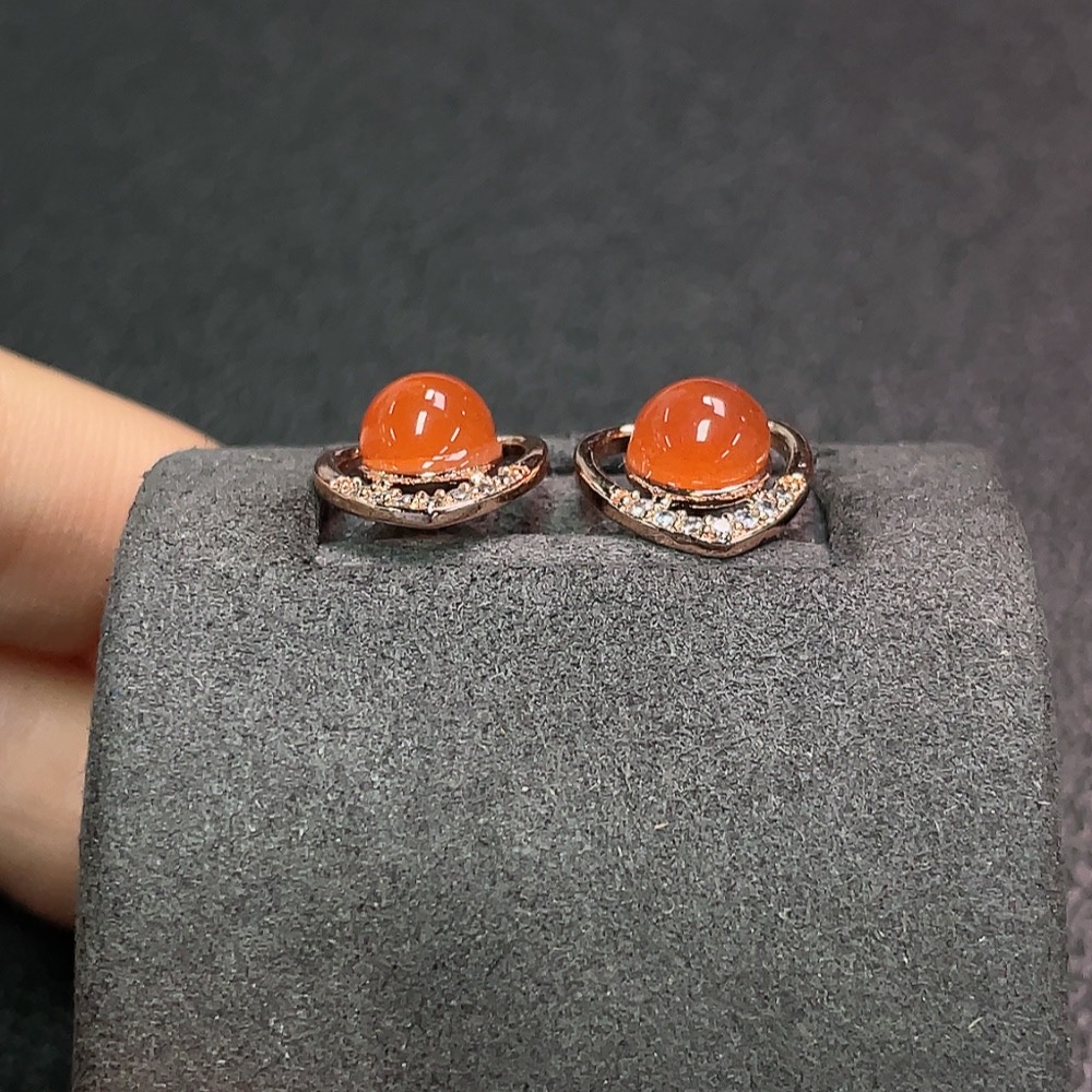 Red Agate Earrings Non-Gold Total Weight Approx.1.89g Size Approx.6.3mm