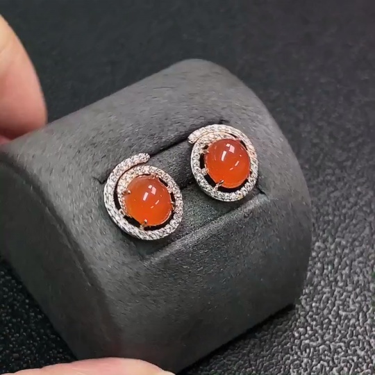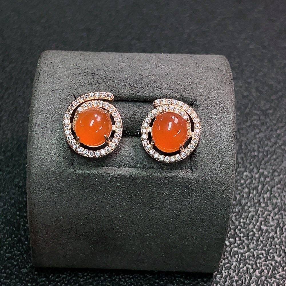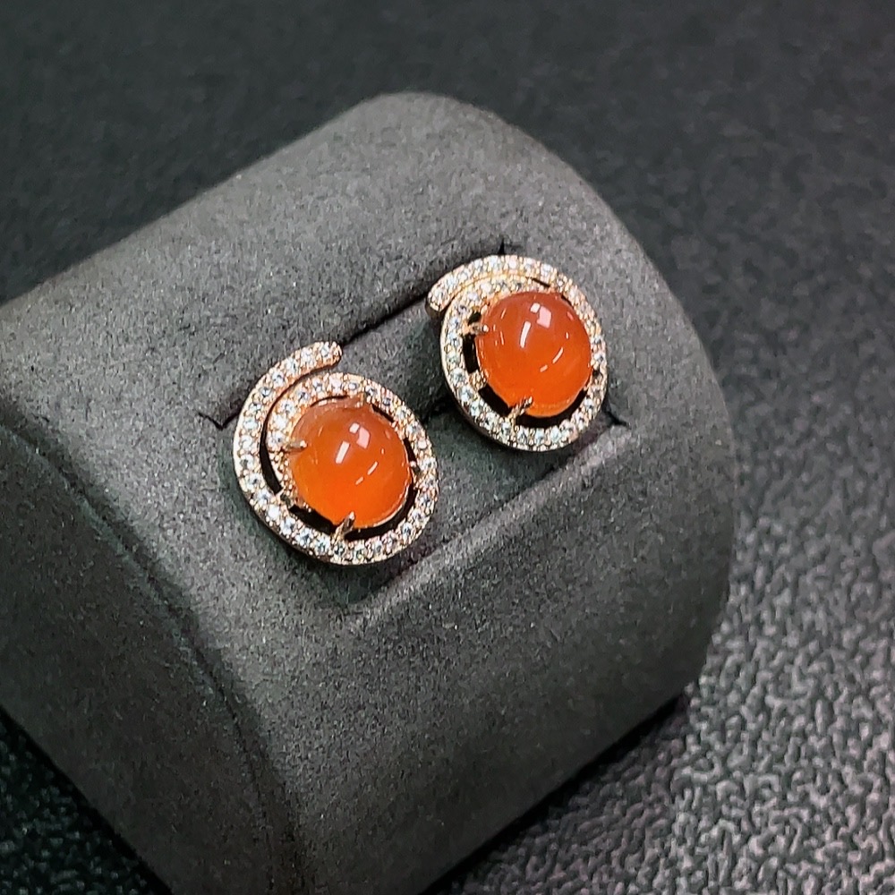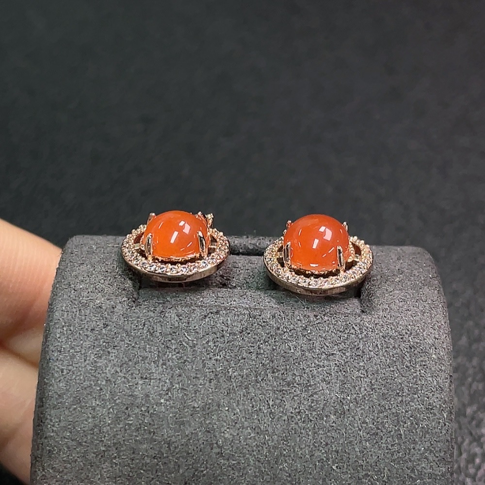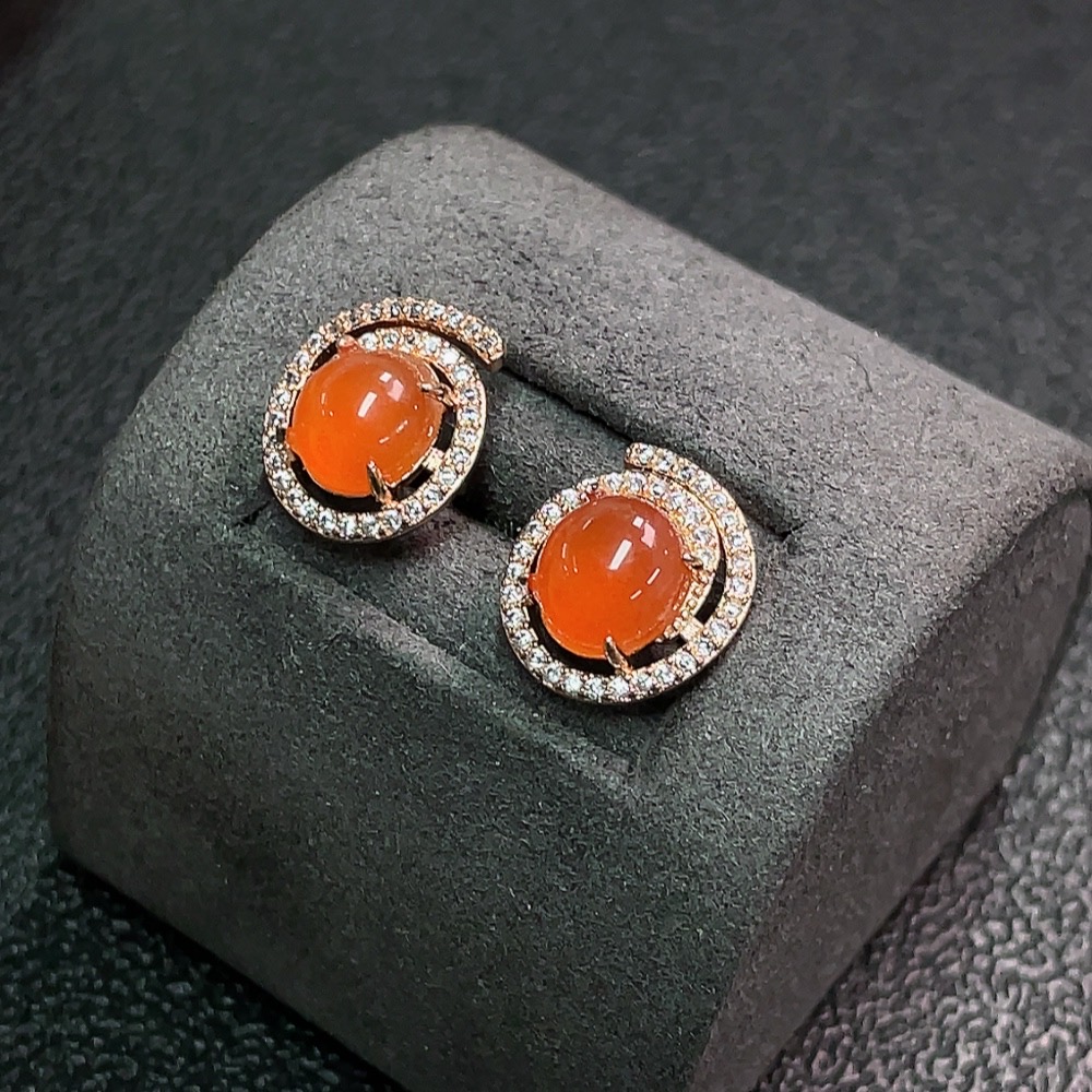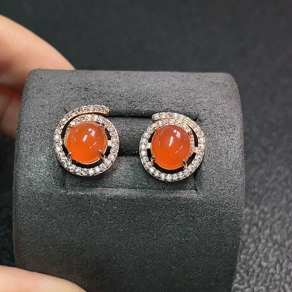 Red Agate Earrings Non-Gold Total Weight Approx. 2.68g Size 7.1*6.4mm