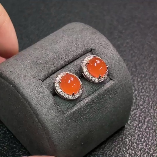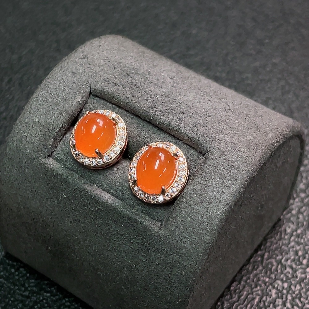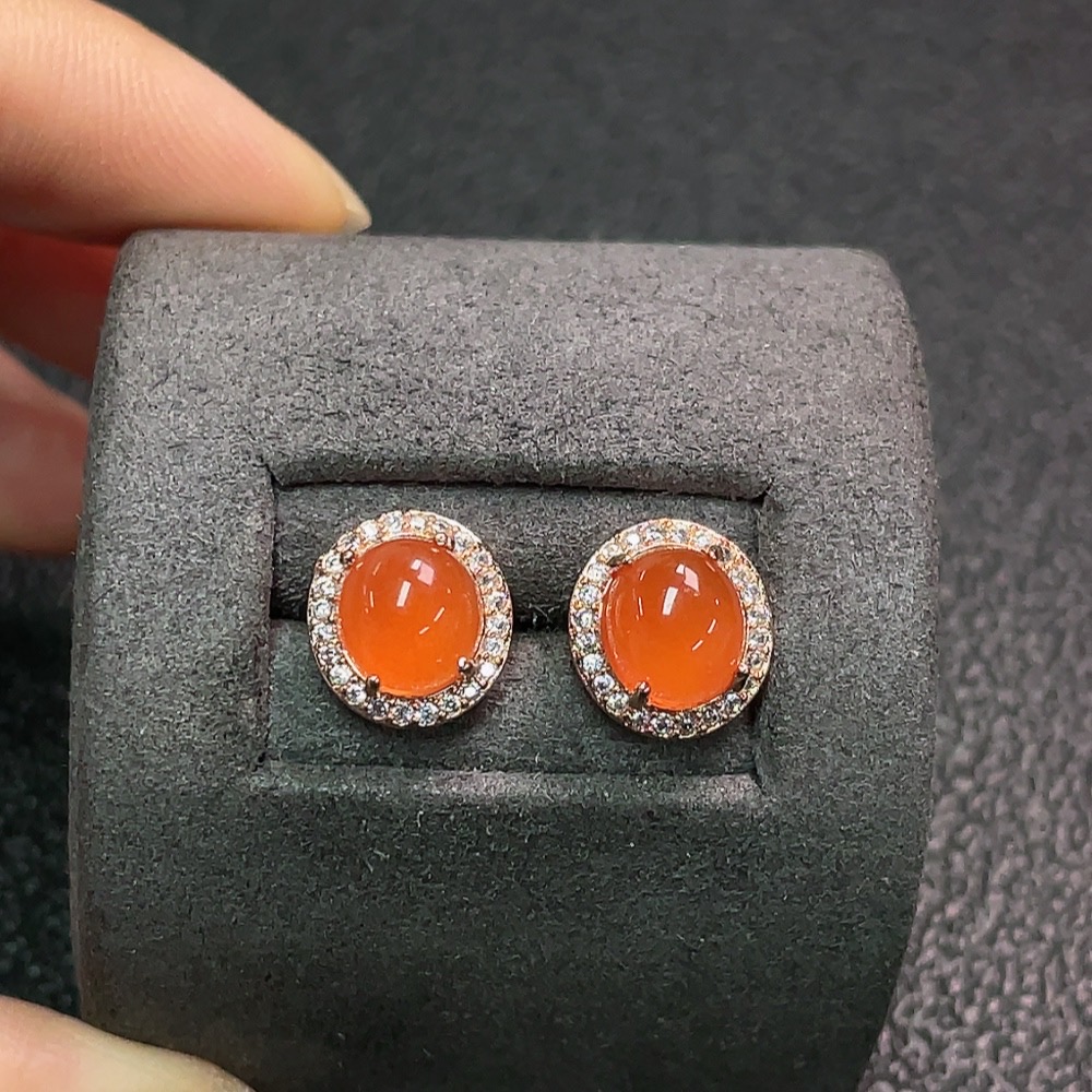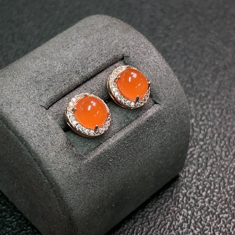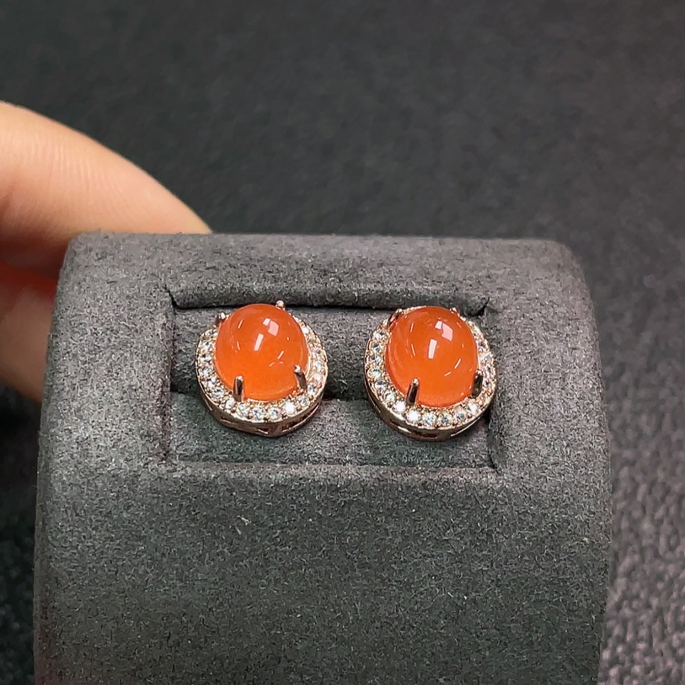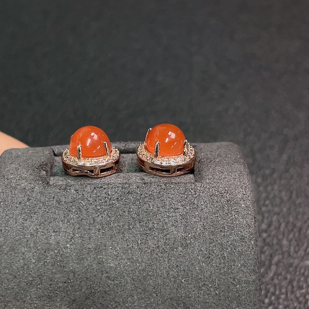 Red Agate Earrings Non-Gold Total Weight Approx. 2.44g Size 6.9*6.4mm