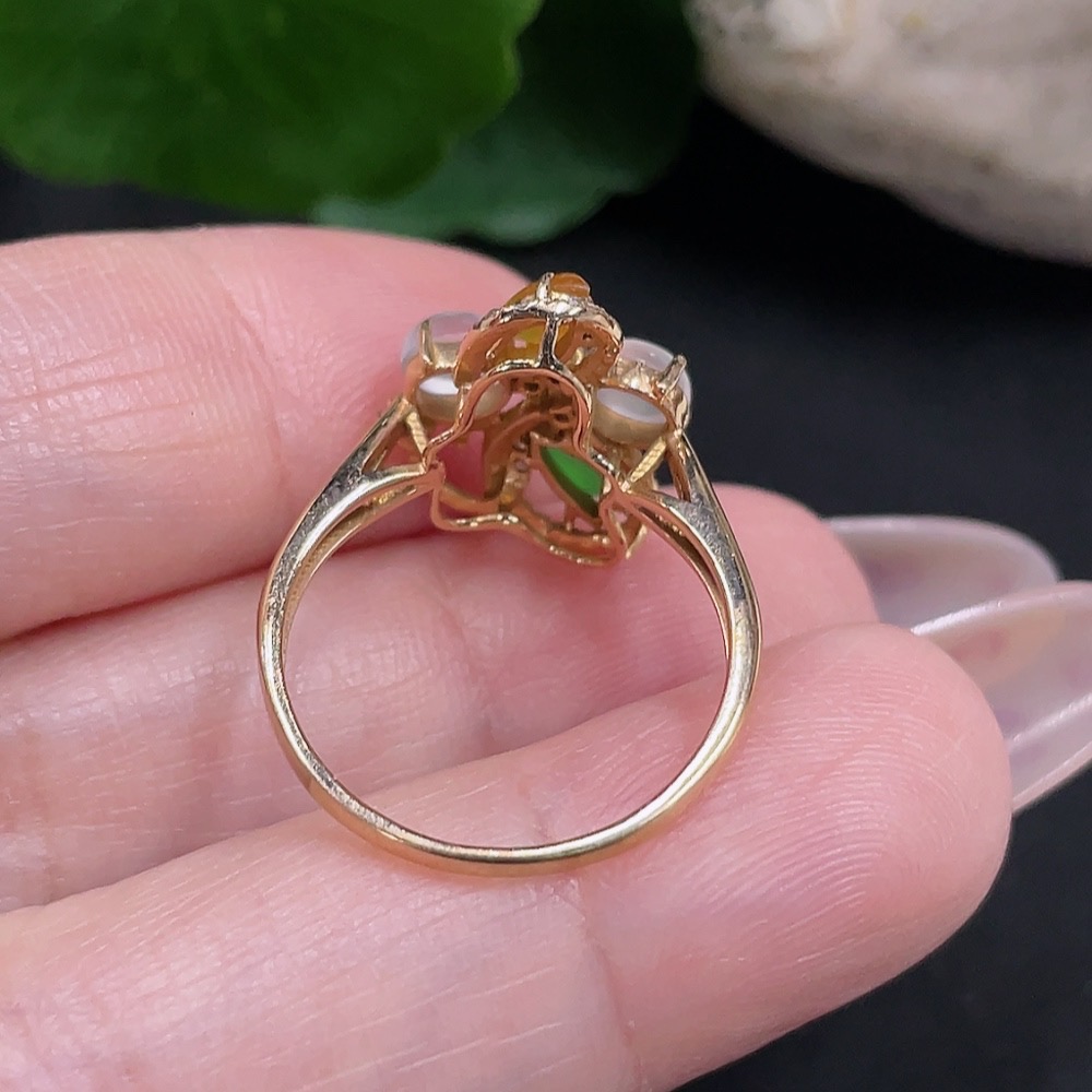 Jadeite Cabochon Solitaire Ring in 18K Gold with Diamond Accents, Size 15, Total Weight Approx. 2.7g