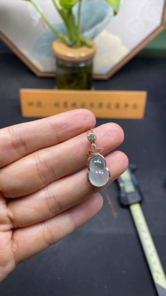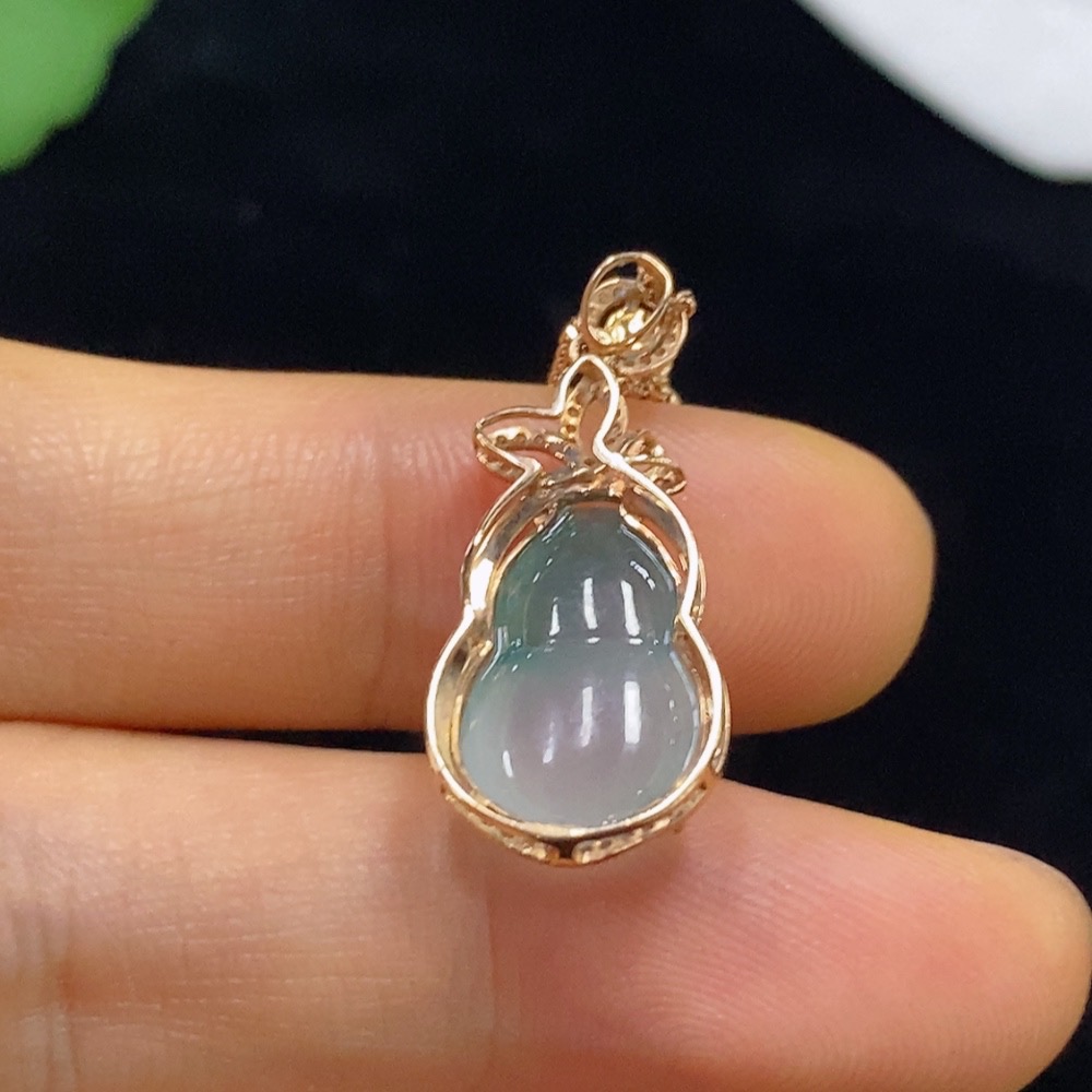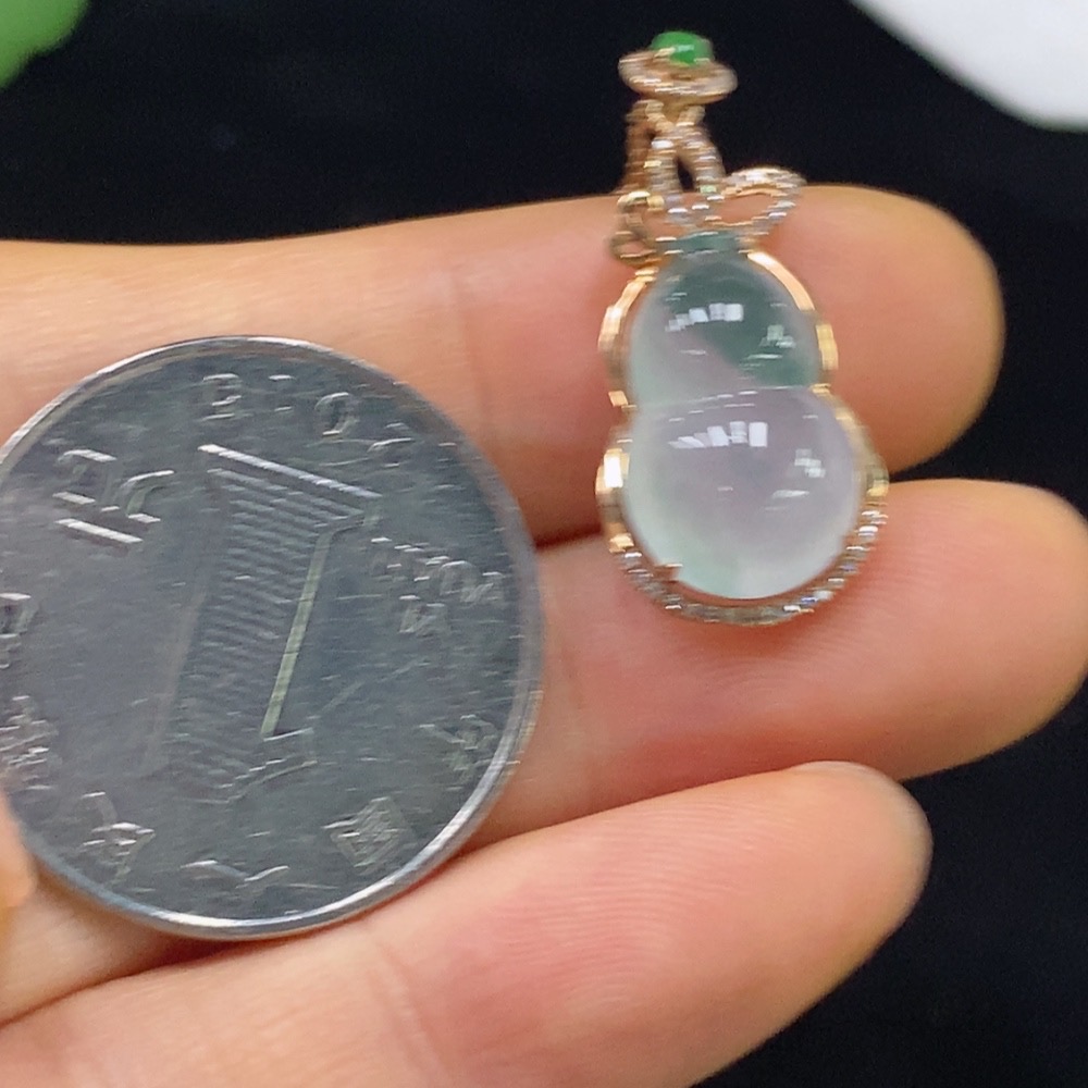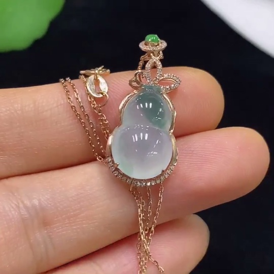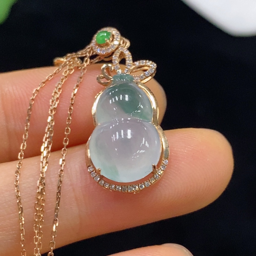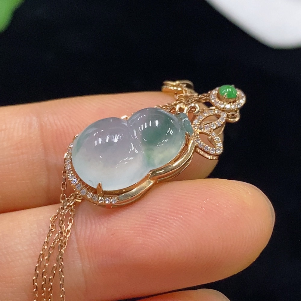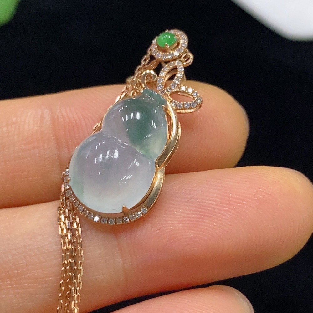 Jadeite Gourd Inlaid Pendant with 18k Gold and Diamonds, Total Weight Approx. 3.14g (Including Chain)