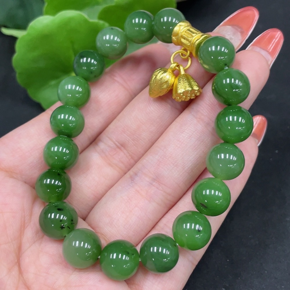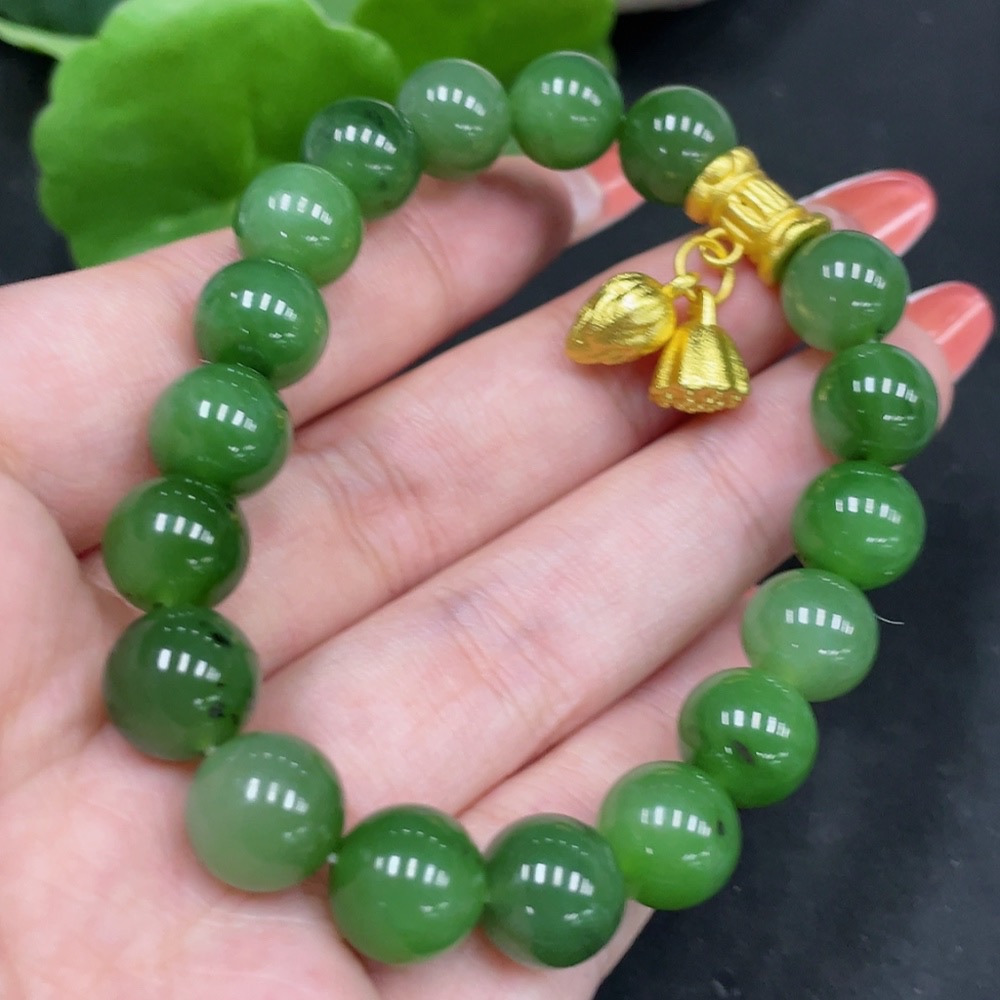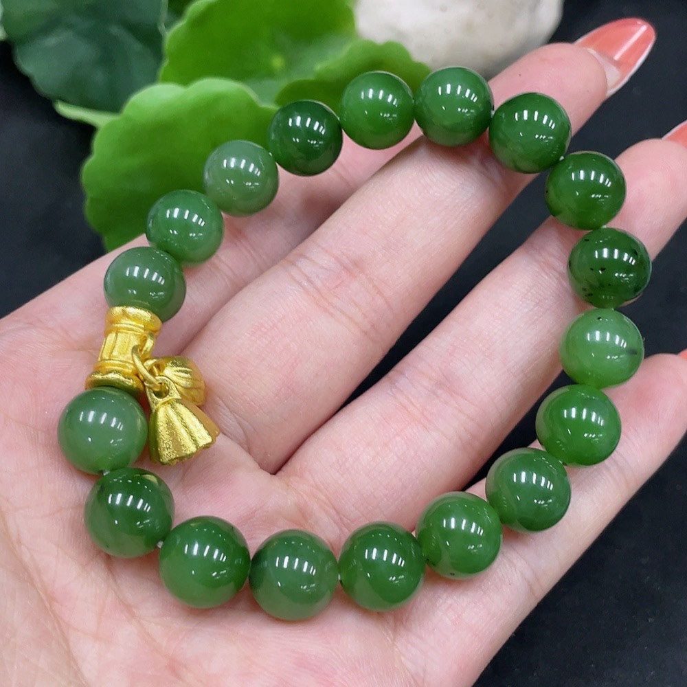 Hetian Jade Bracelet Approx. 9.7mm Non-Gold Total Weight Approx. 31.4g