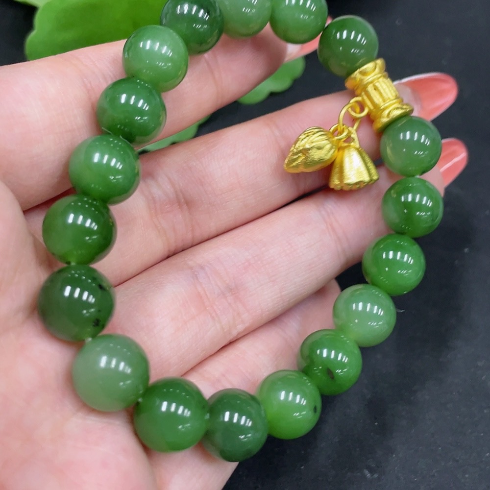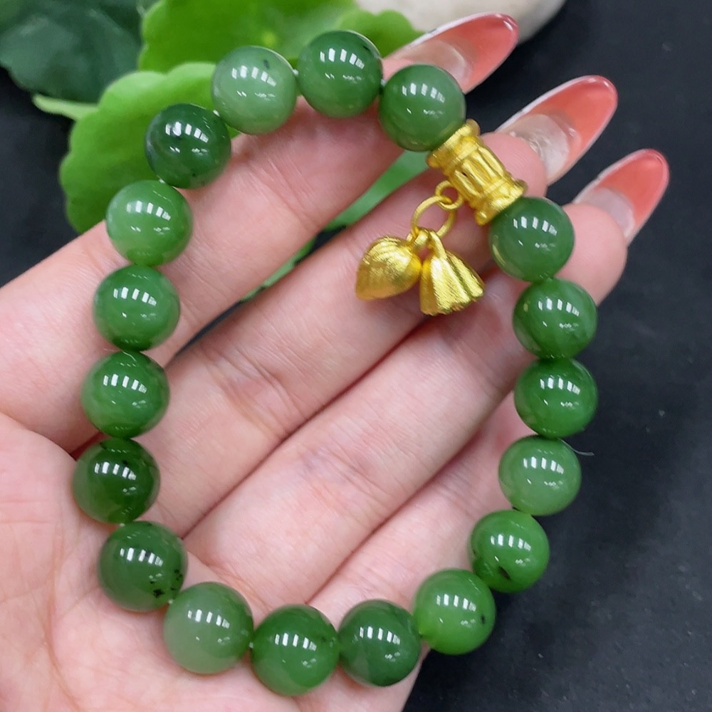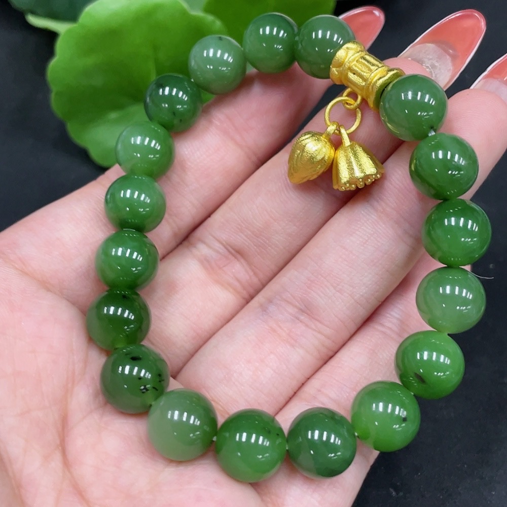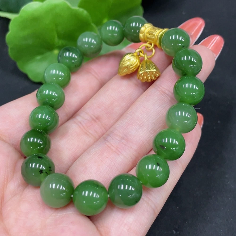 Hetian Jade Bracelet Approx. 9.7mm Non-Gold Total Weight Approx. 31.4g