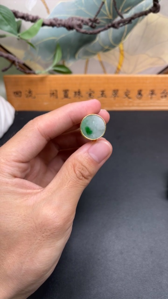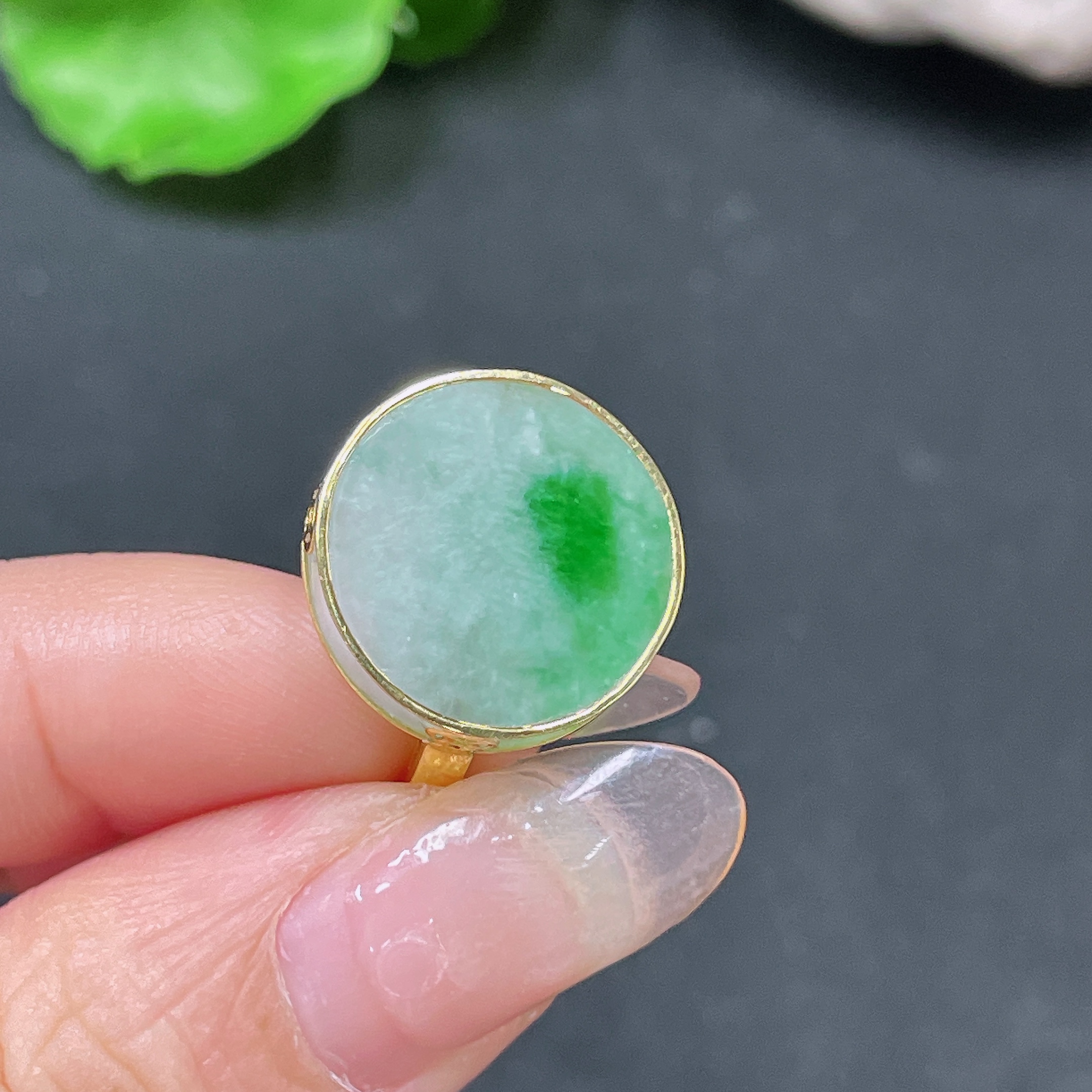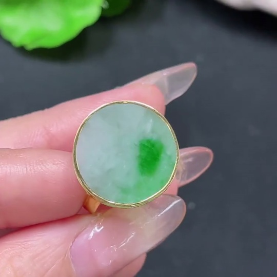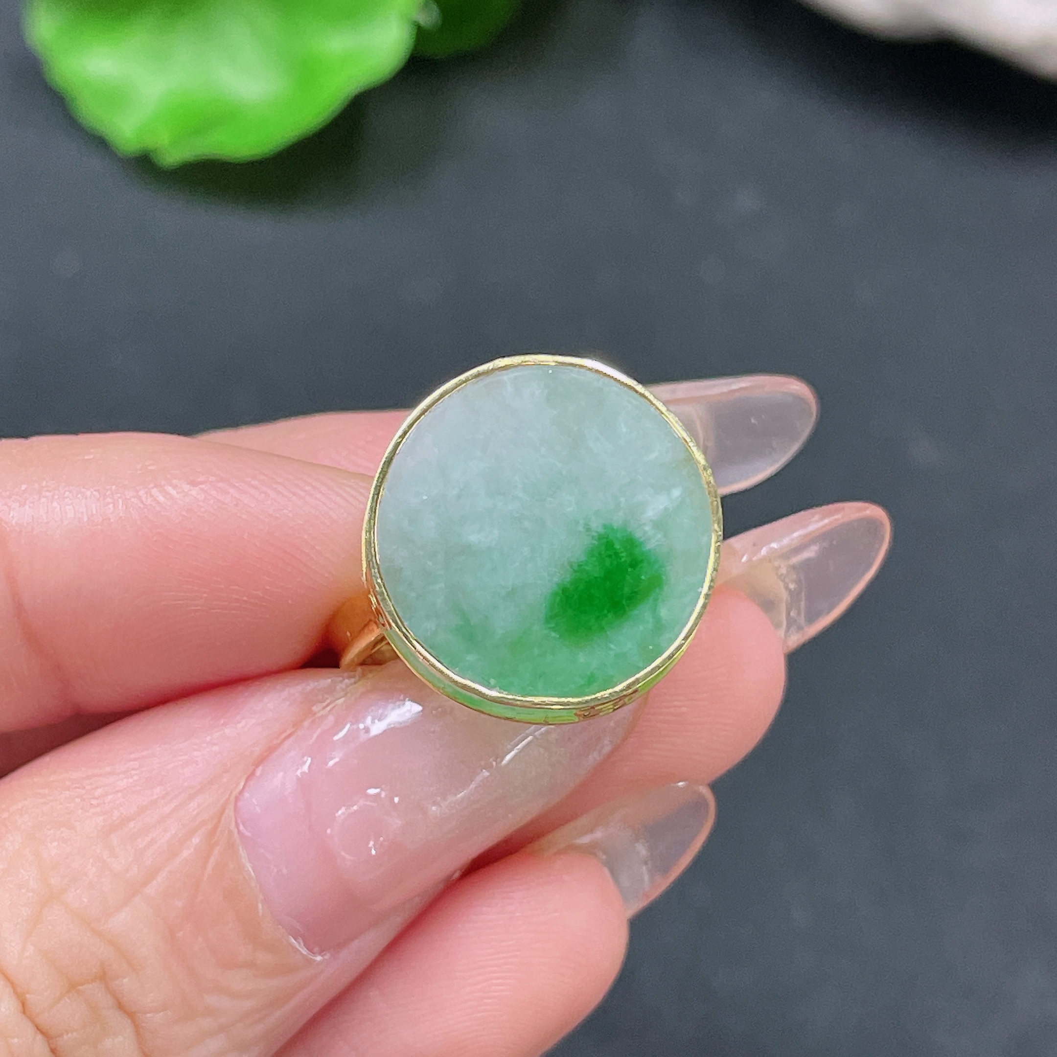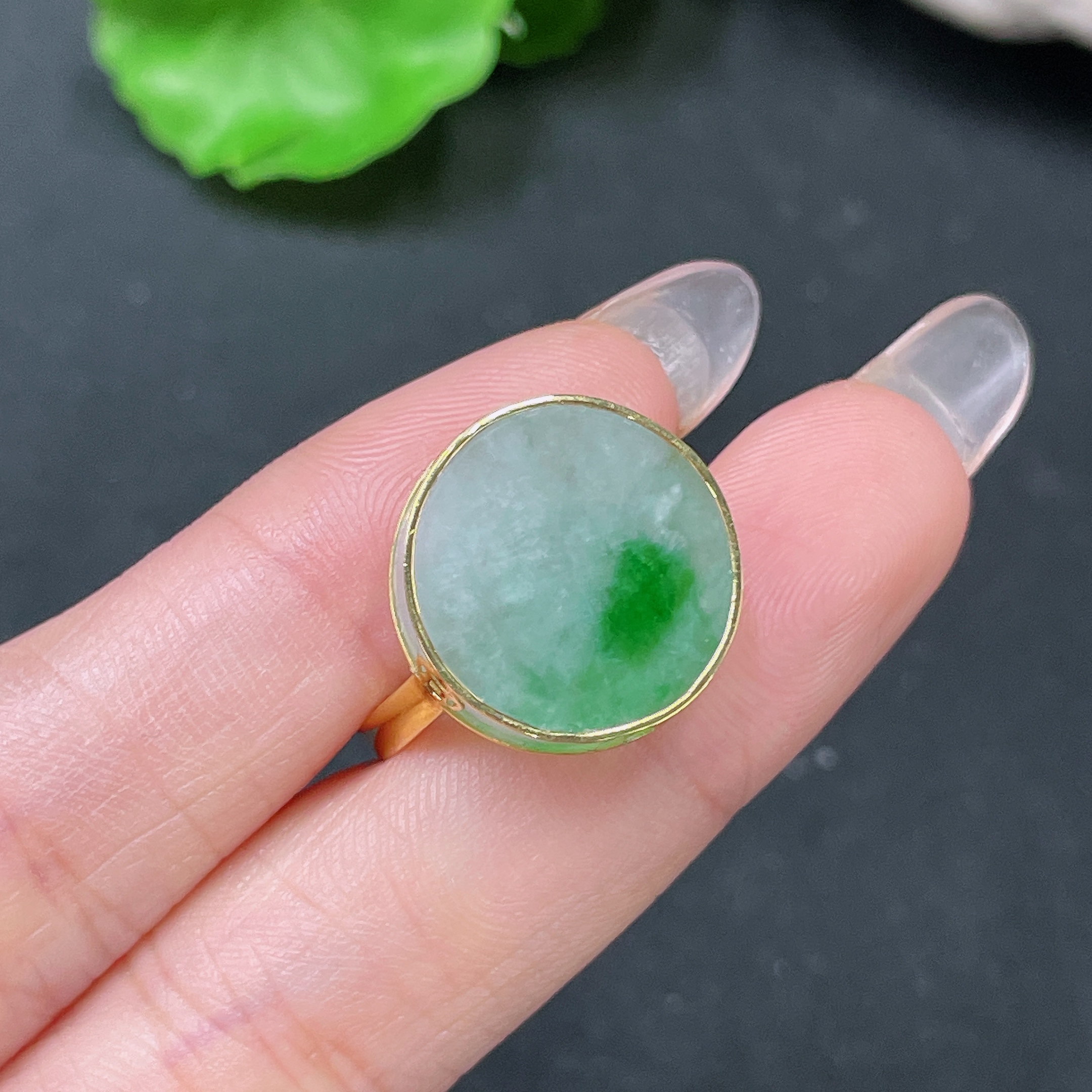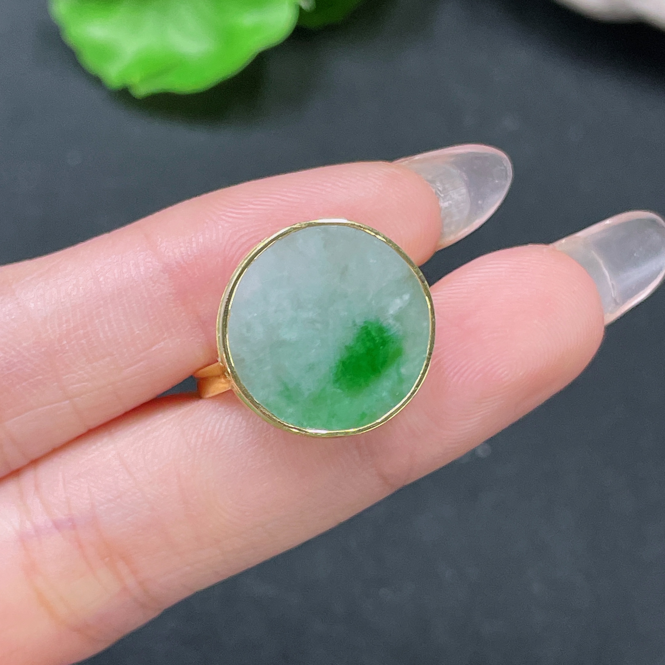 Jadeite Inlaid Ring Size 17 18k Band with 66% Gold Total Weight Approximately 4.12g