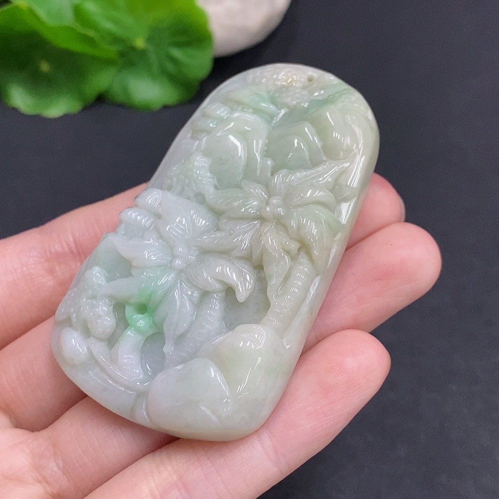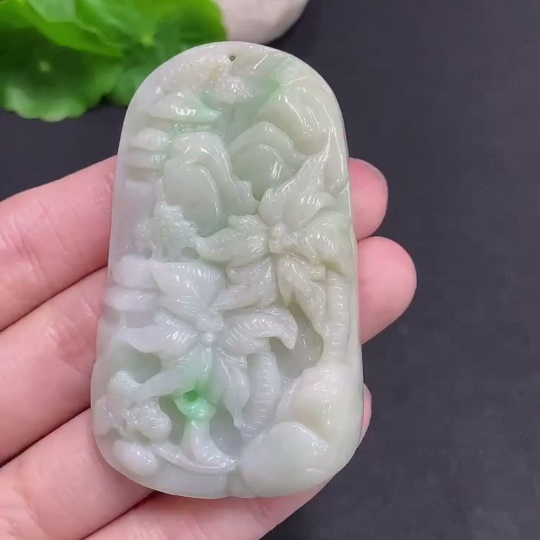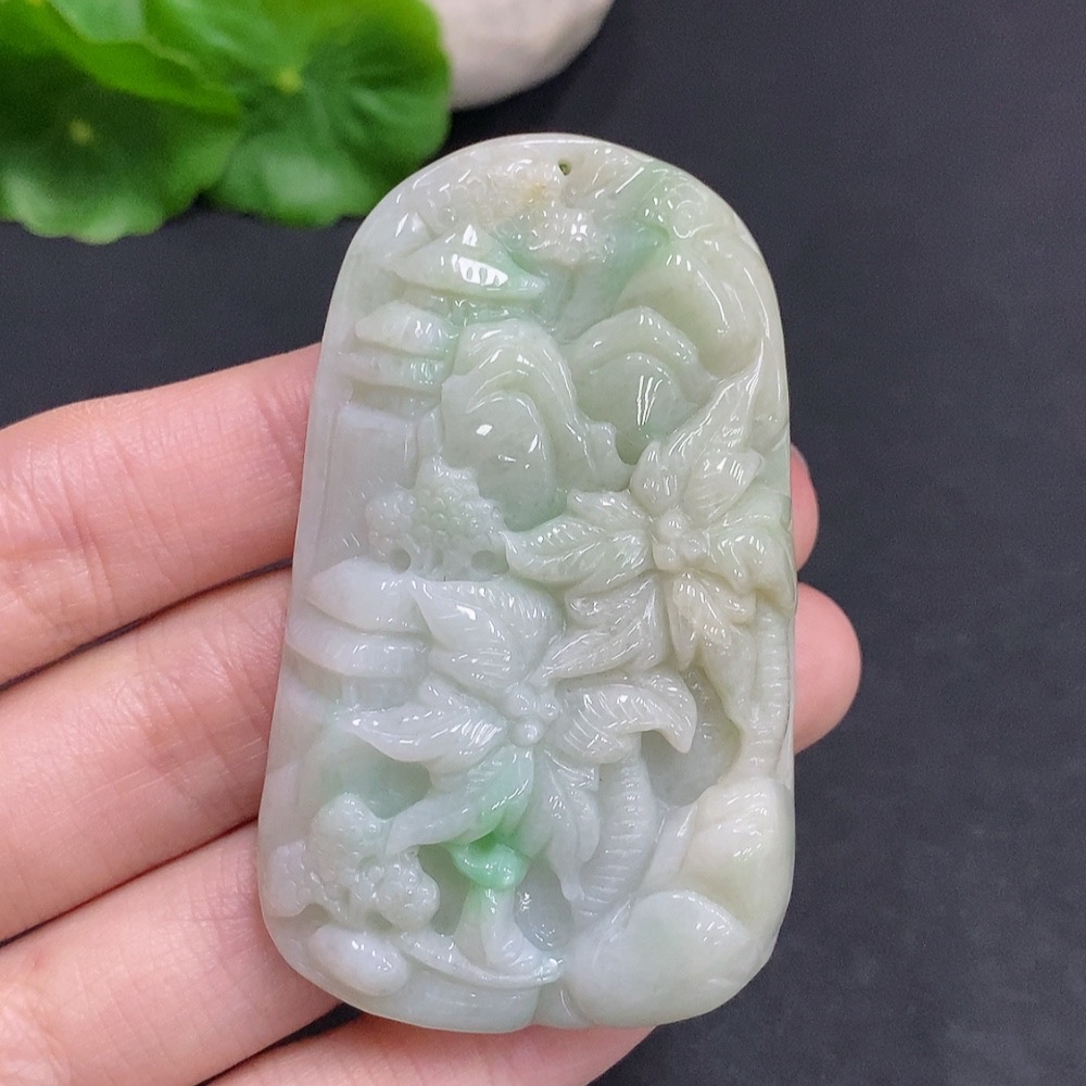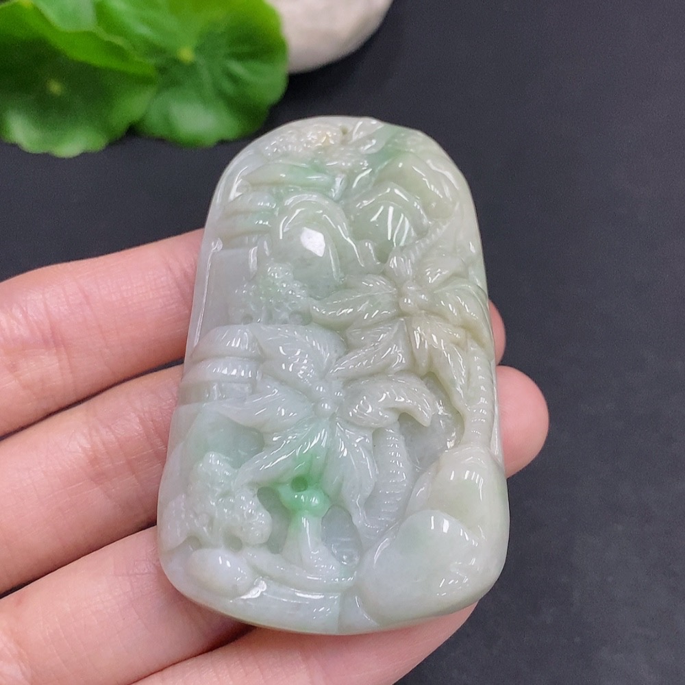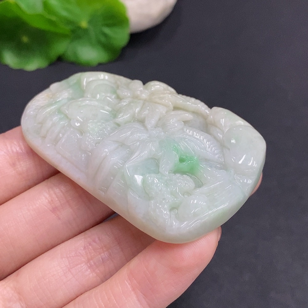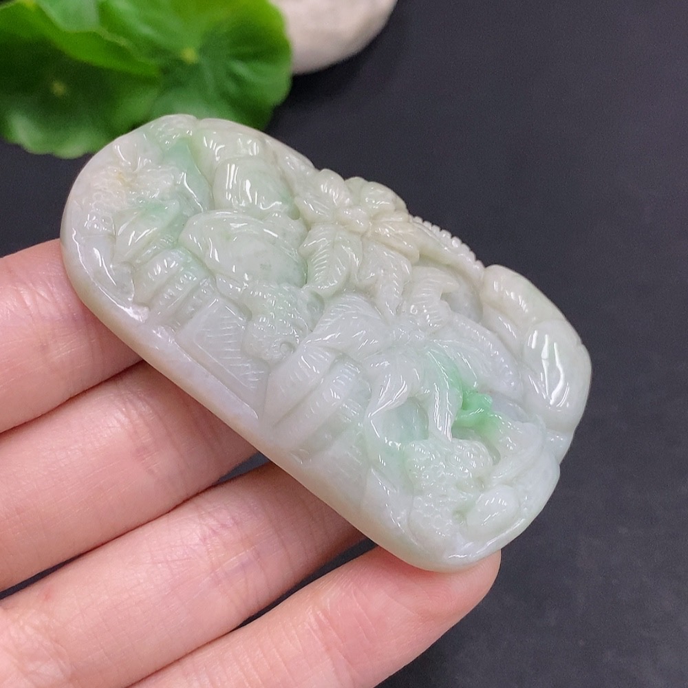 Jadeite Landscape Pendant, Total Weight Approximately 62.4g