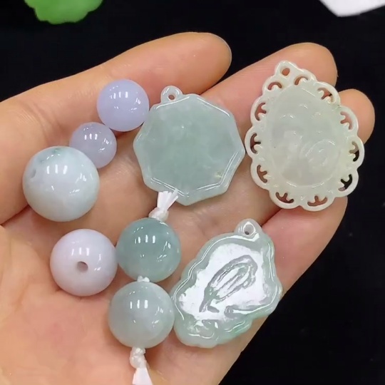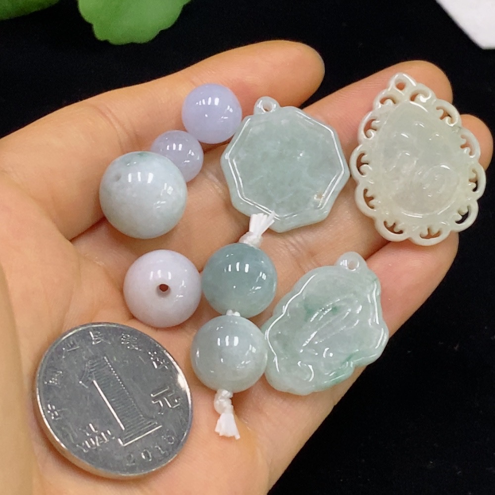 Jadeite Beads/Fu Pendant Hangings Sell as a Lot