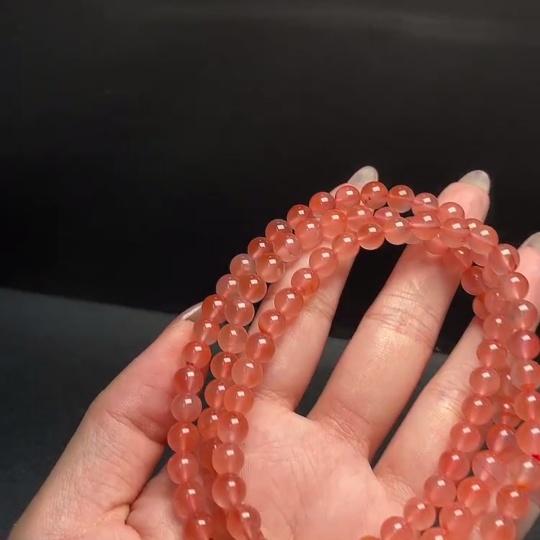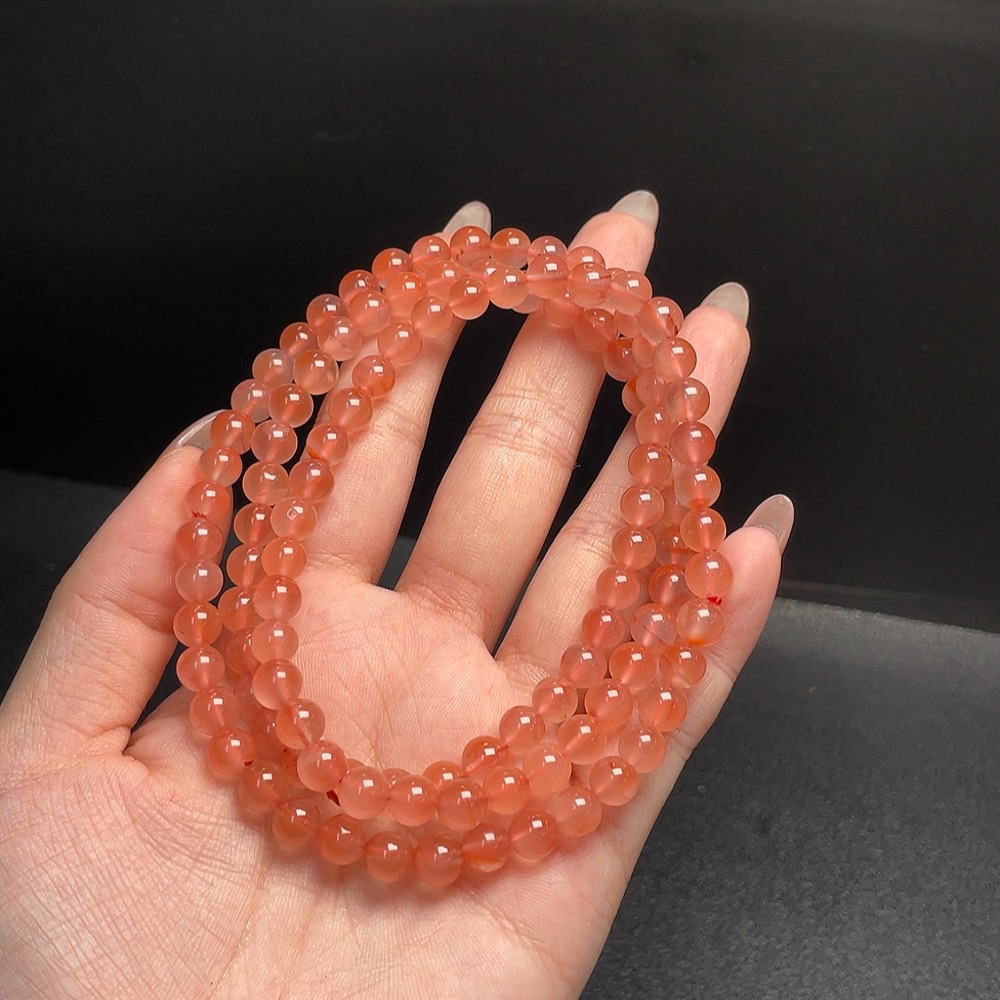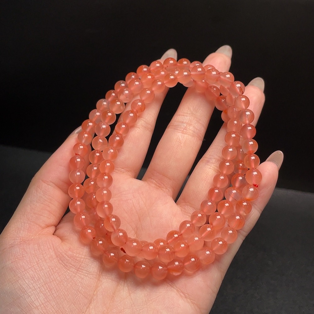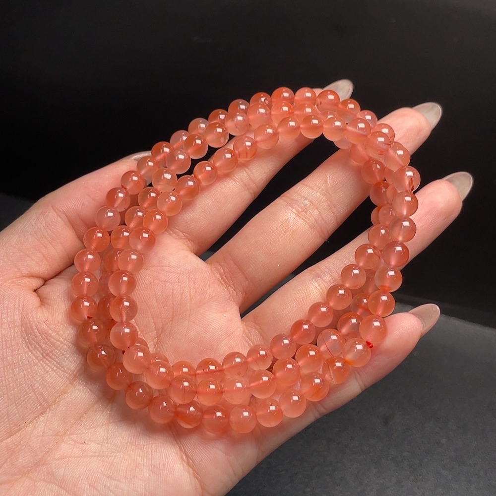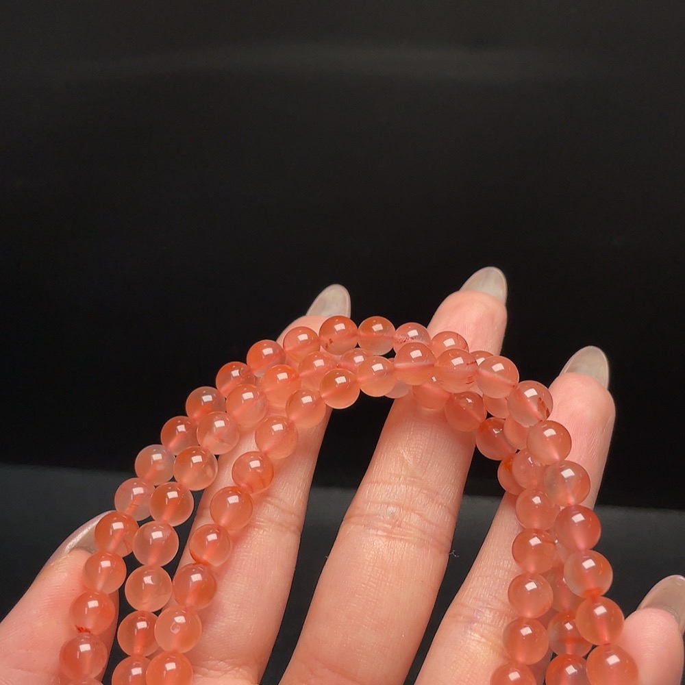 South Red Agate Bead Strand with Visible Organic Matter, Total Weight Approx. 44.4g, Size About 6.6mm