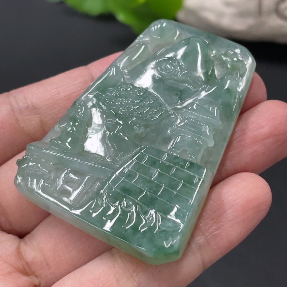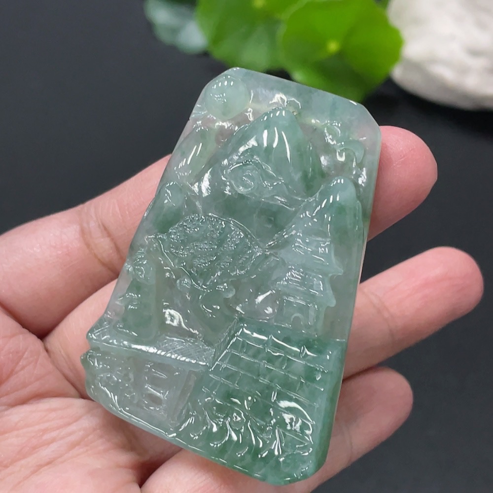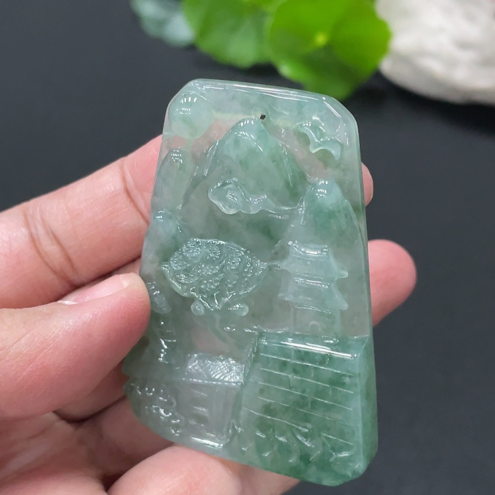 Jadeite Landscape Pendant Total Weight Approx. 32.8g