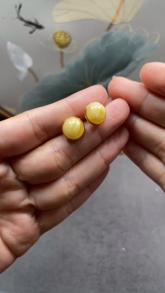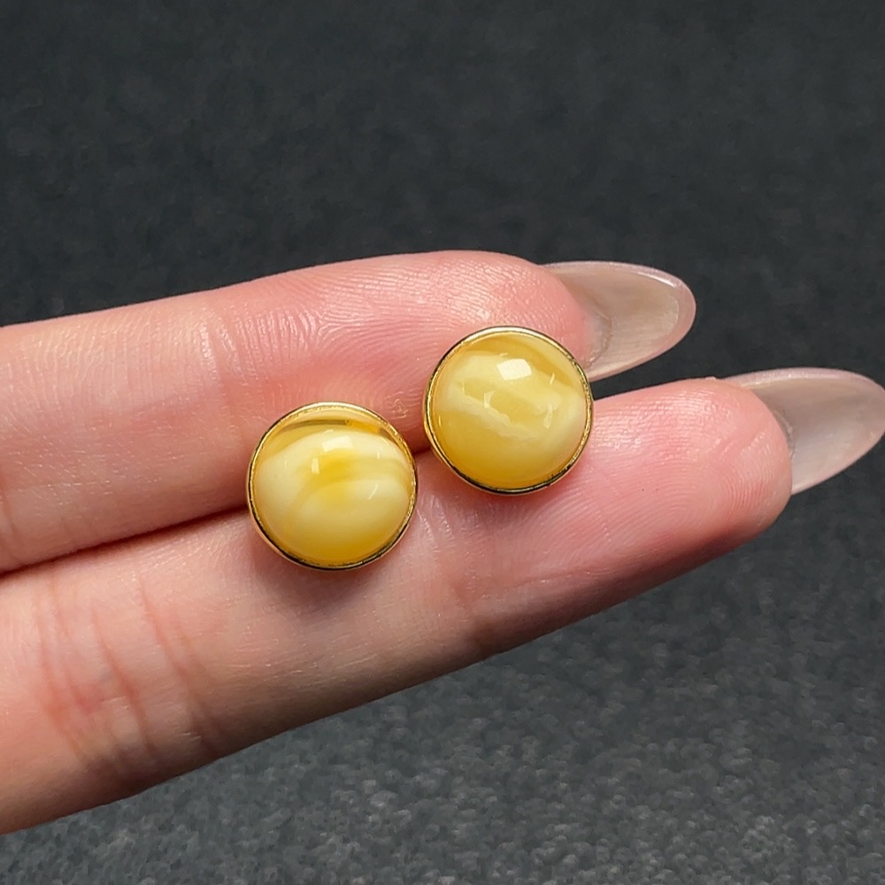 Amber Beeswax Earrings Non-Gold Total Weight Approx. 1.93g