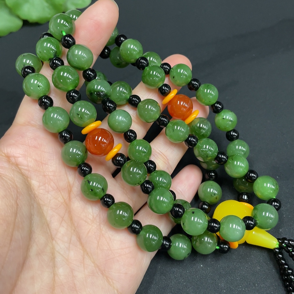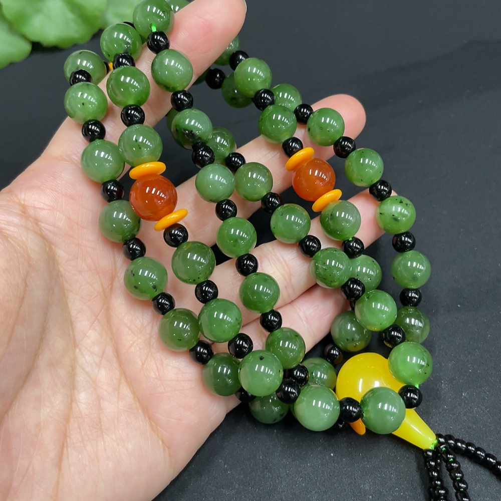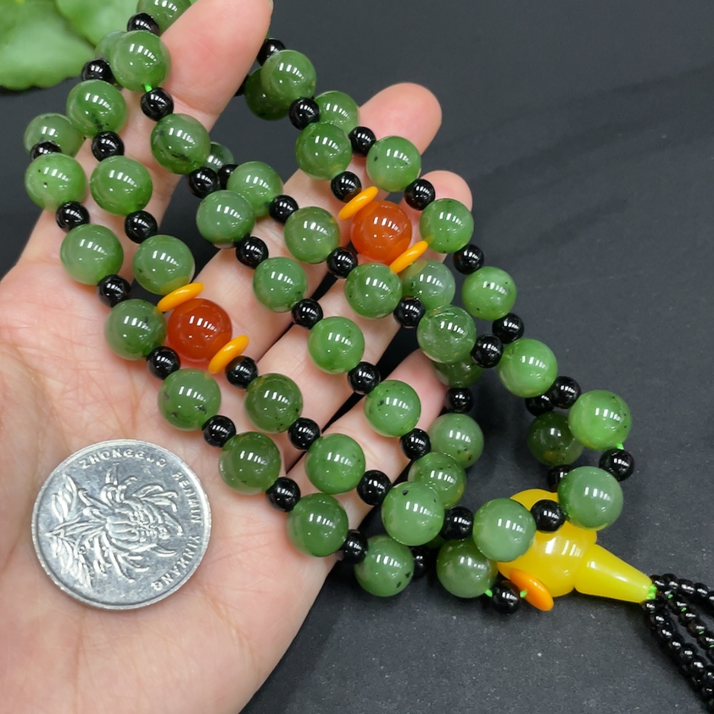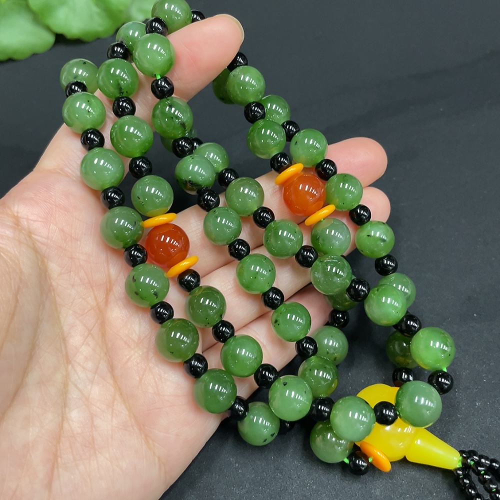 Hetian Jade Jasper Bead Necklace, Approx. 9.3mm, Total Weight Approx. 94.3g