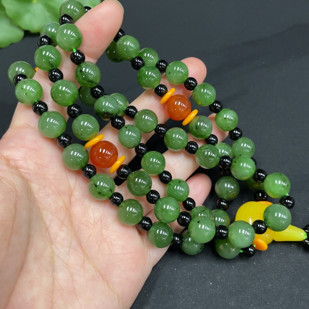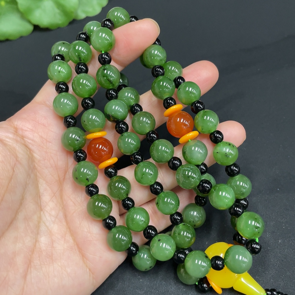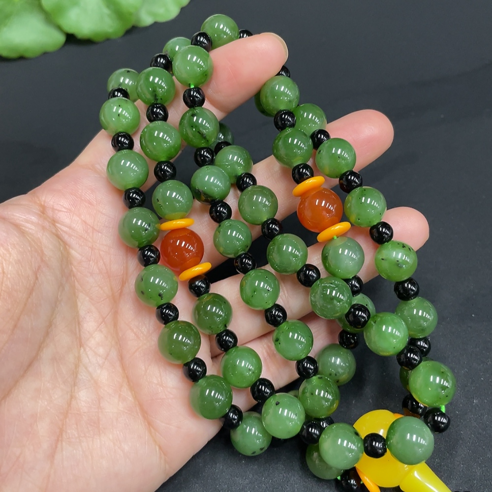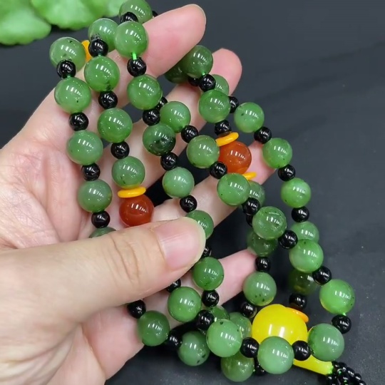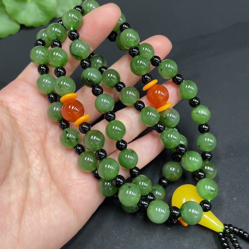 Hetian Jade Jasper Bead Necklace, Approx. 9.3mm, Total Weight Approx. 94.3g
