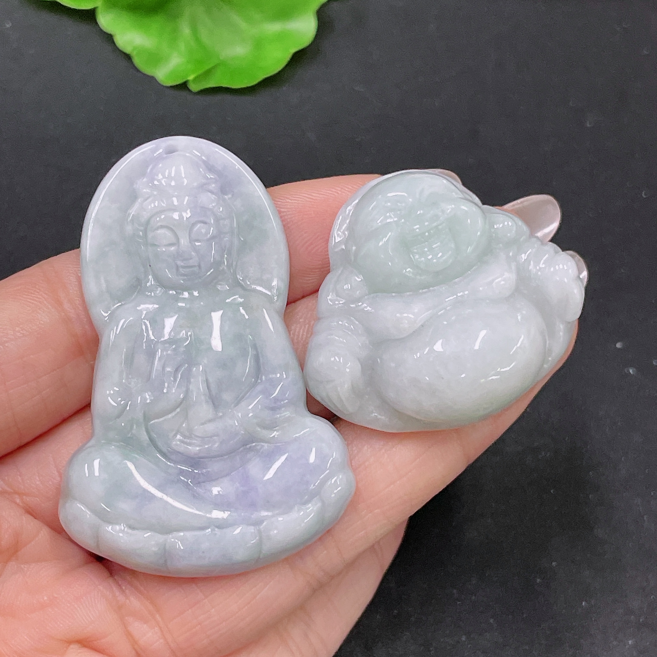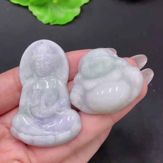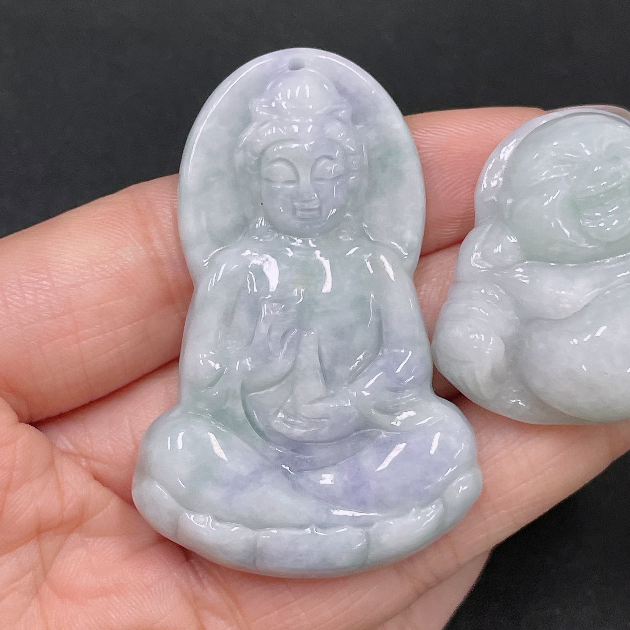 Jadeite Pendant Buddha + Guanyin Sell as a Lot