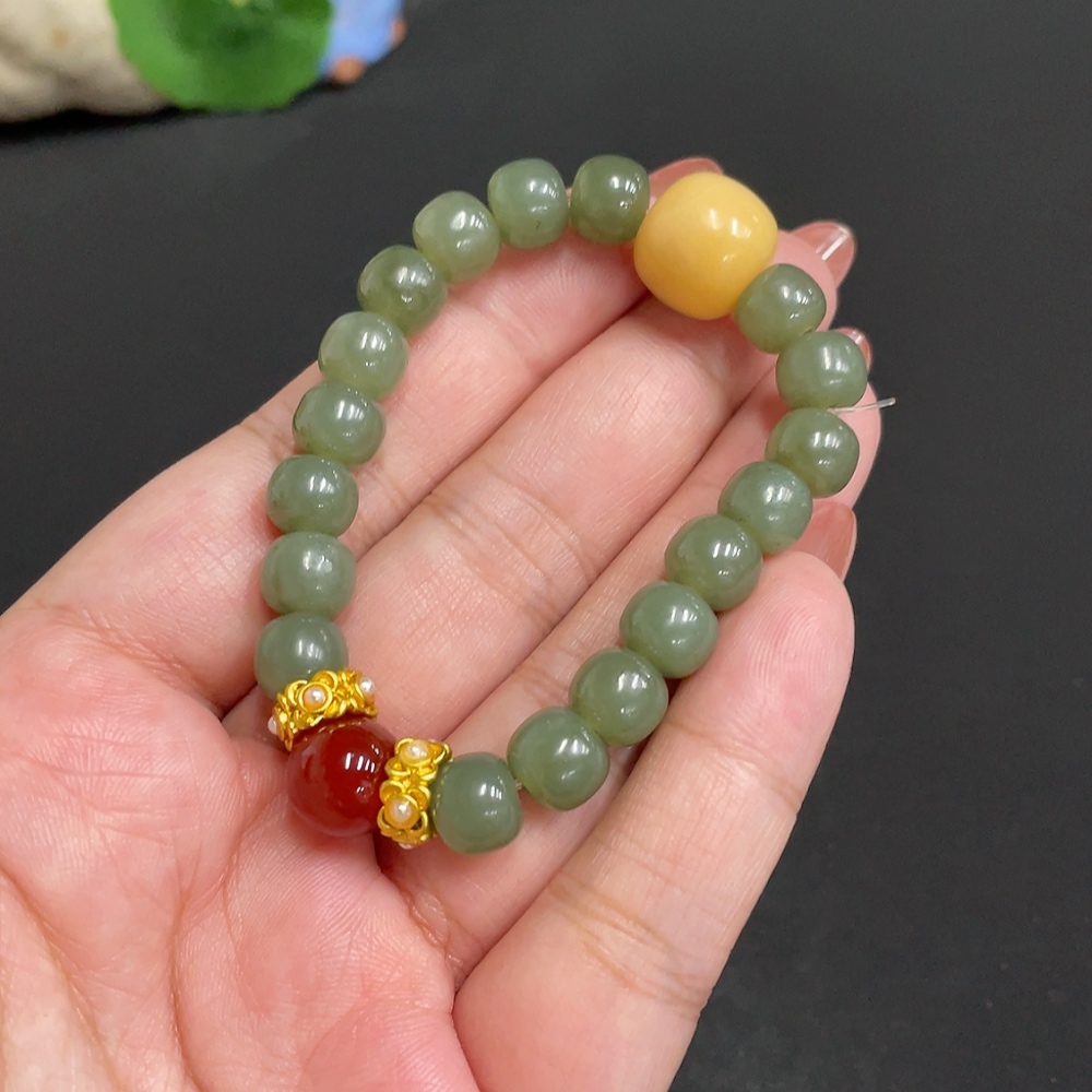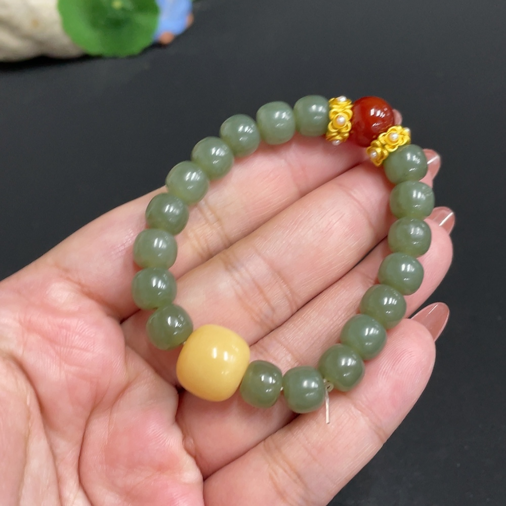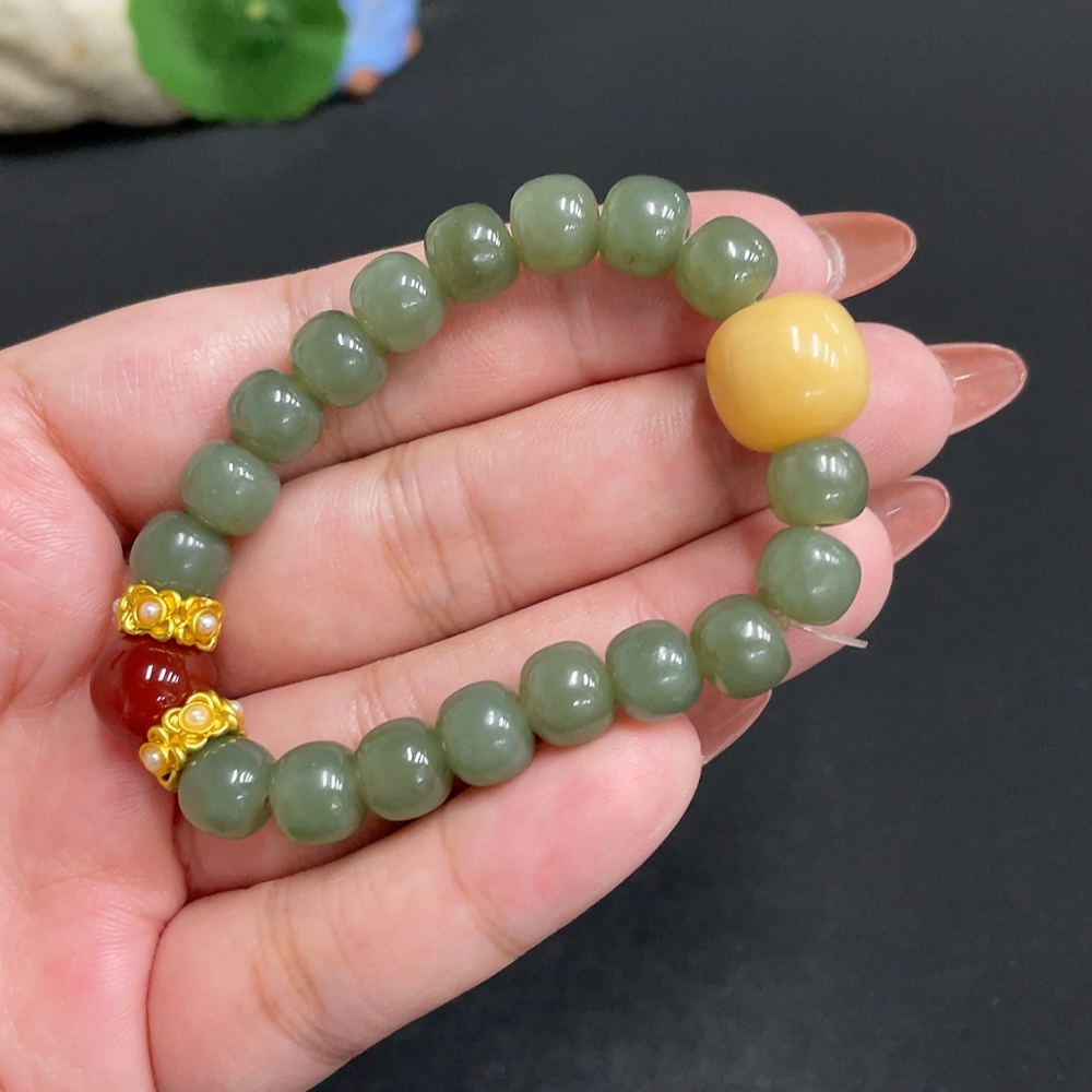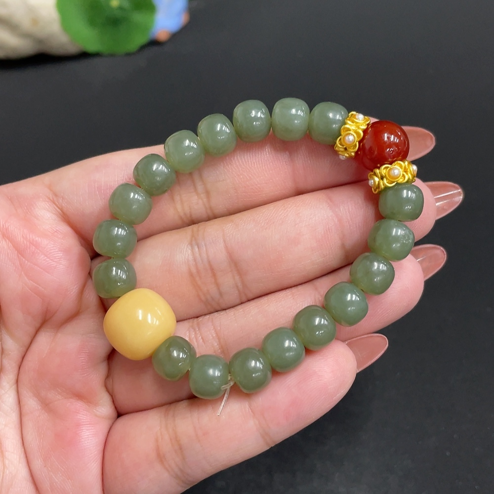 Hetian Jade Bracelet, Approx. 8mm Beads, Total Weight Approx. 20.3g, Non-Gold