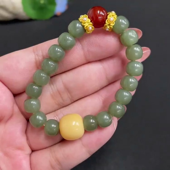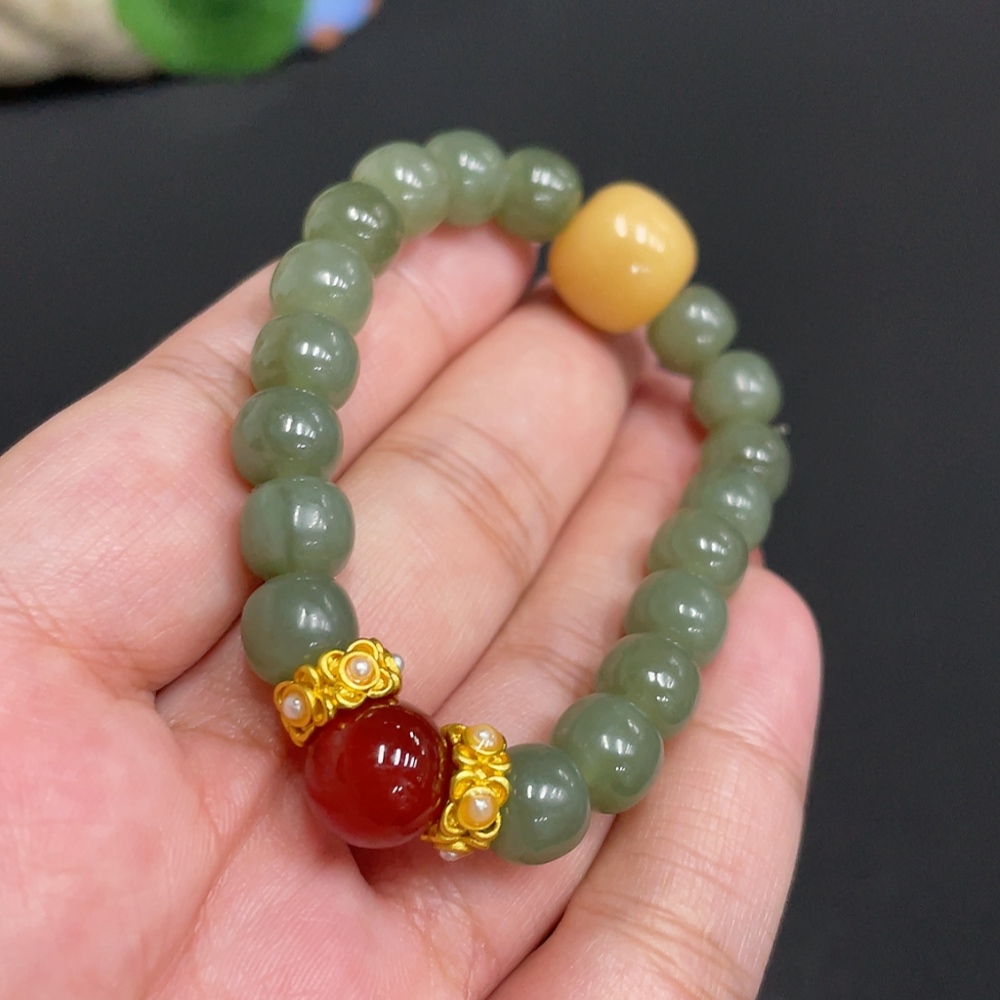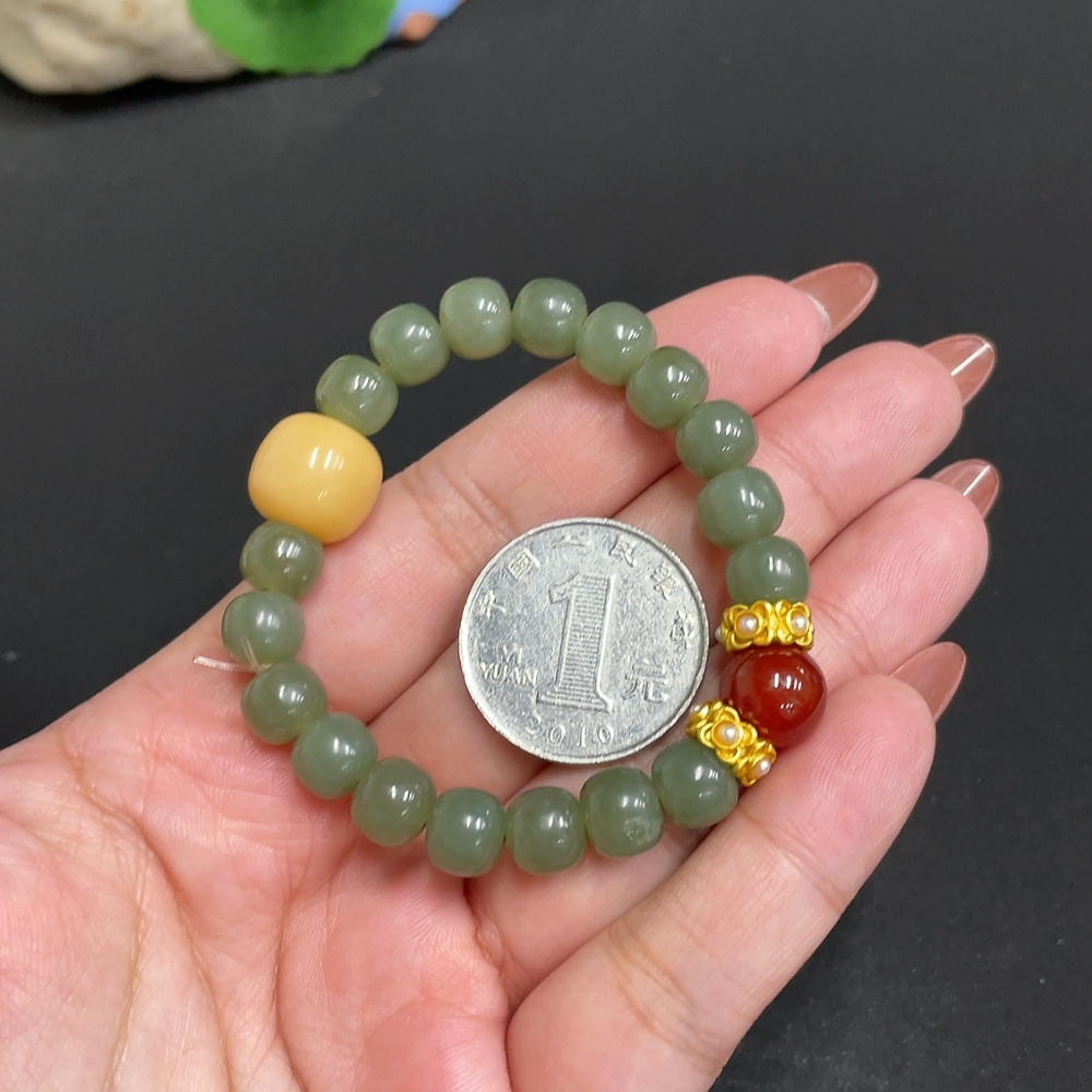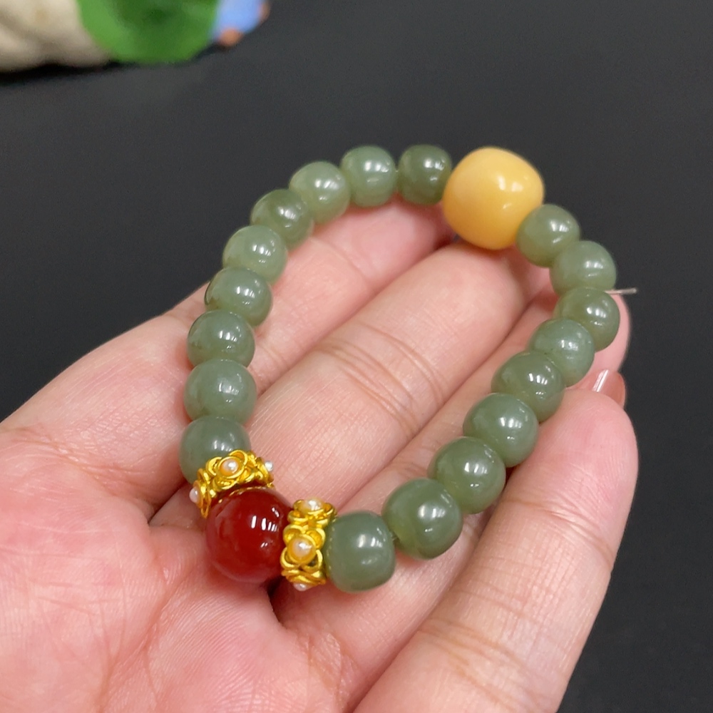 Hetian Jade Bracelet, Approx. 8mm Beads, Total Weight Approx. 20.3g, Non-Gold