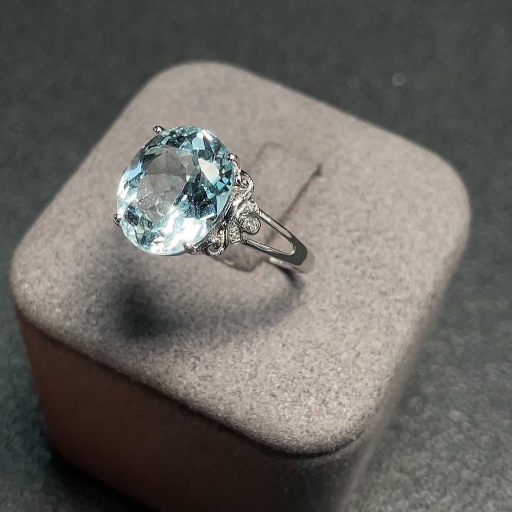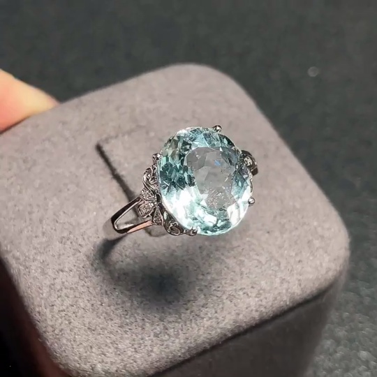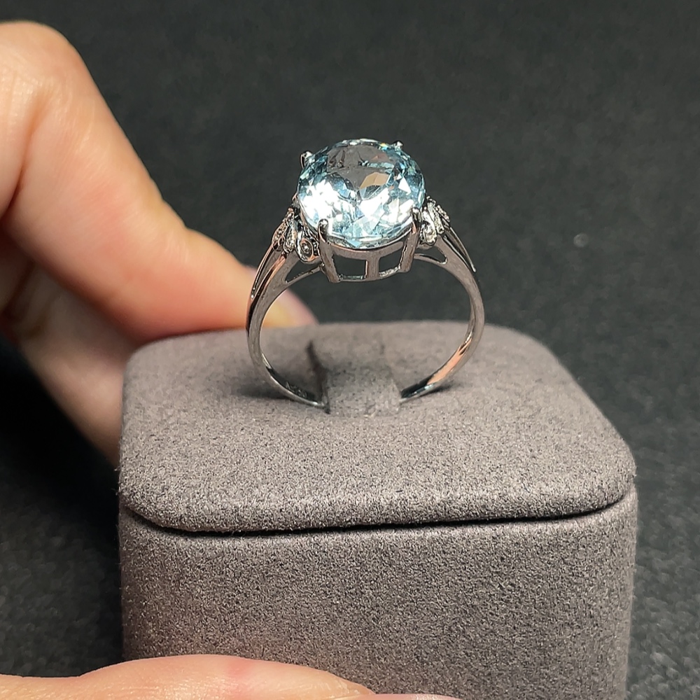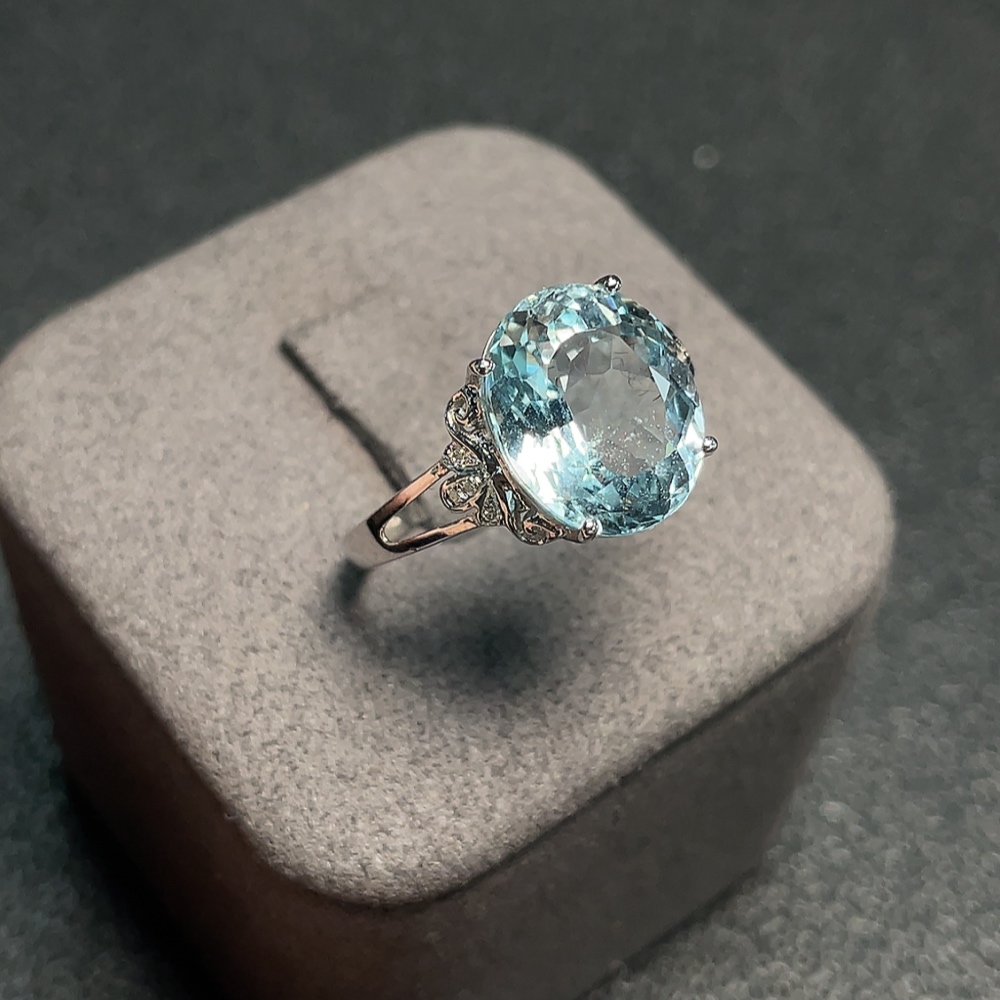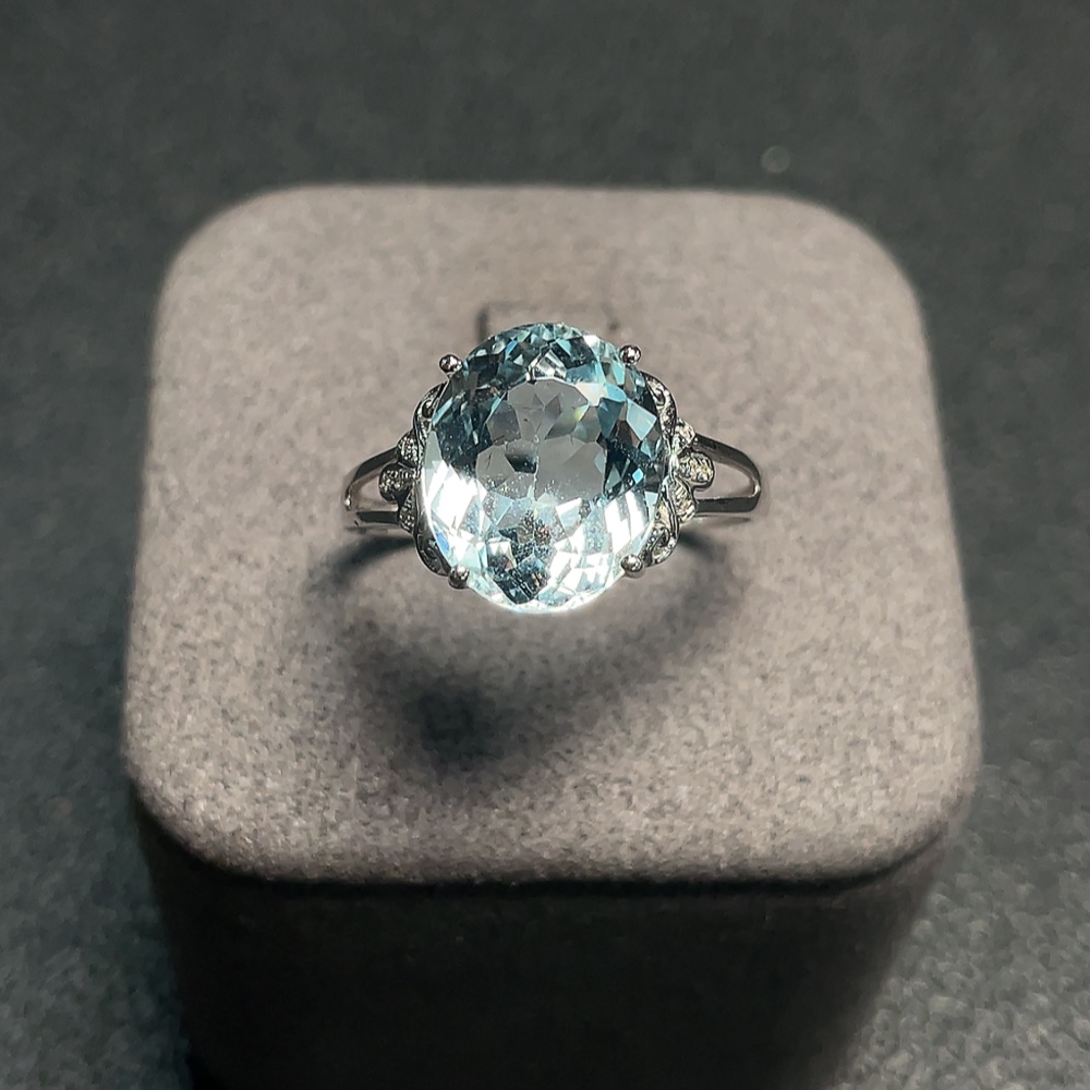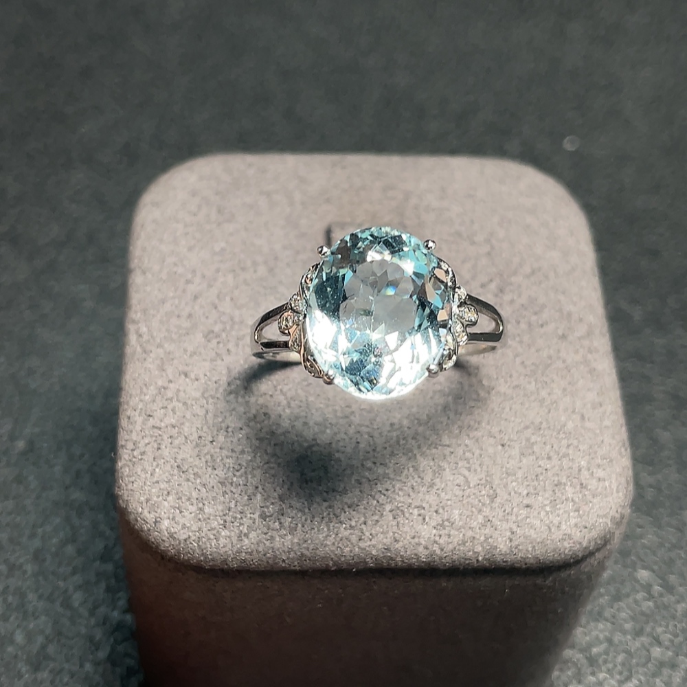 Aquamarine Ring 72% Gold Content with Diamond Accents, Total Weight Approx. 3.72g, Size 23, Stone 12.8*10.5mm