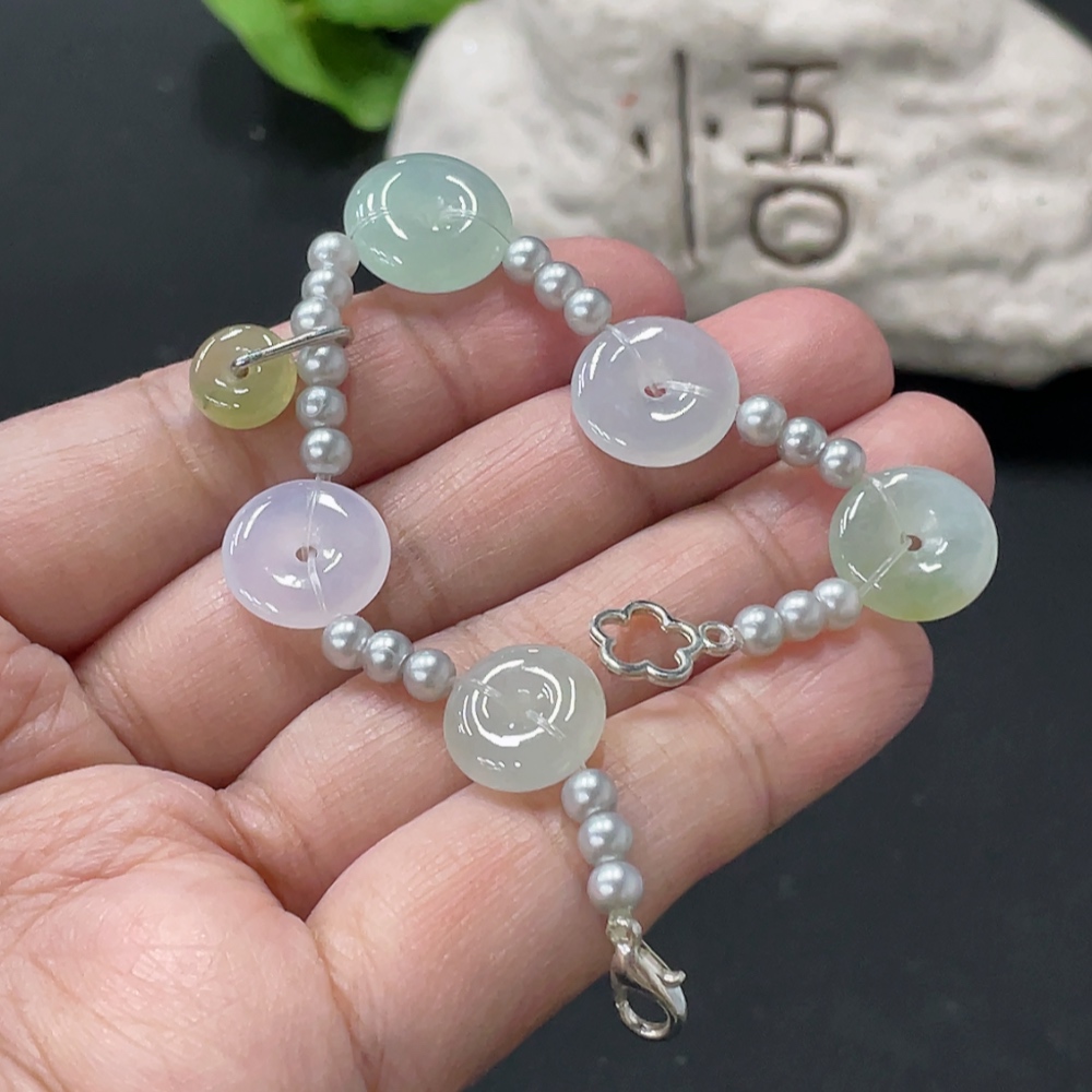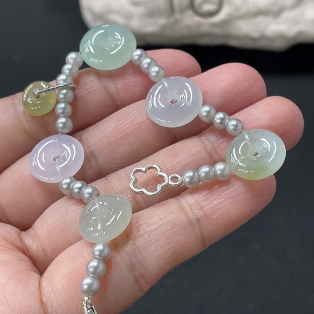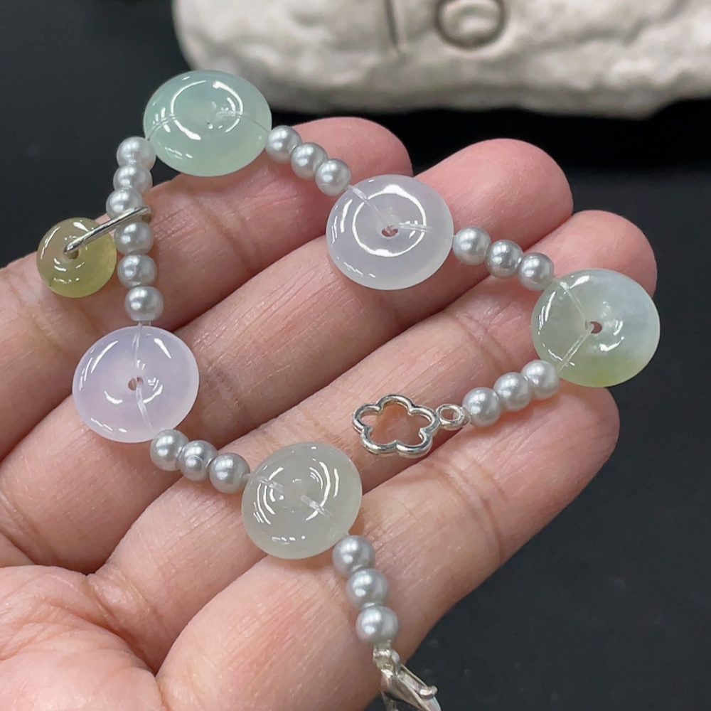 Jadeite Peace Knot Bracelet with approximate total weight of 7.5g, non-gold inlaid and non-A grade matching beads