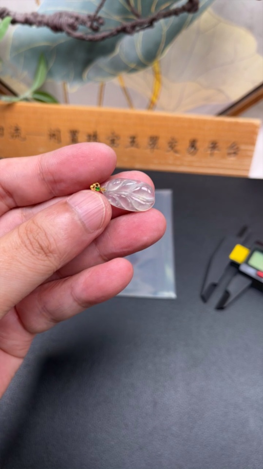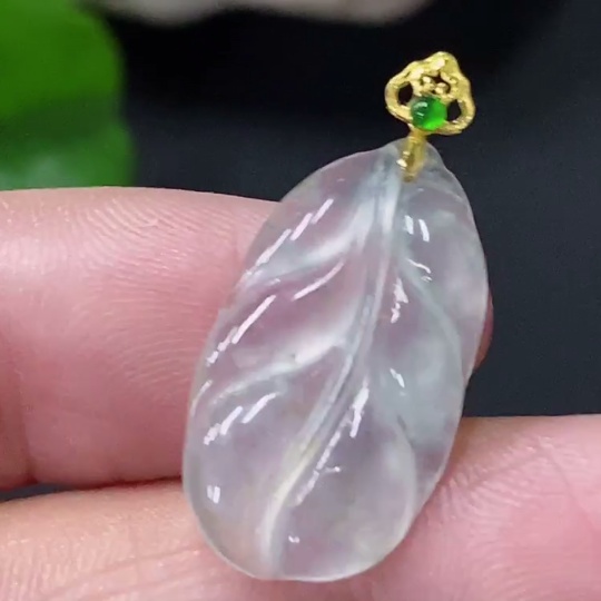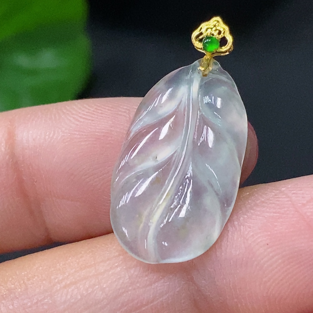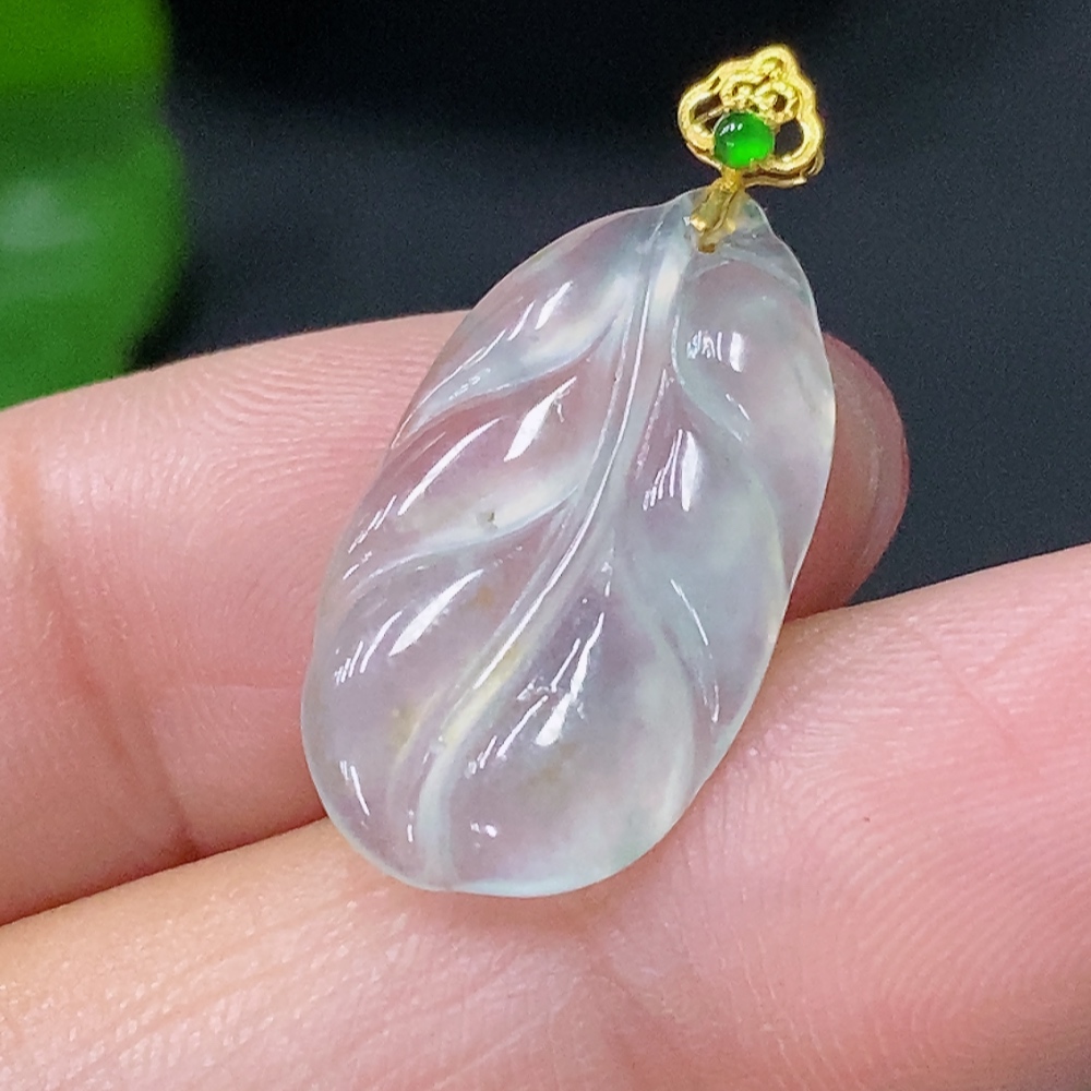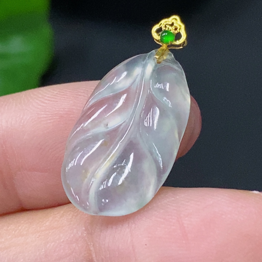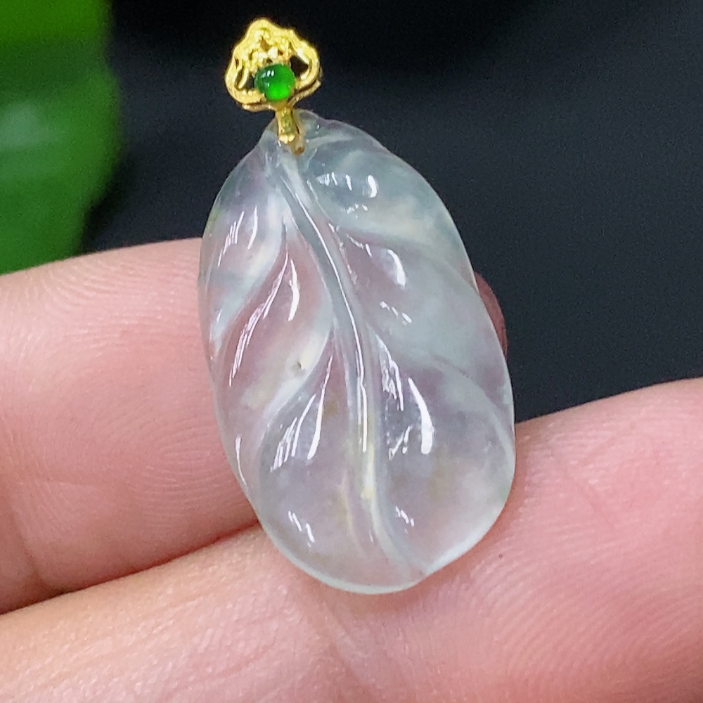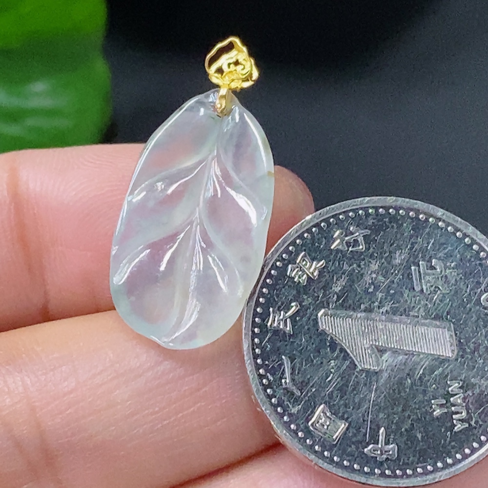 Jadeite Pendant Leaf 18K Total Weight Approx. 1.27g