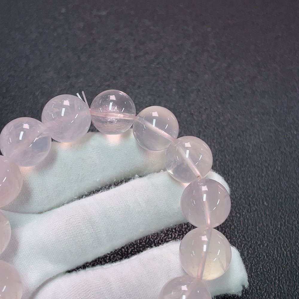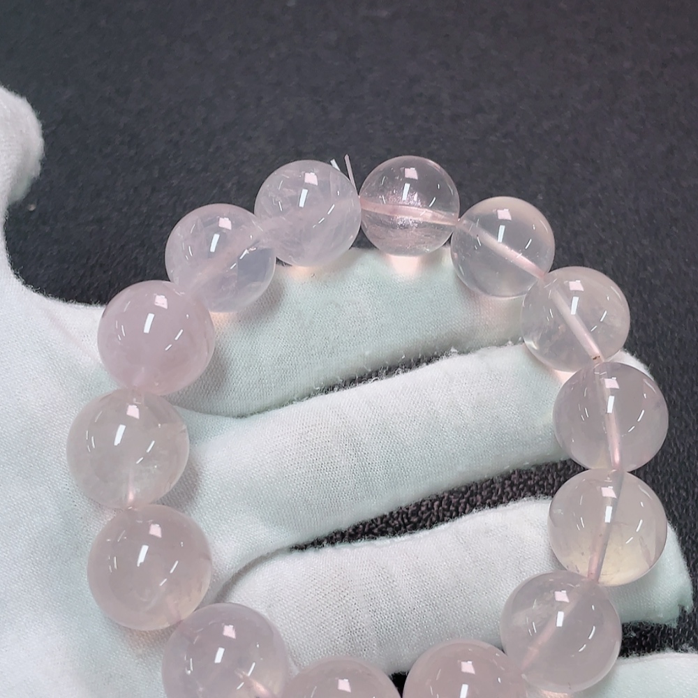 Crystal Bracelet with Visible Organic Inclusions, Total Weight Approximately 74.81g, Bead Size About 15.6mm