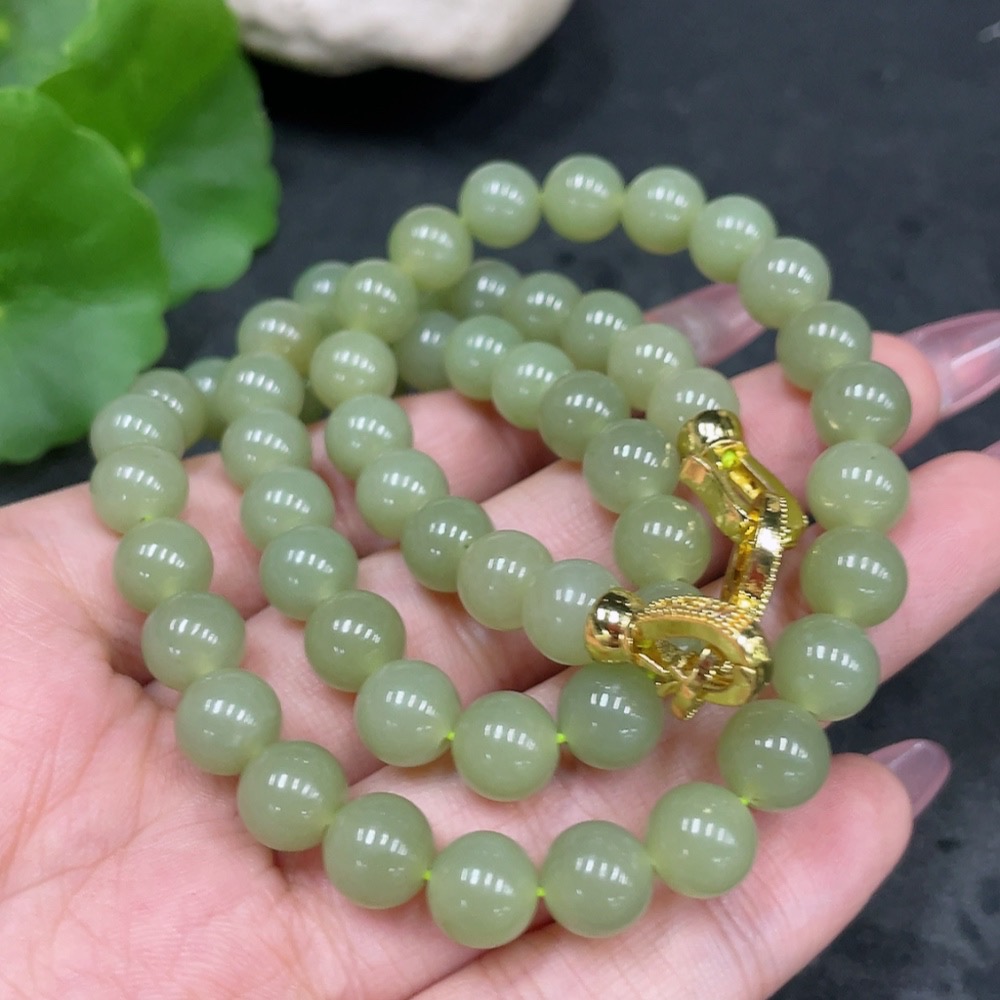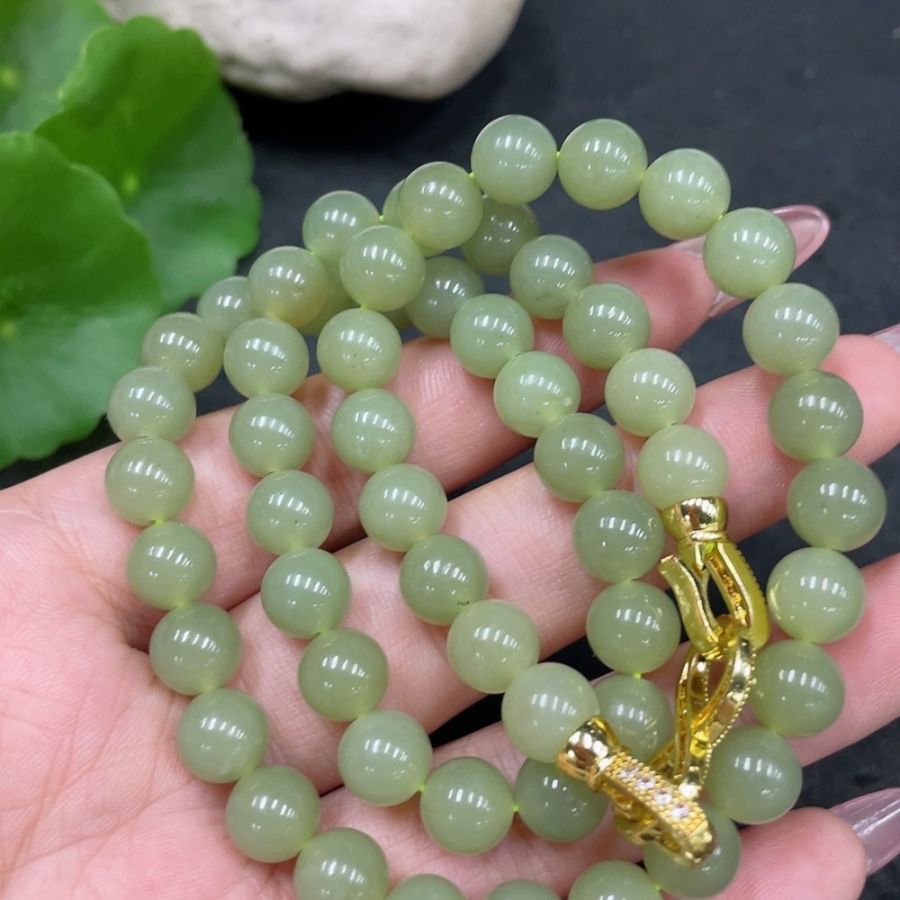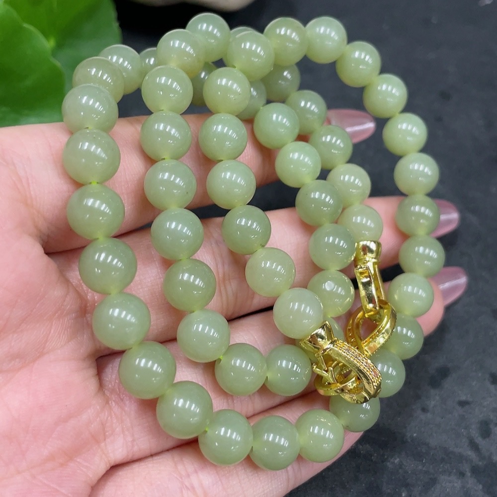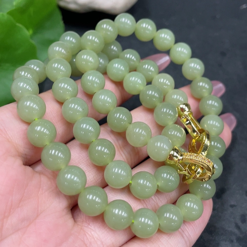 Hetian Jade Bead Necklace Non-Gold About 8mm Total Weight Approx. 47.8g