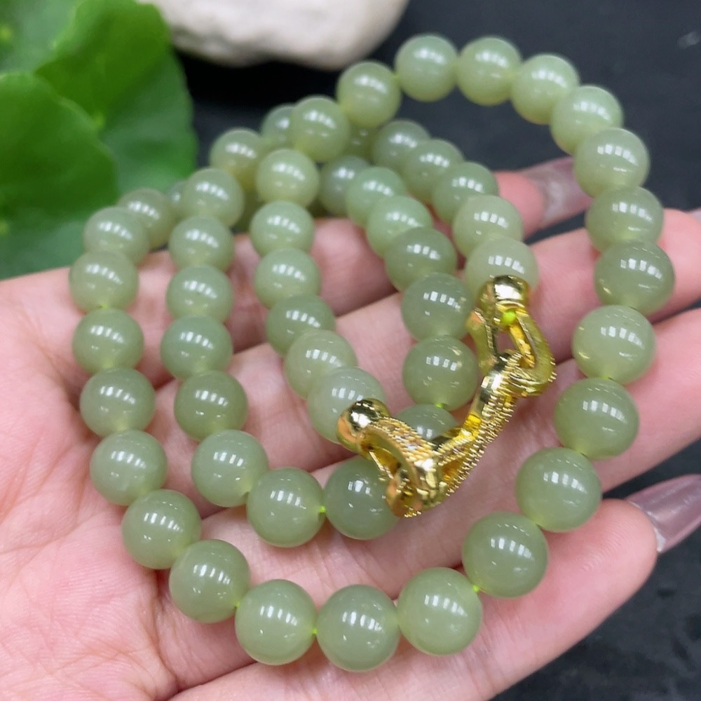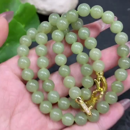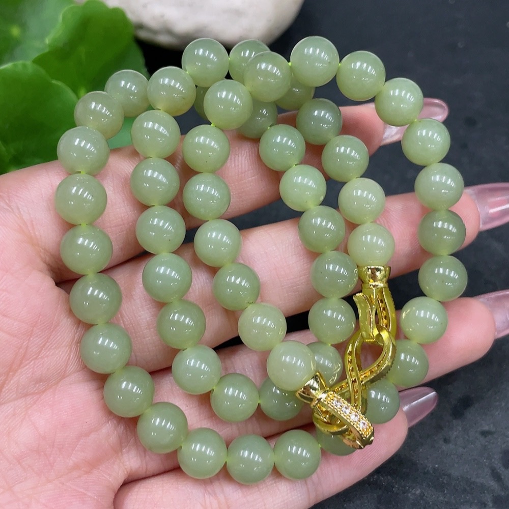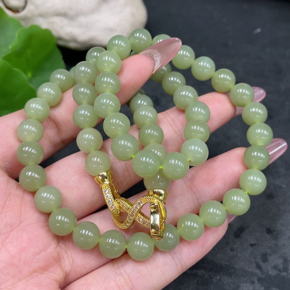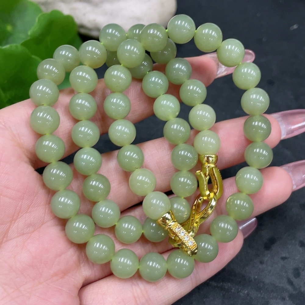 Hetian Jade Bead Necklace Non-Gold About 8mm Total Weight Approx. 47.8g