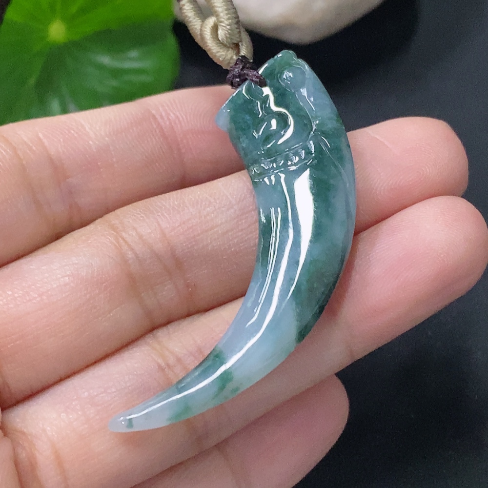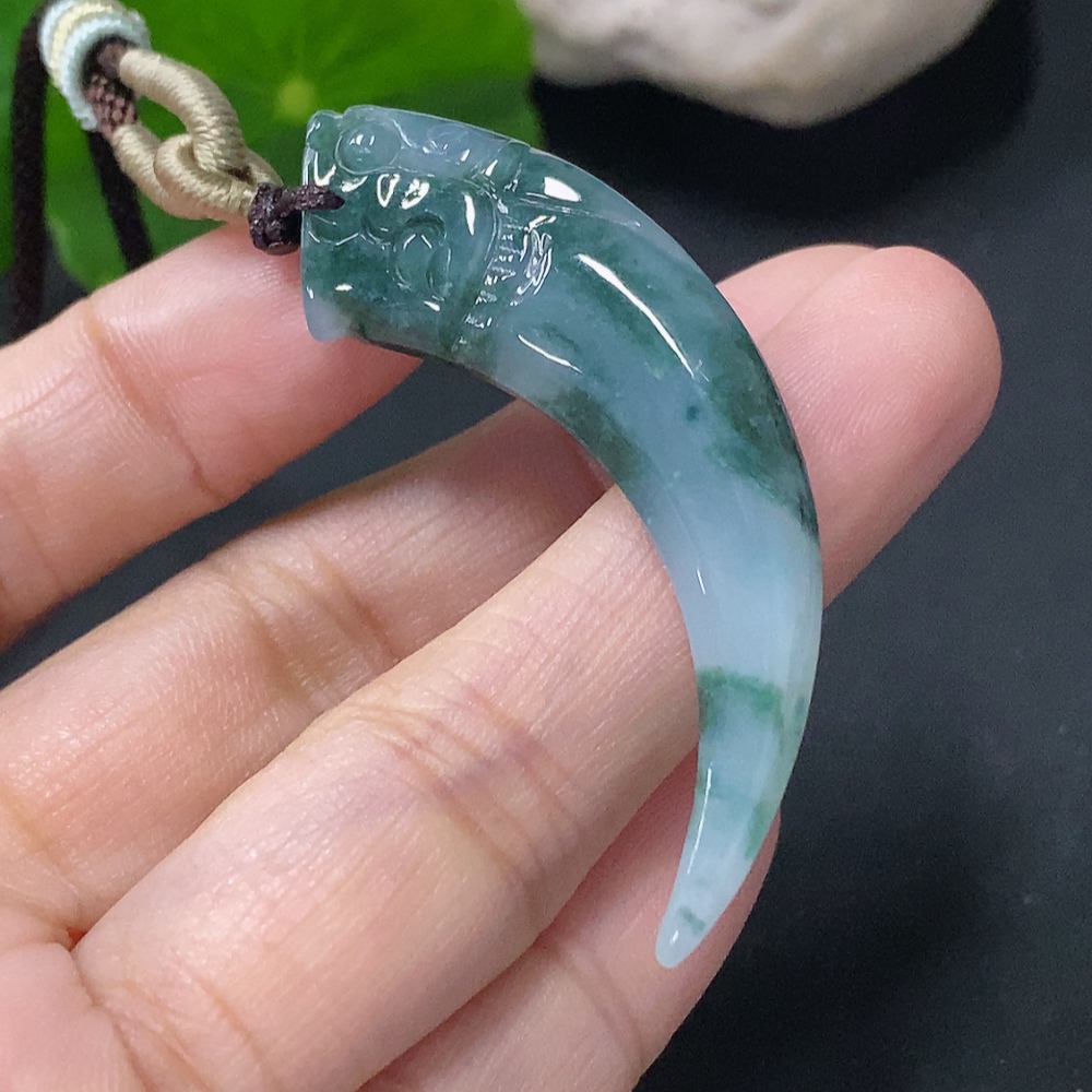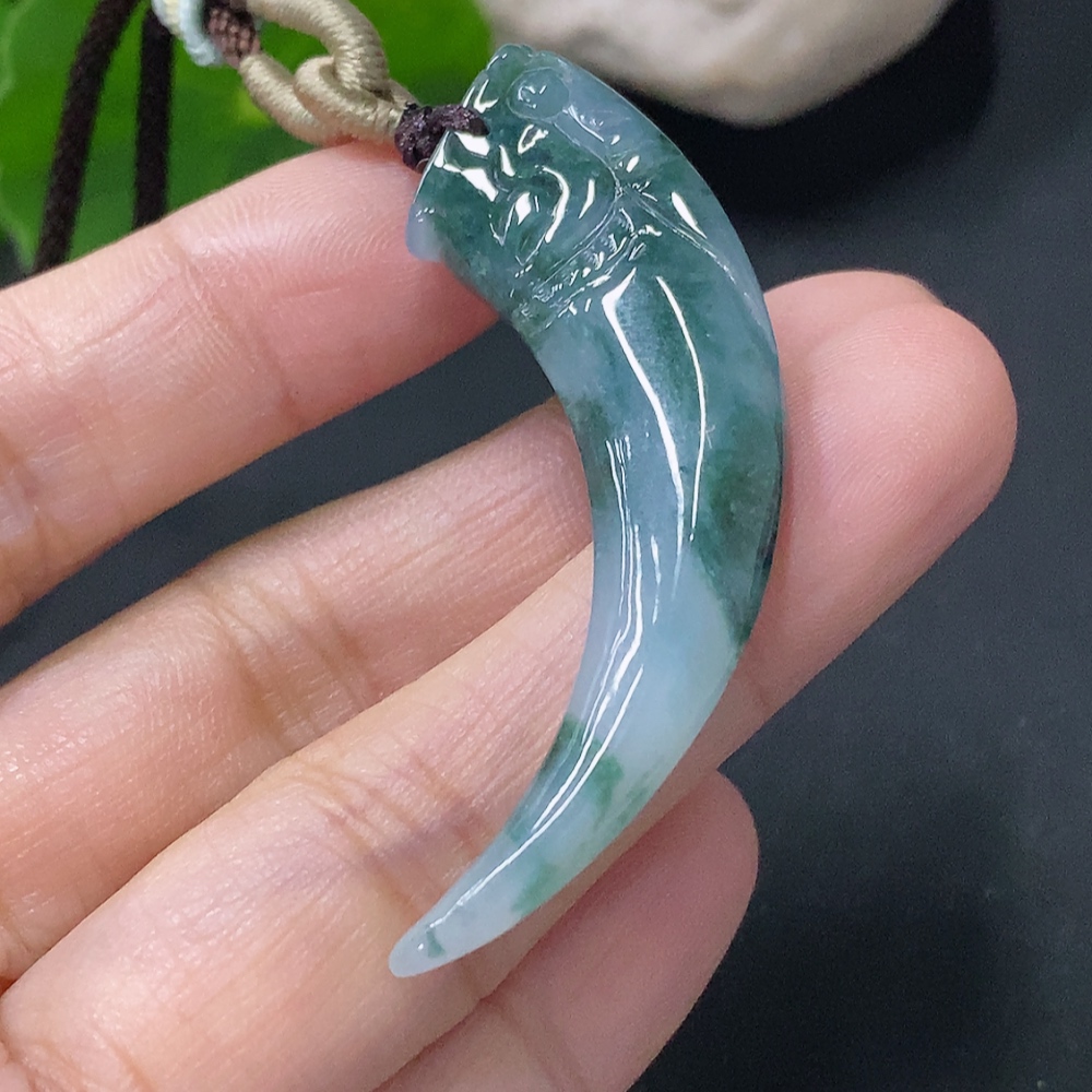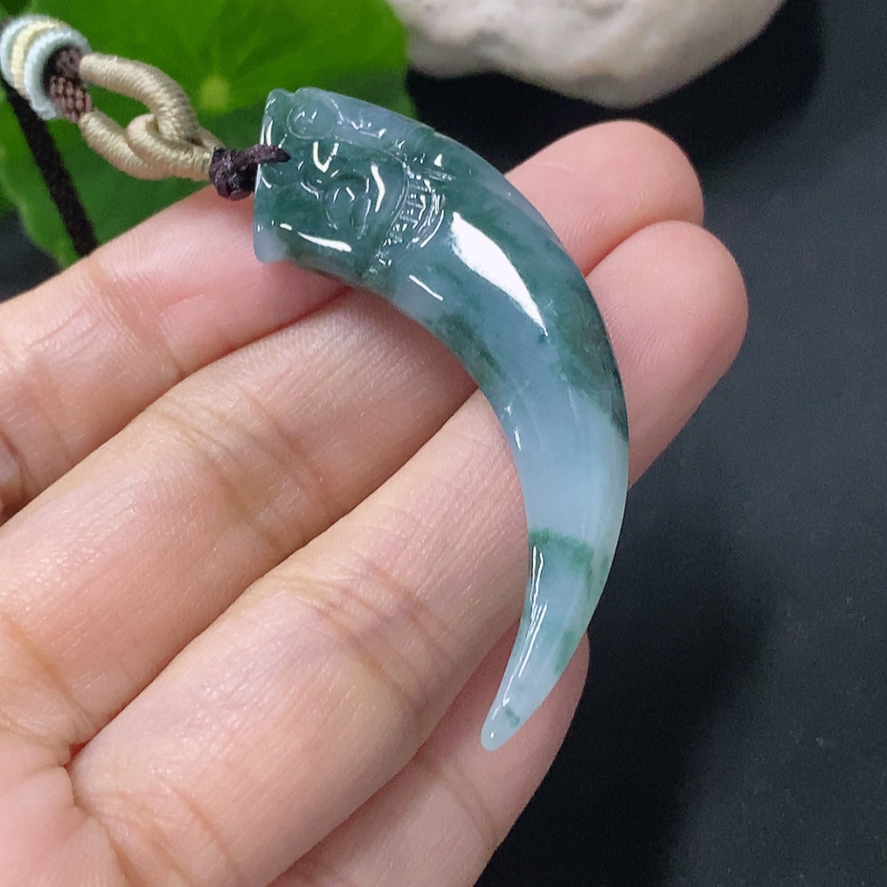 Jadeite Pendant Dragon Tooth Total Weight Approx. 8.47g with Cord