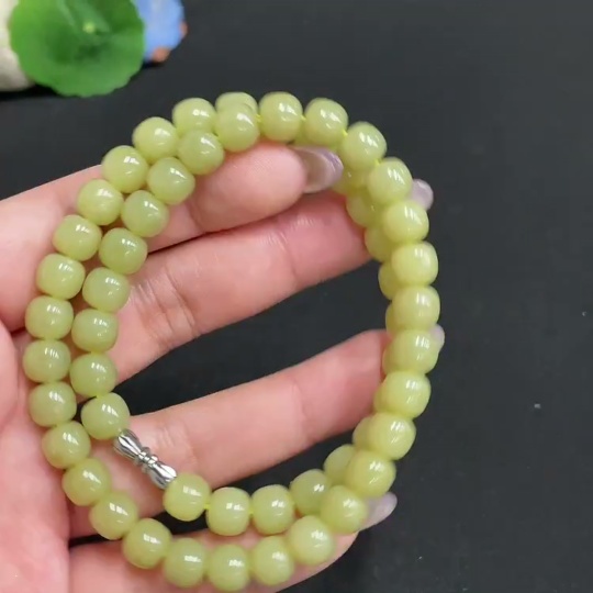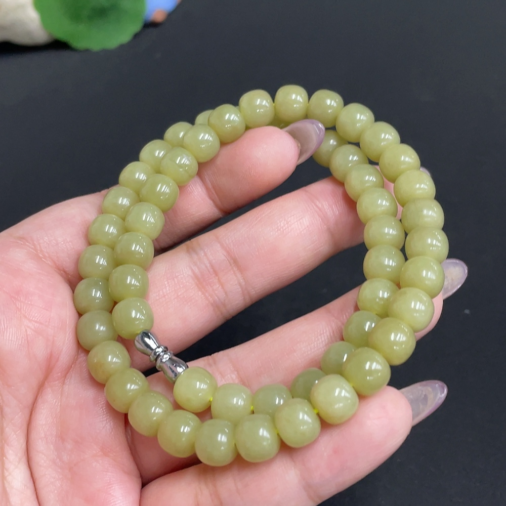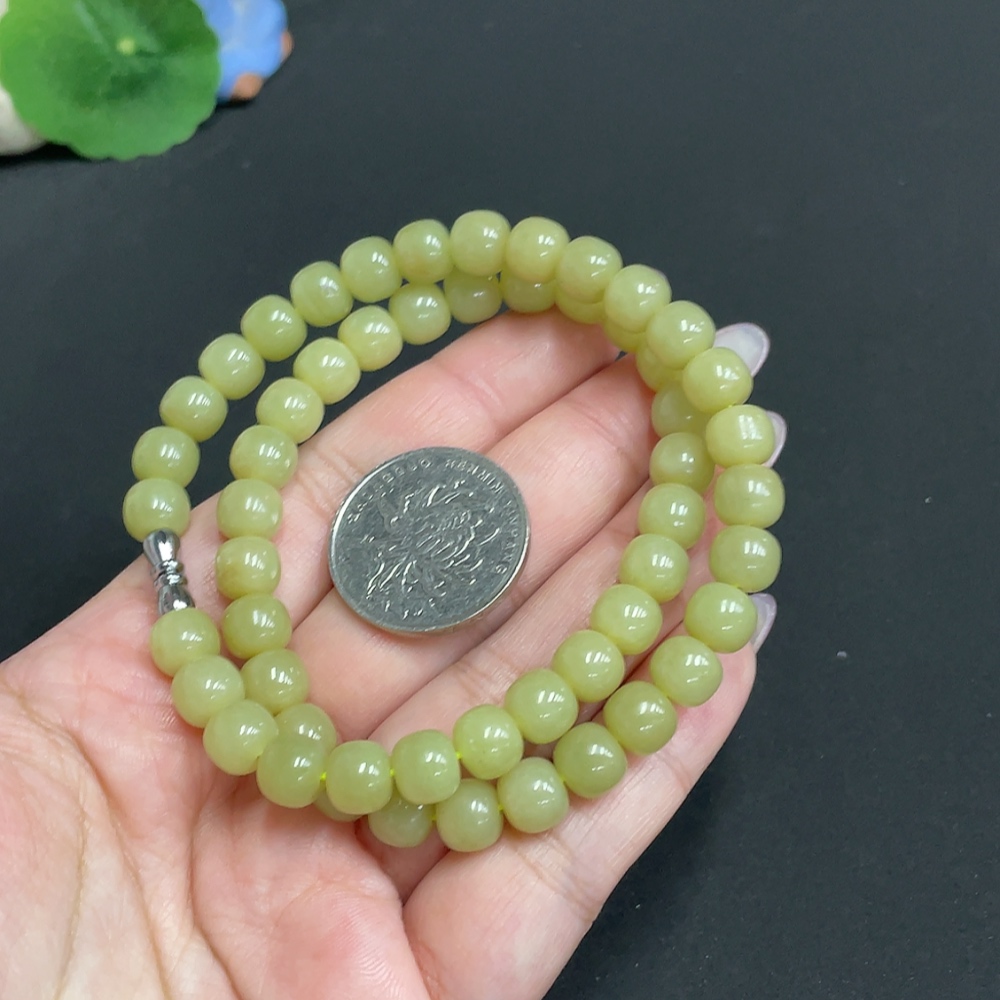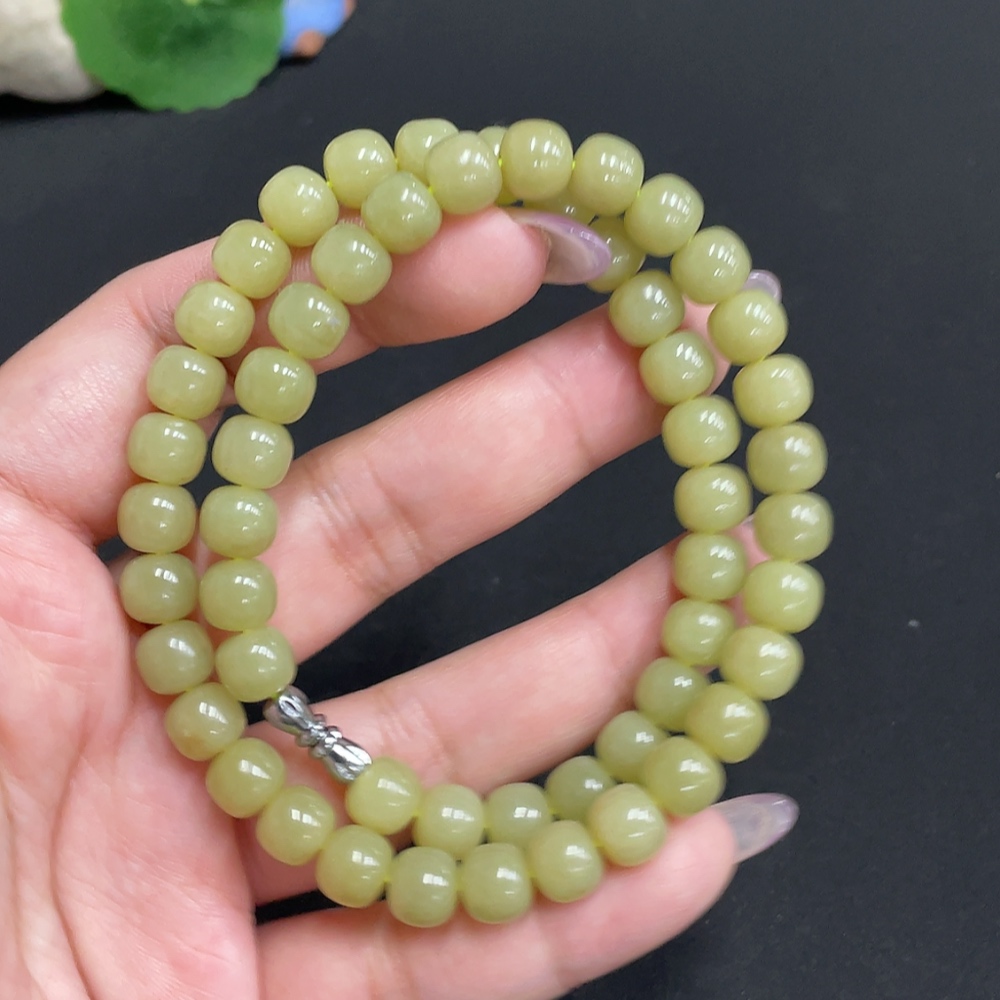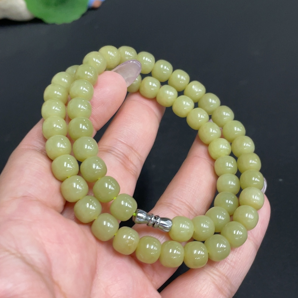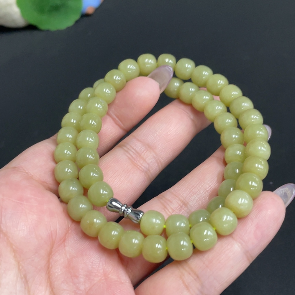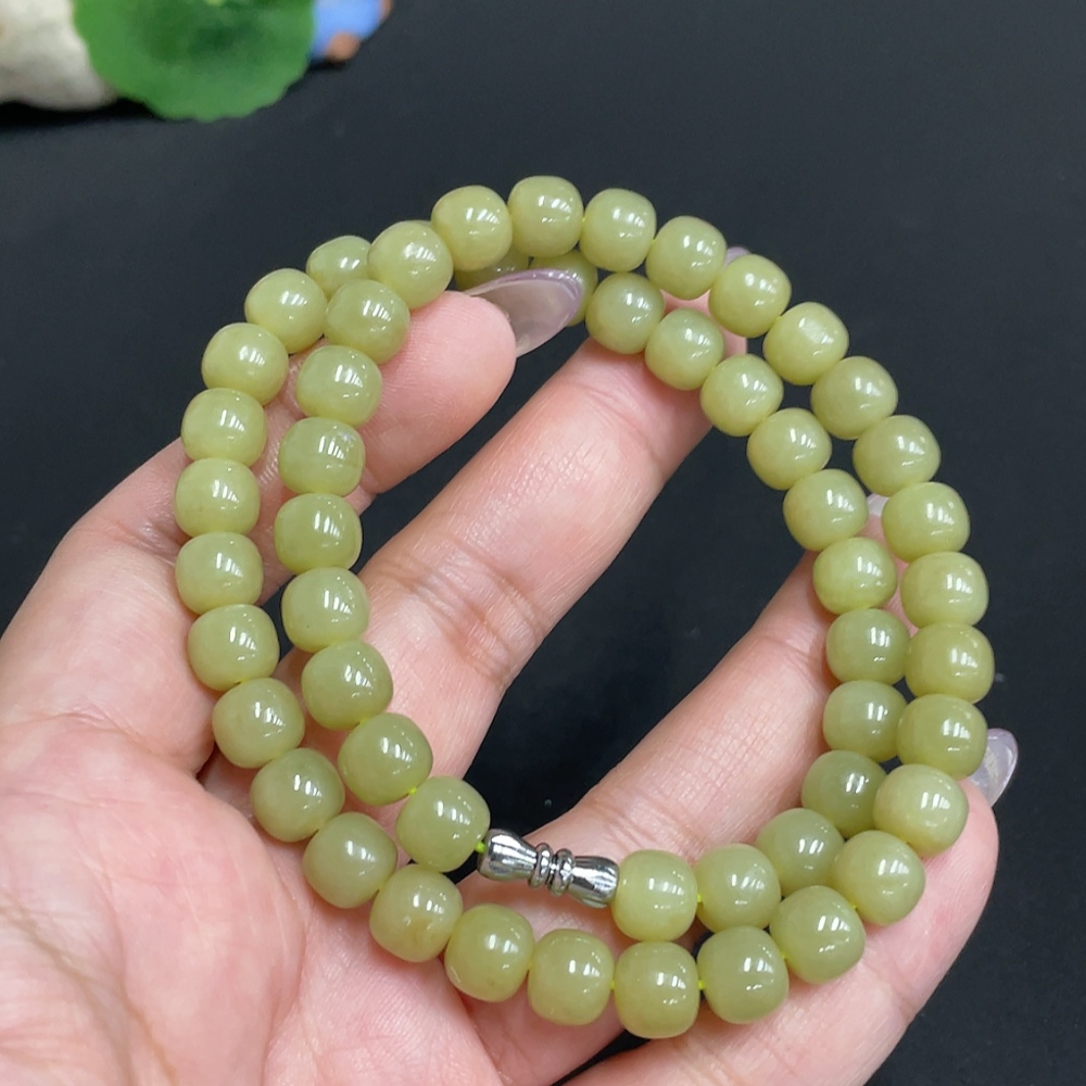 Hetian Jade Bead Necklace, Approx. 7.6mm, Total Weight Approx. 43.5g