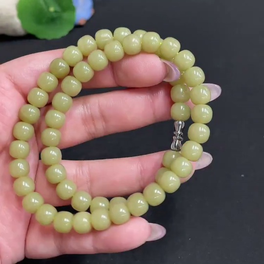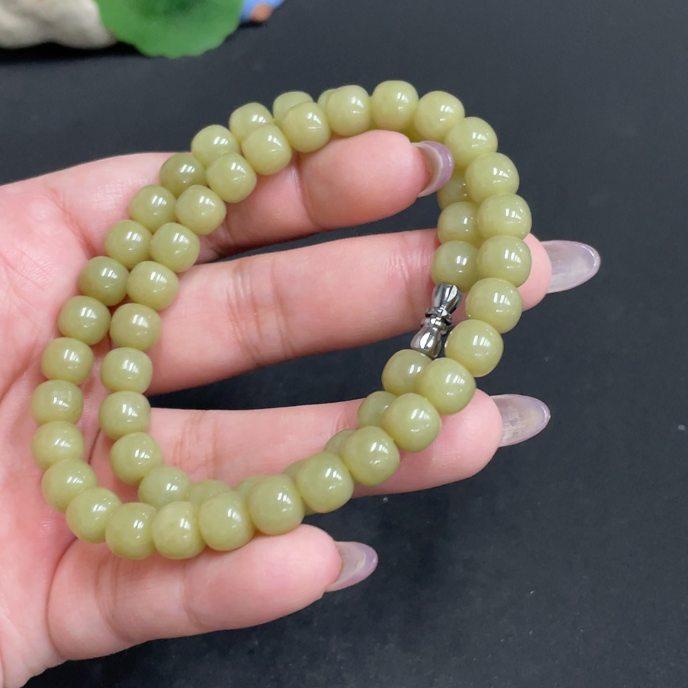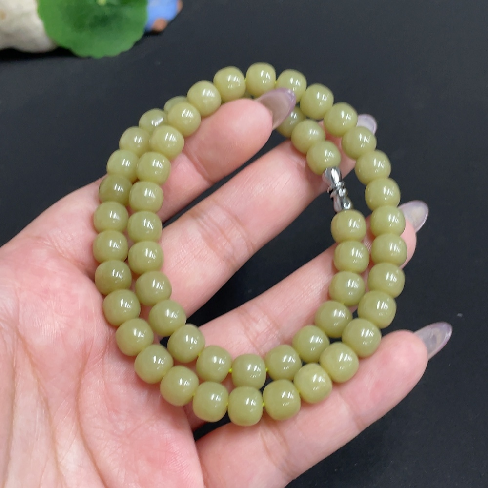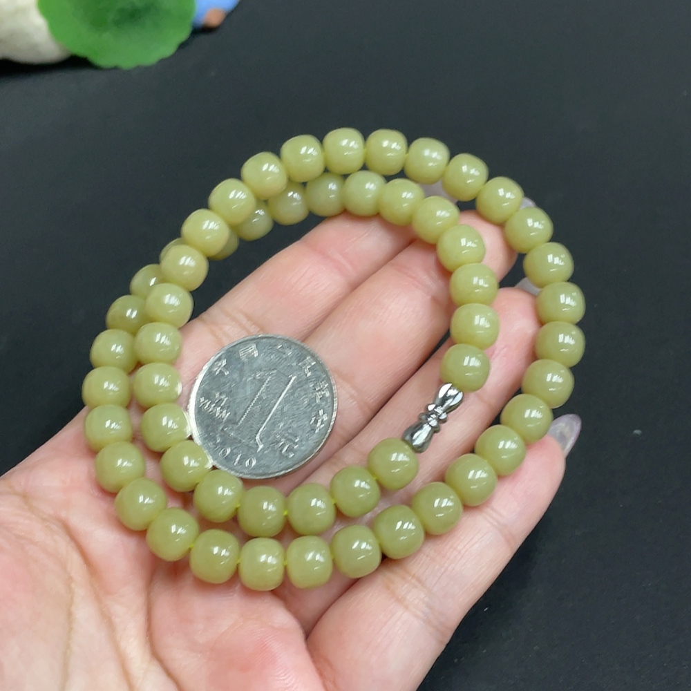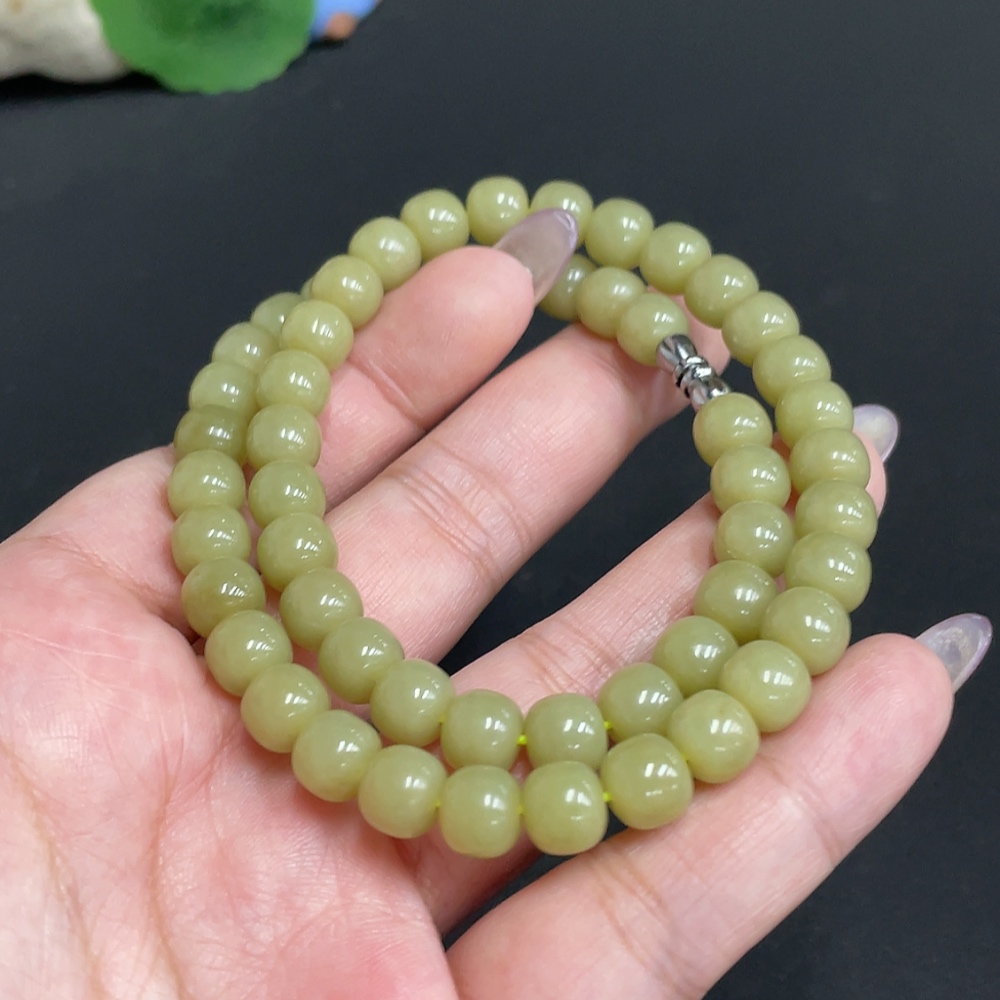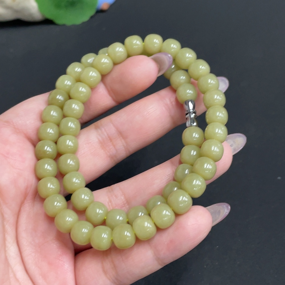 Hetian Jade Bead Necklace Approx. 7.7 mm Total Weight Approx. 43.2g