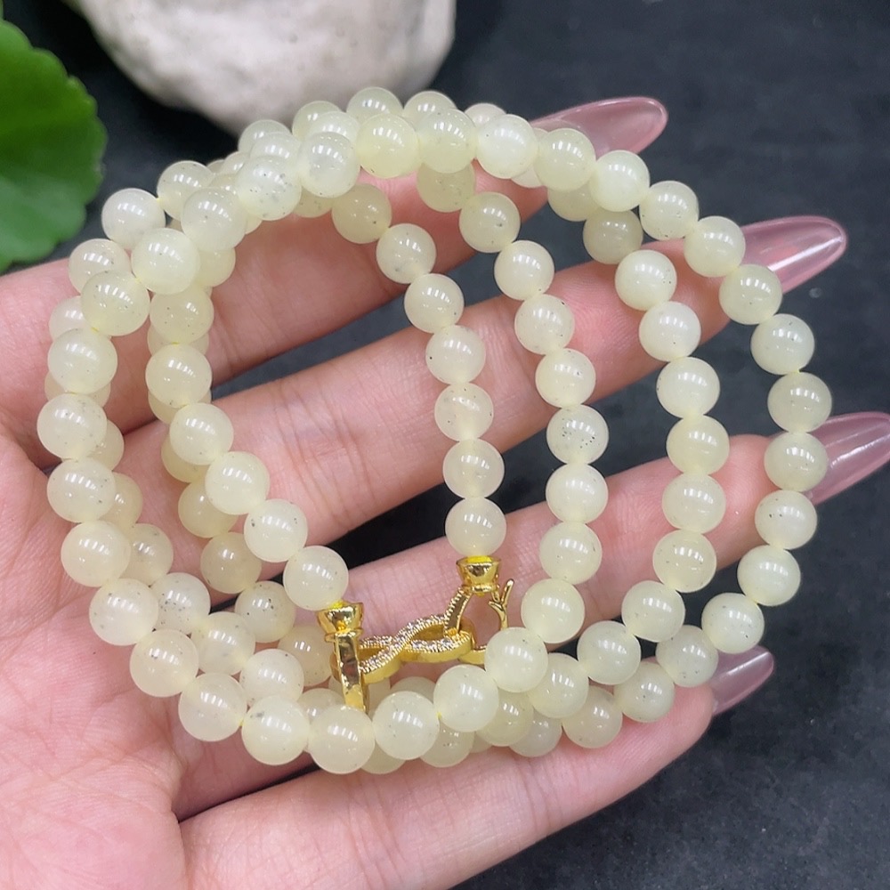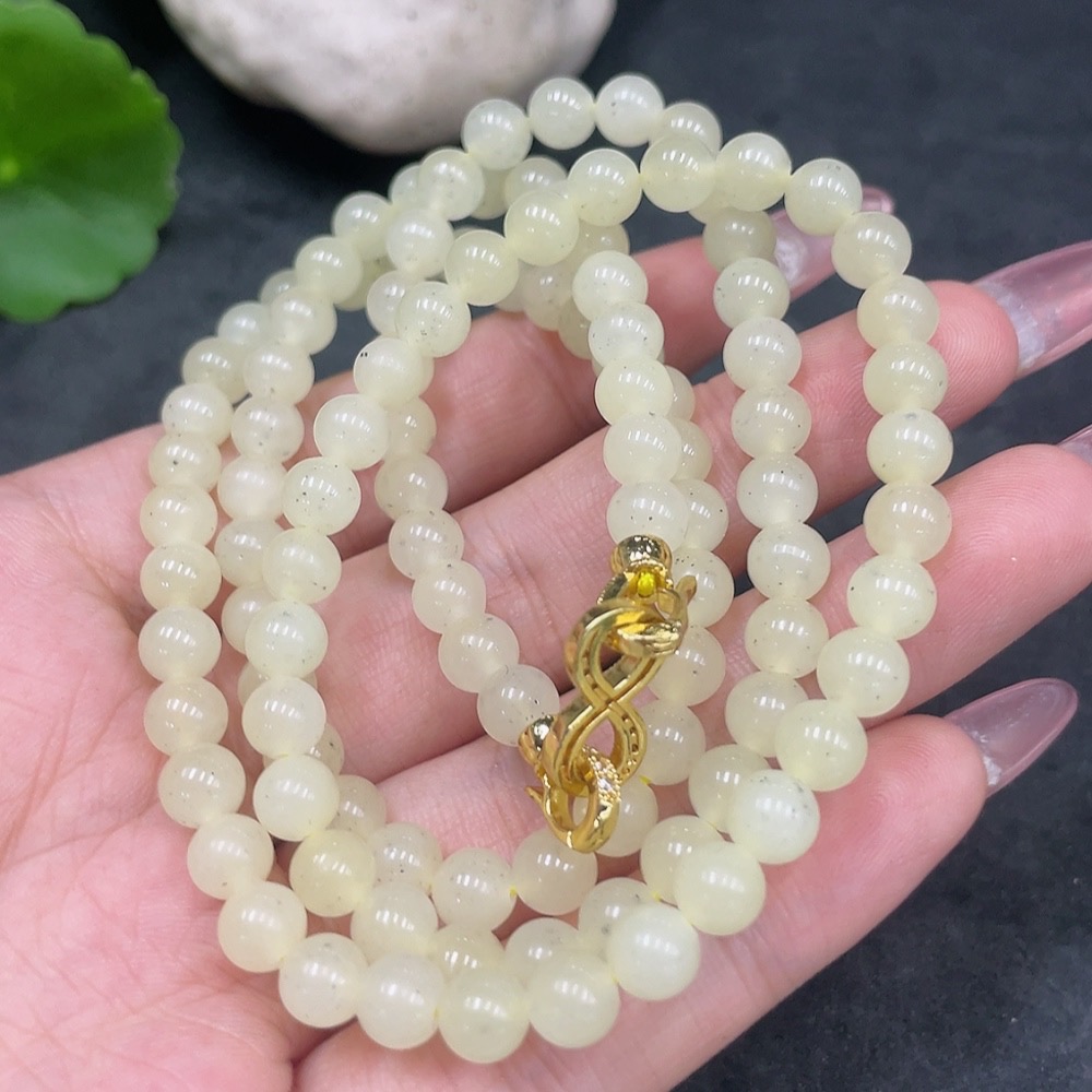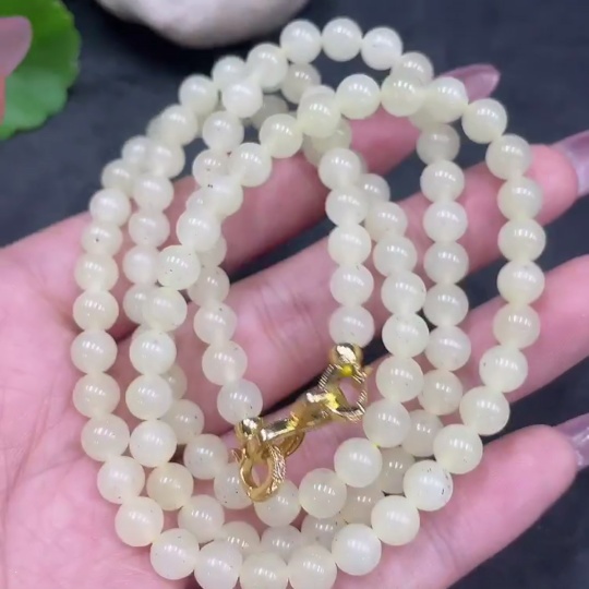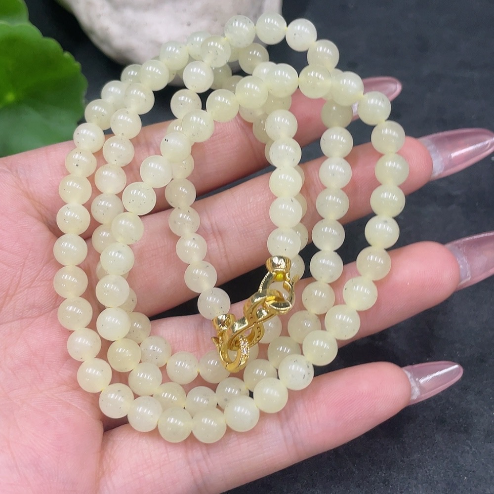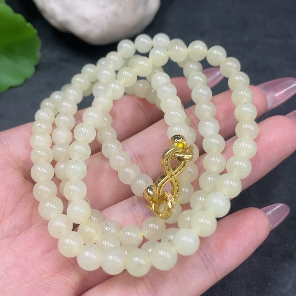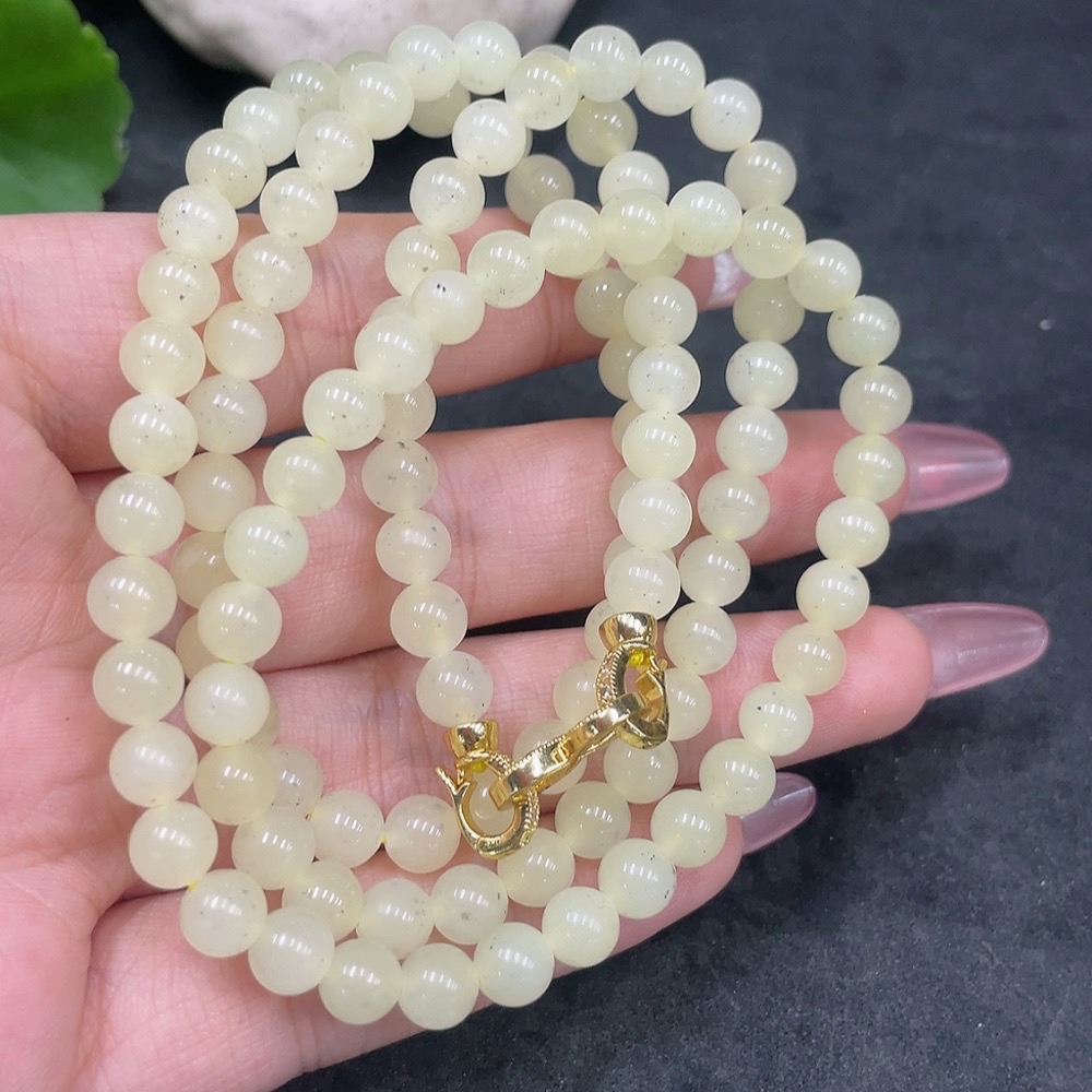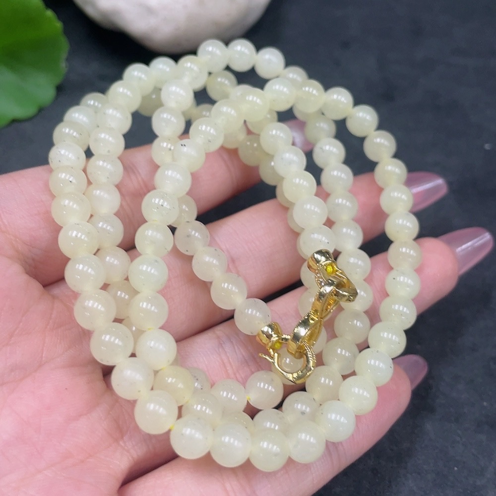 Hetian Jade Bead Necklace Non-Gold Approximately 6mm Total Weight About 38.2g