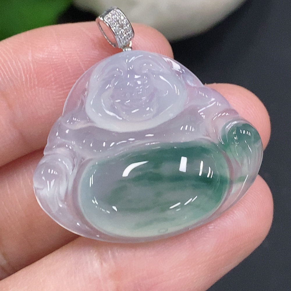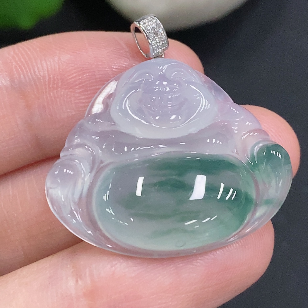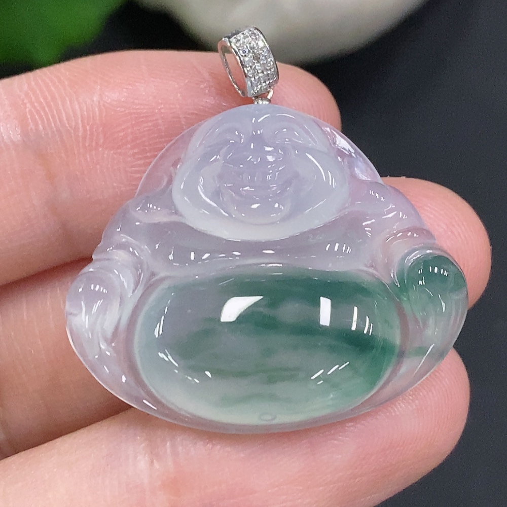 Jadeite Buddha Pendant with 18K Gold Clasp, Total Weight Approx. 6.5g (Diamond Accented)
