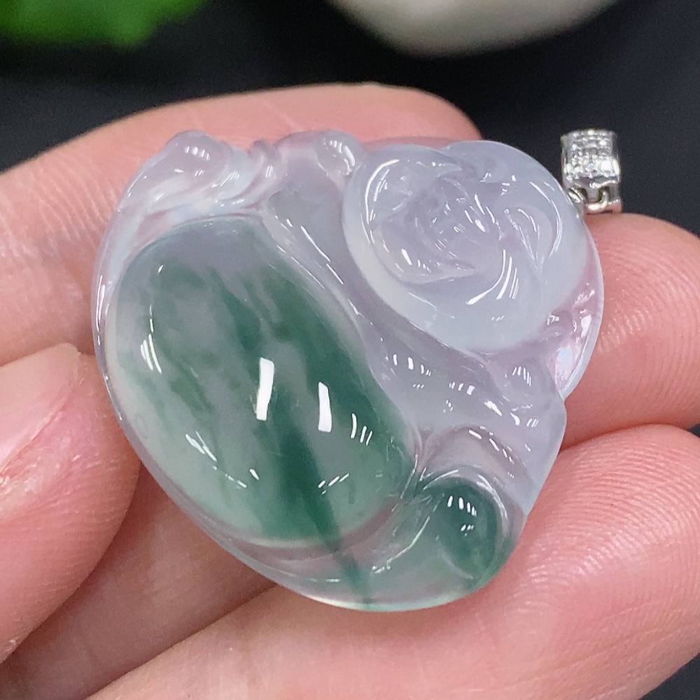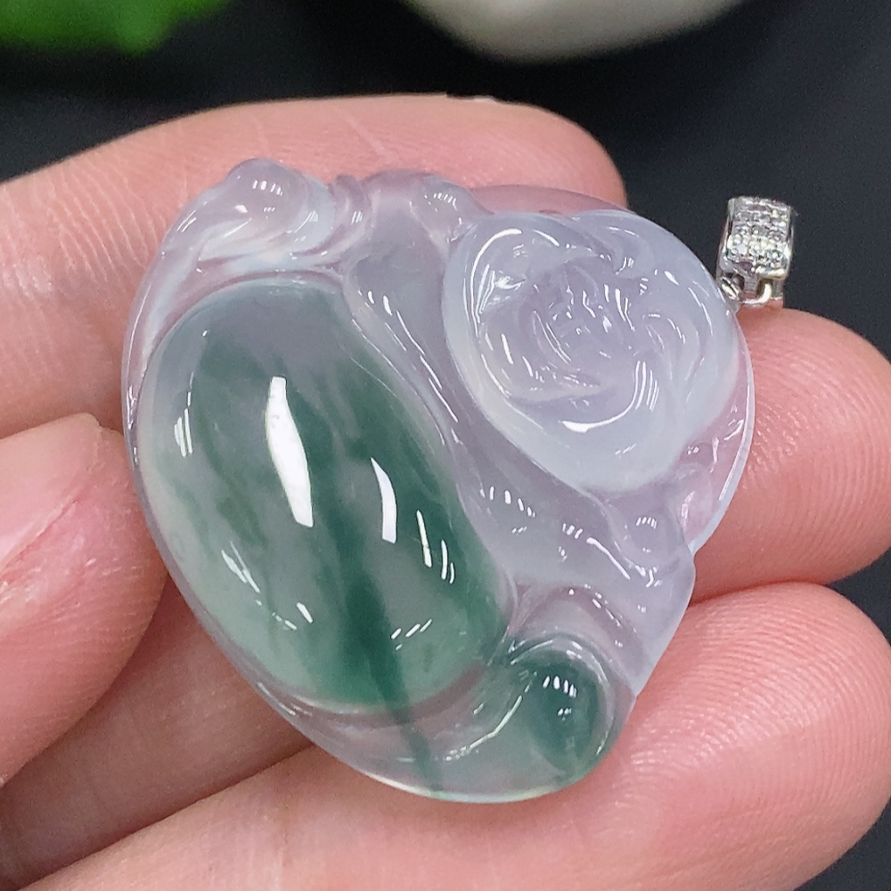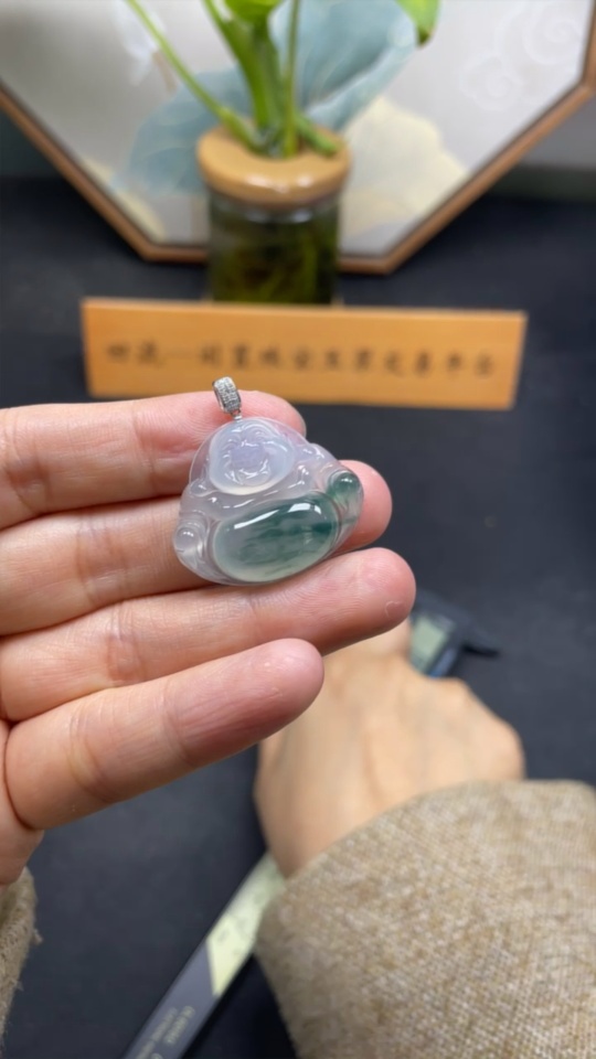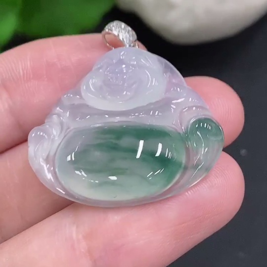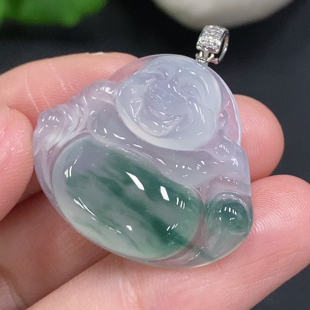 Jadeite Buddha Pendant with 18K Gold Clasp, Total Weight Approx. 6.5g (Diamond Accented)