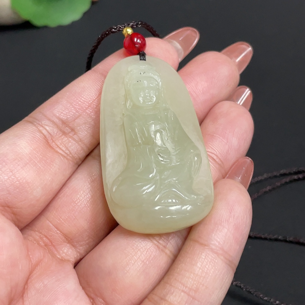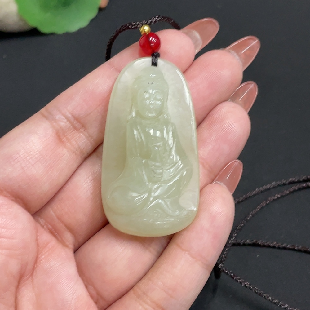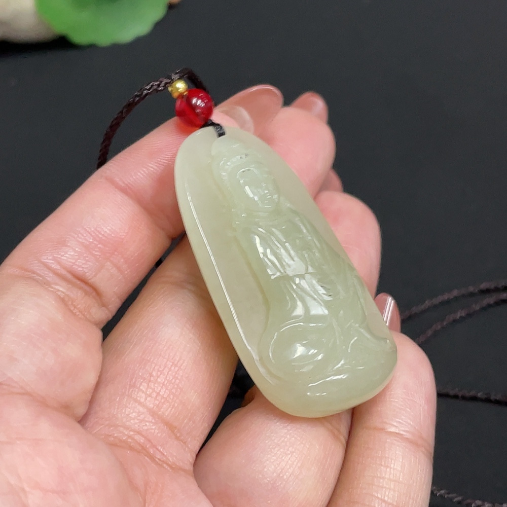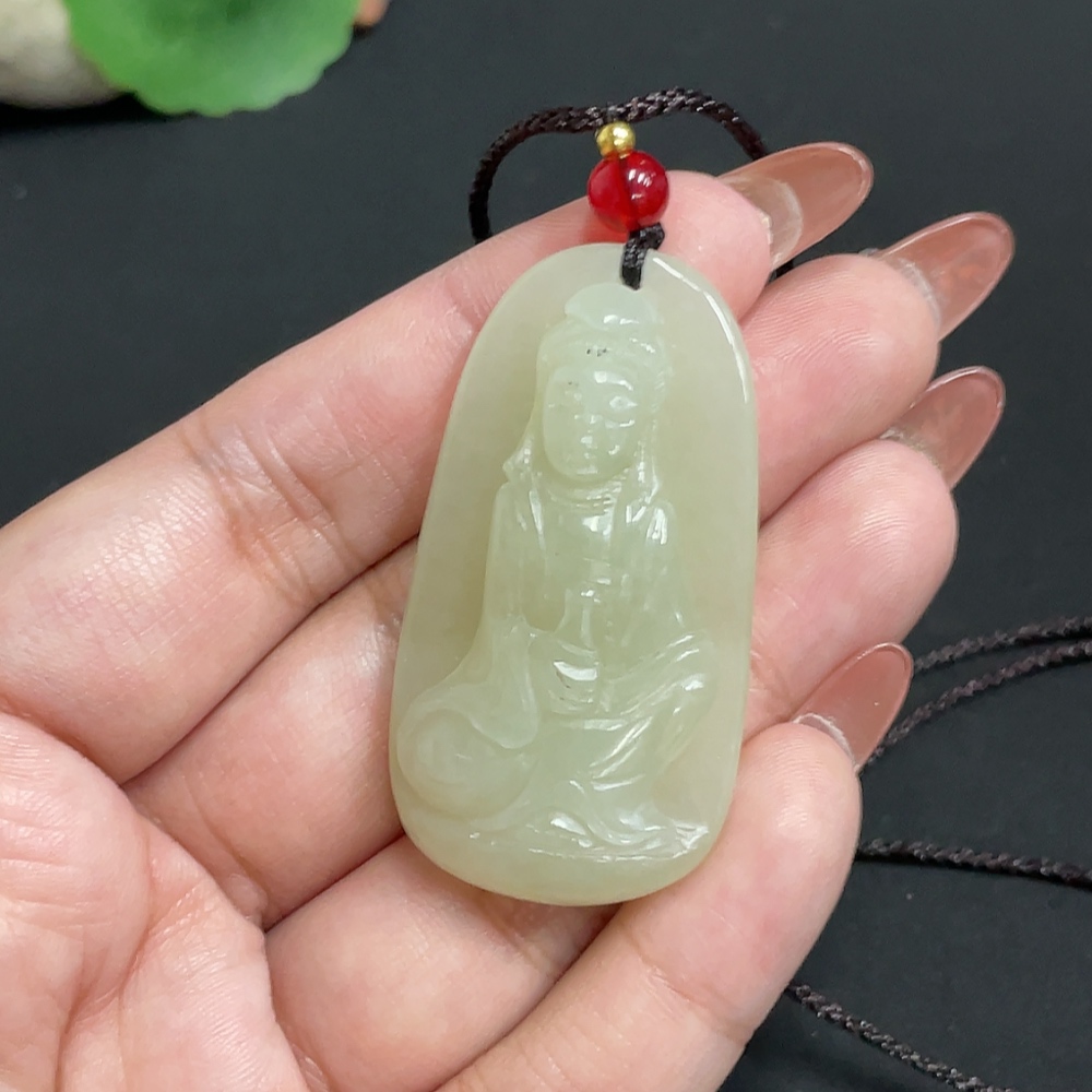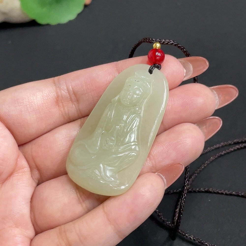 Hetian Jade Pendant Guanyin Total Weight [with rope] 20.4g