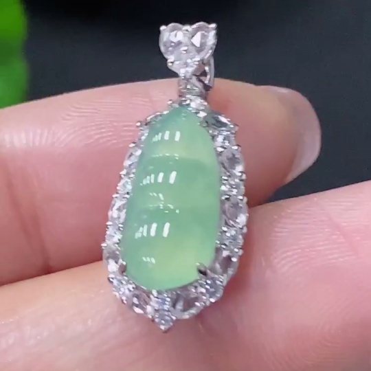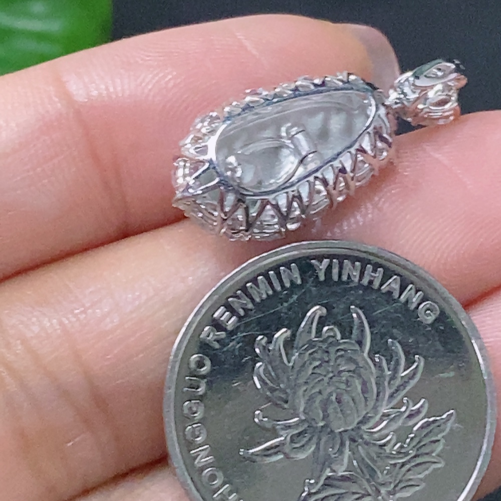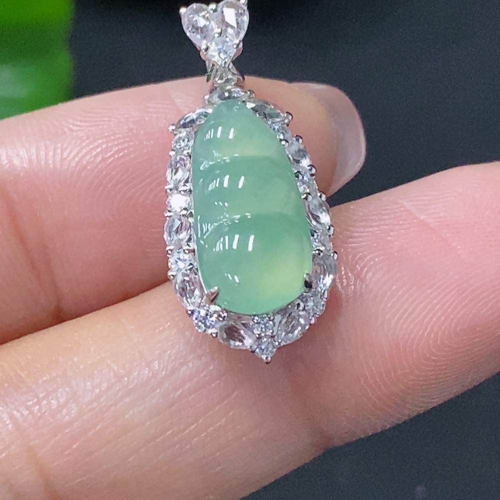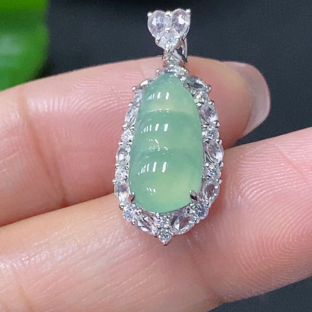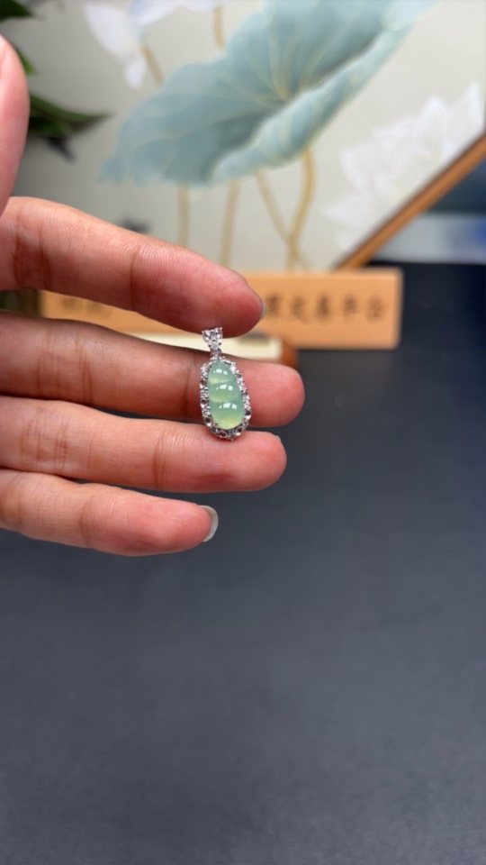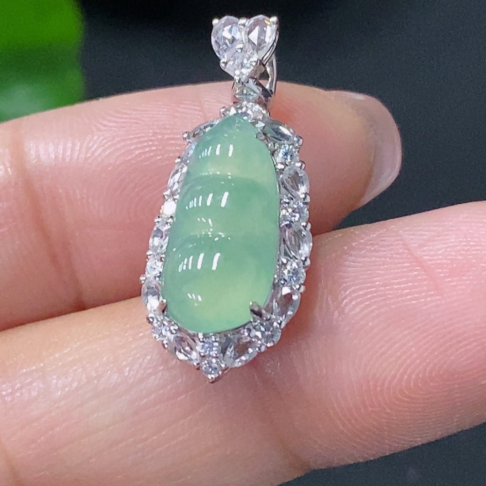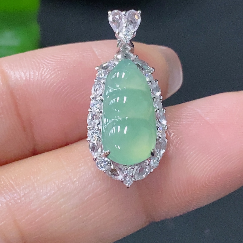 Jadeite Inlaid Lucky Bean Pendant Au36% Non-Diamond Total Weight Approx. 2.28g