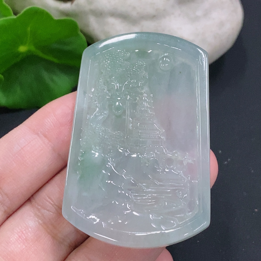 Jadeite Landscape Pendant Hanging Ornament, Total Weight Approximately 27.4 Grams