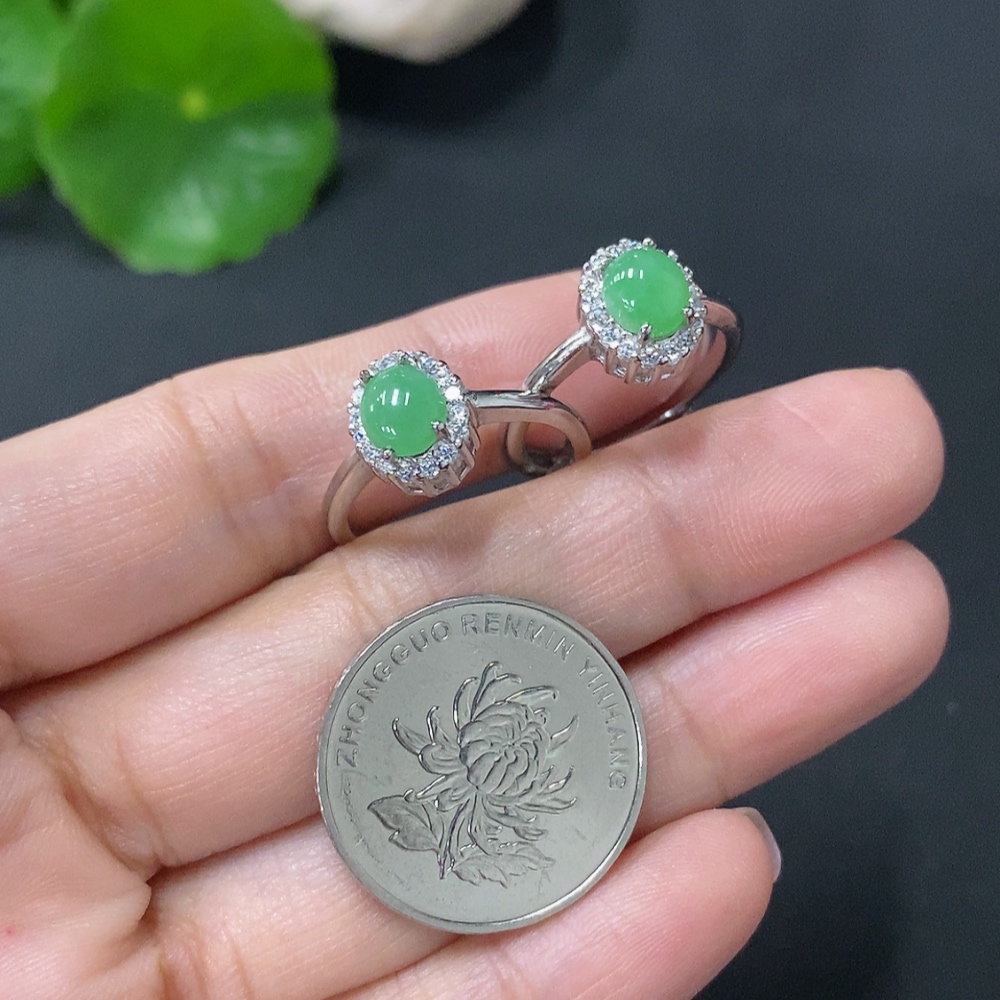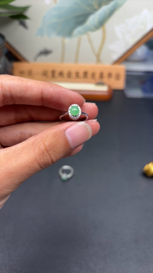 Jadeite Inlaid Ring Sell as a Lot Non-Gold