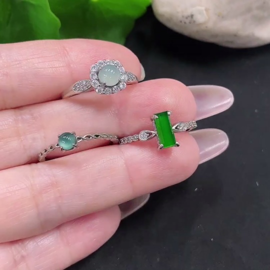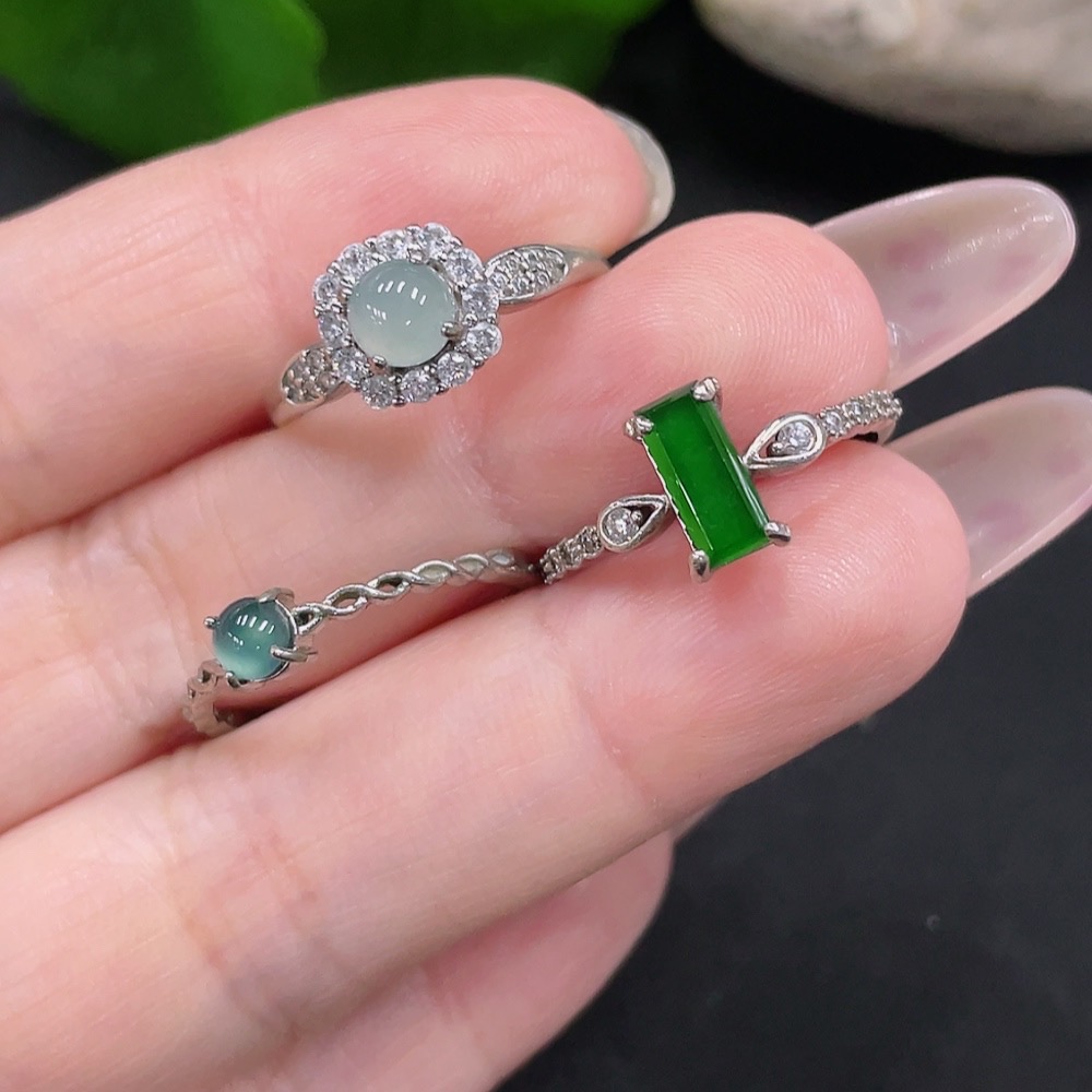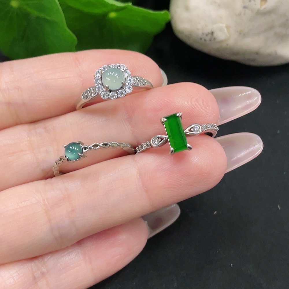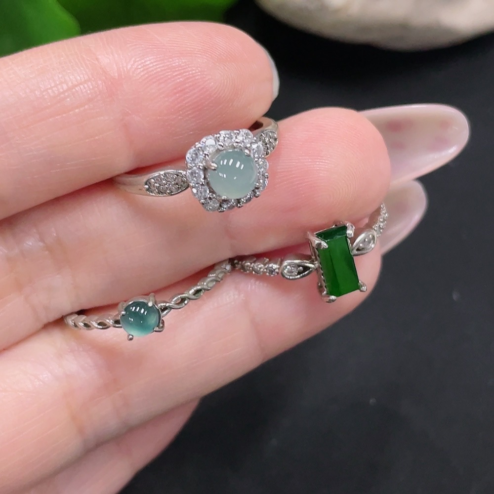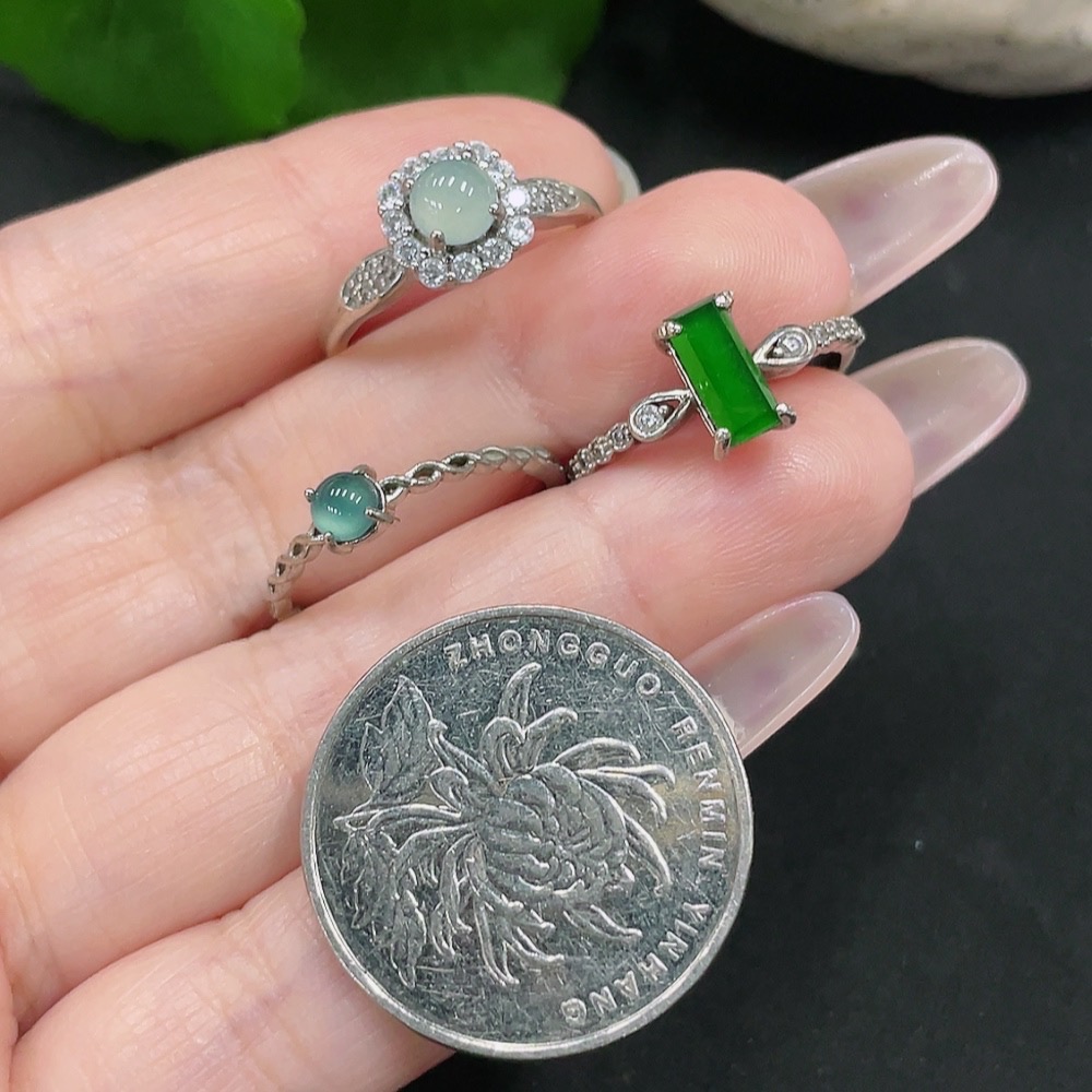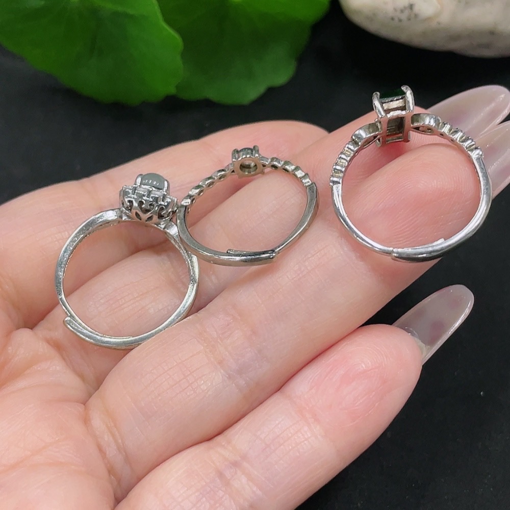 Jadeite Inlaid Ring Sell as a Lot (Non-Gold Inlaid) (Adjustable)