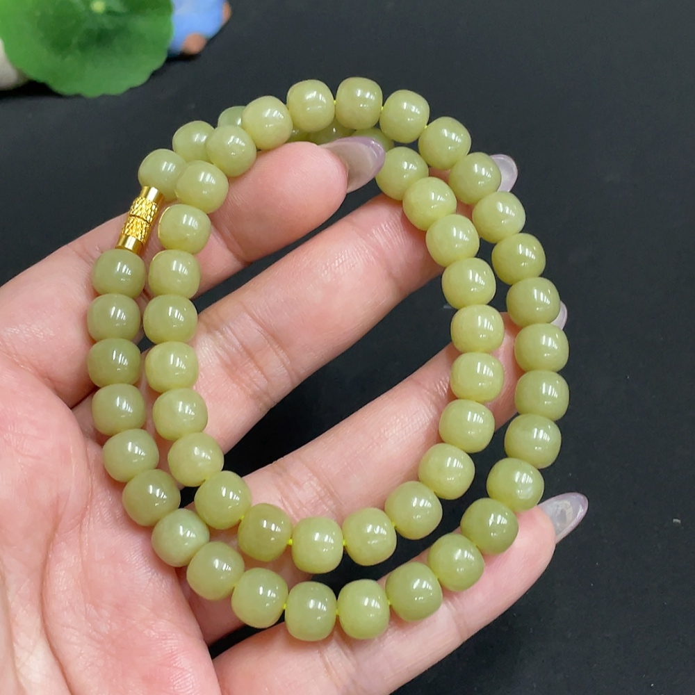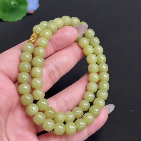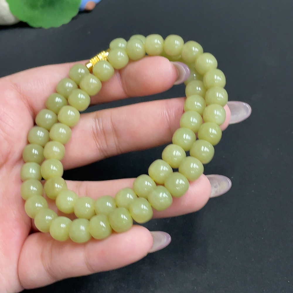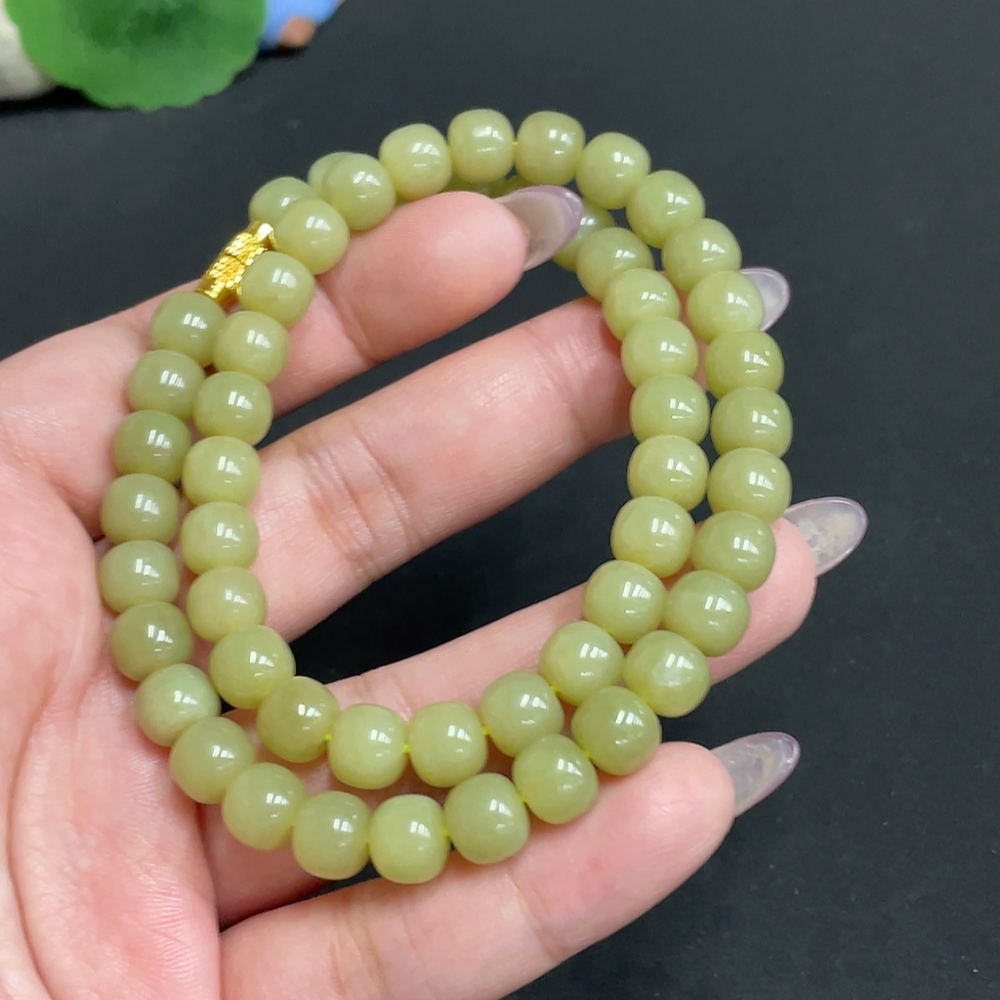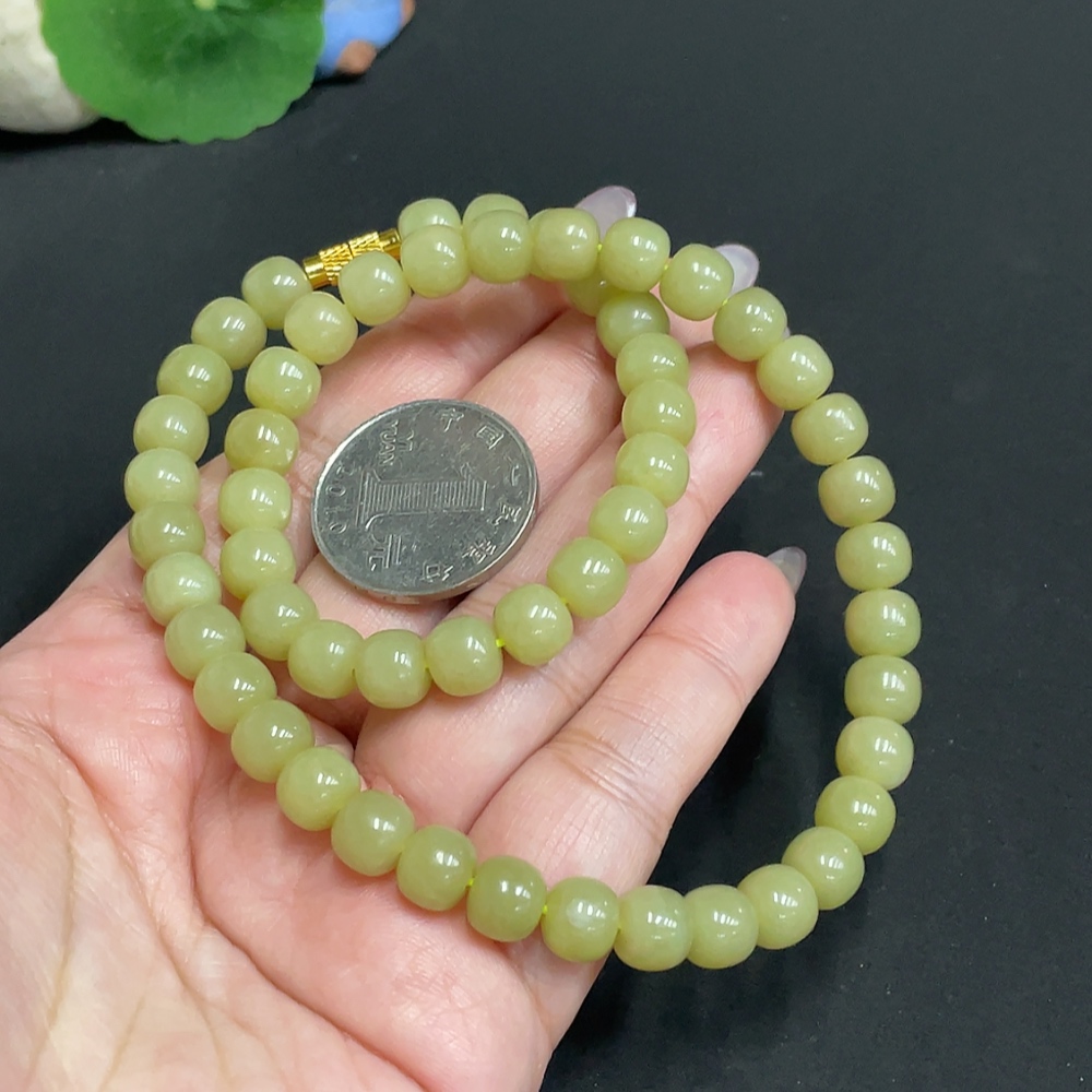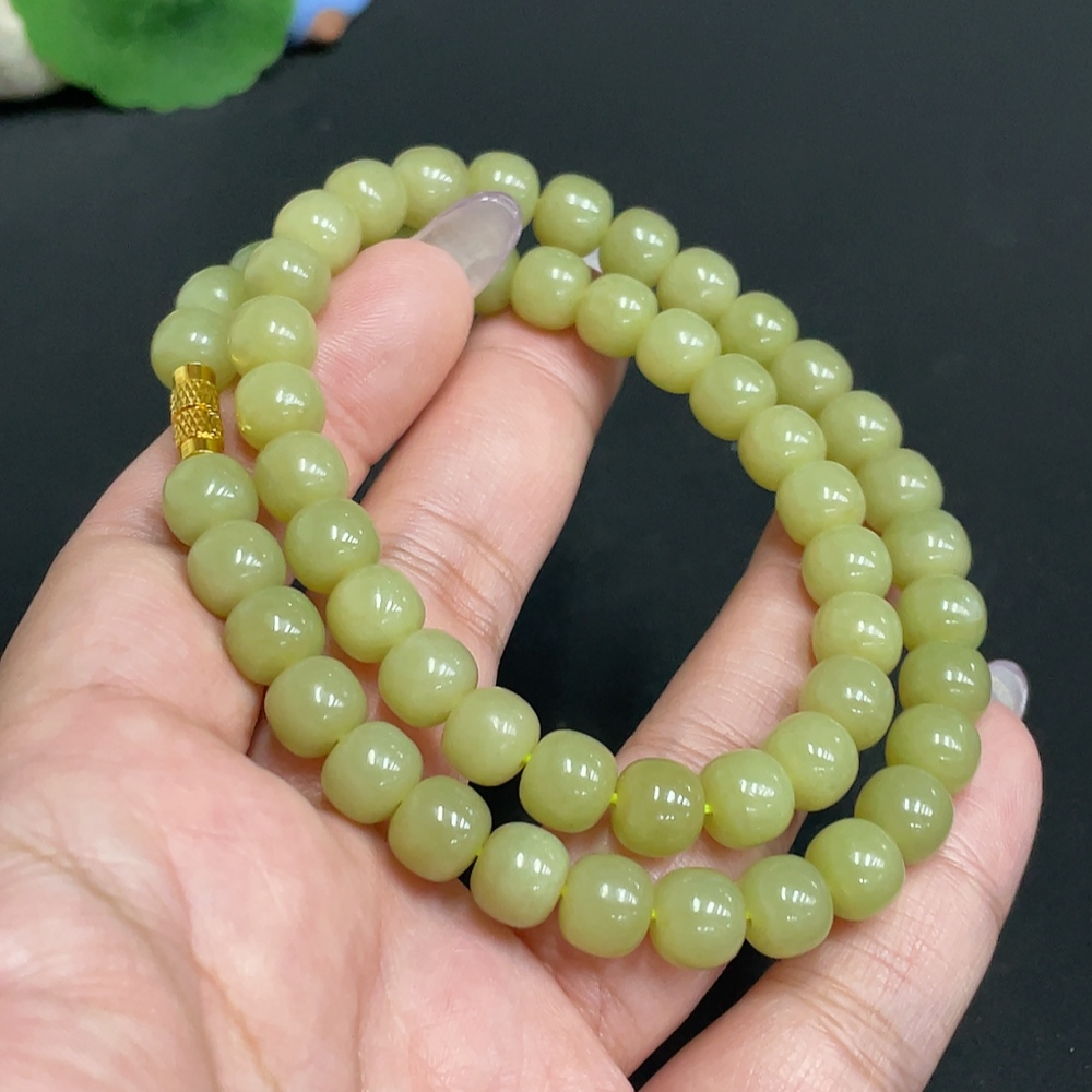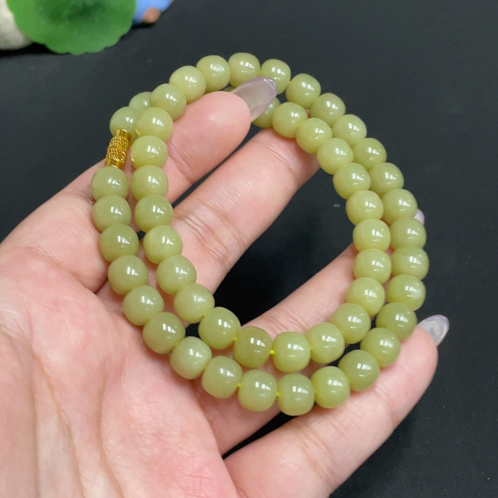 Hetian Jade Bead Necklace Approx. 7.6 mm Total Weight Approx. 43.1g Non-Gold