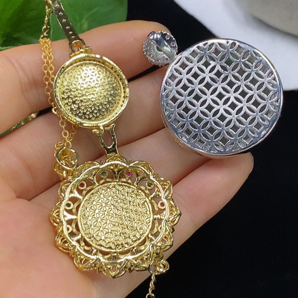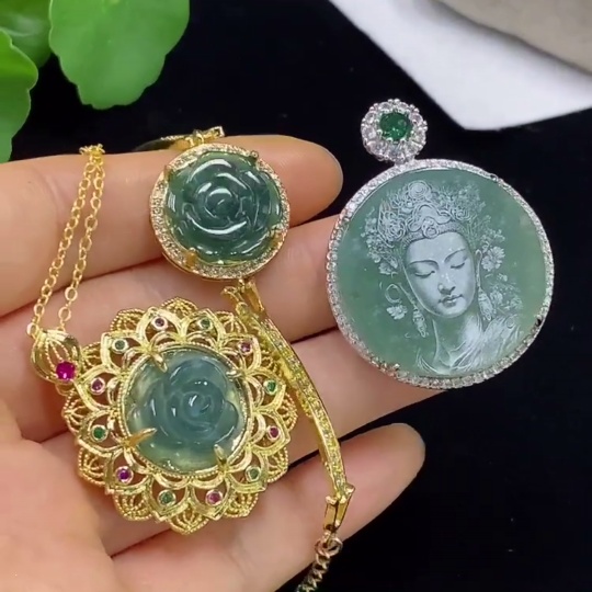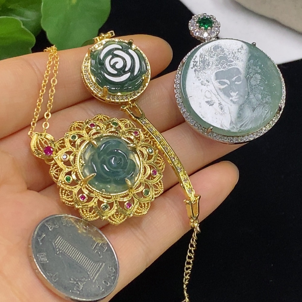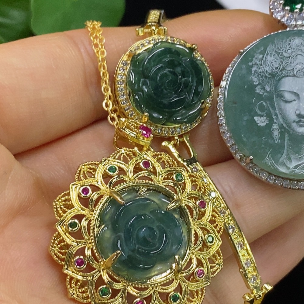 Jadeite Guanyin Inlaid Pendant/Flourishing Prosperity Inlaid (Bracelet + Necklace) Non-Gold Inlaid