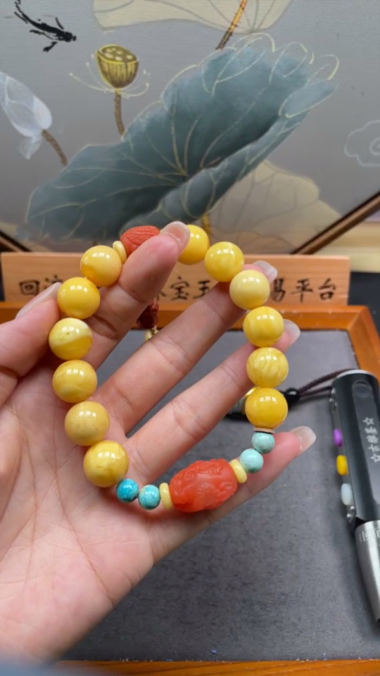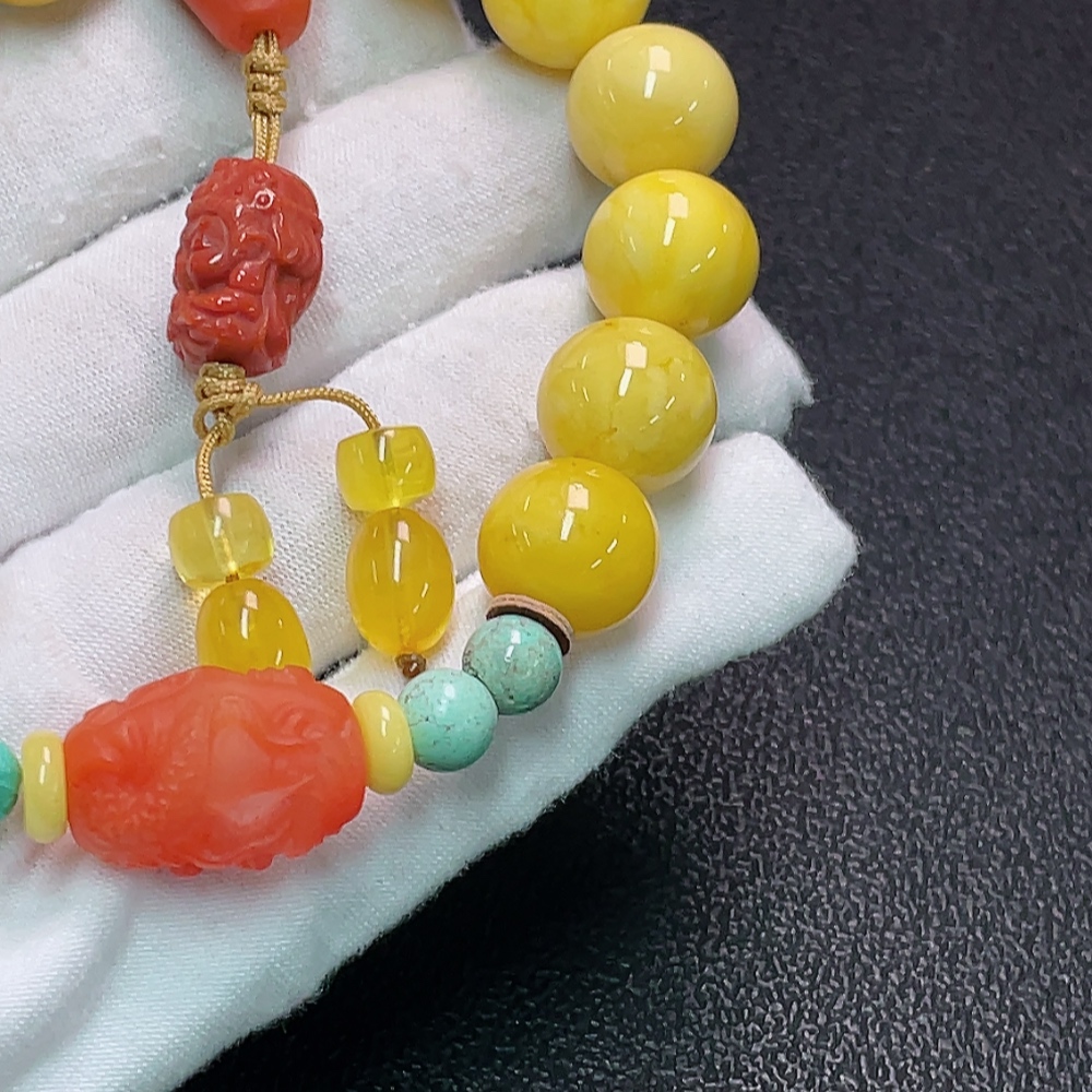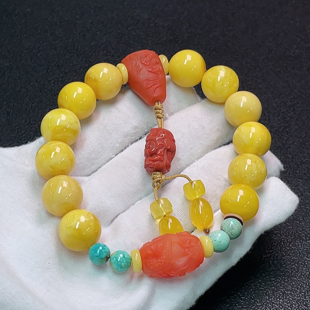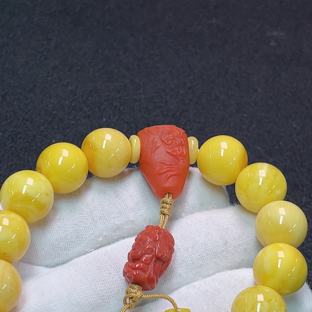 Amber and Beeswax Bracelet with Southern Red Agate (stone may be non-natural), total weight approx. 30.57g, size about 13mm