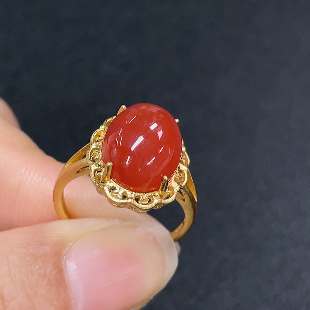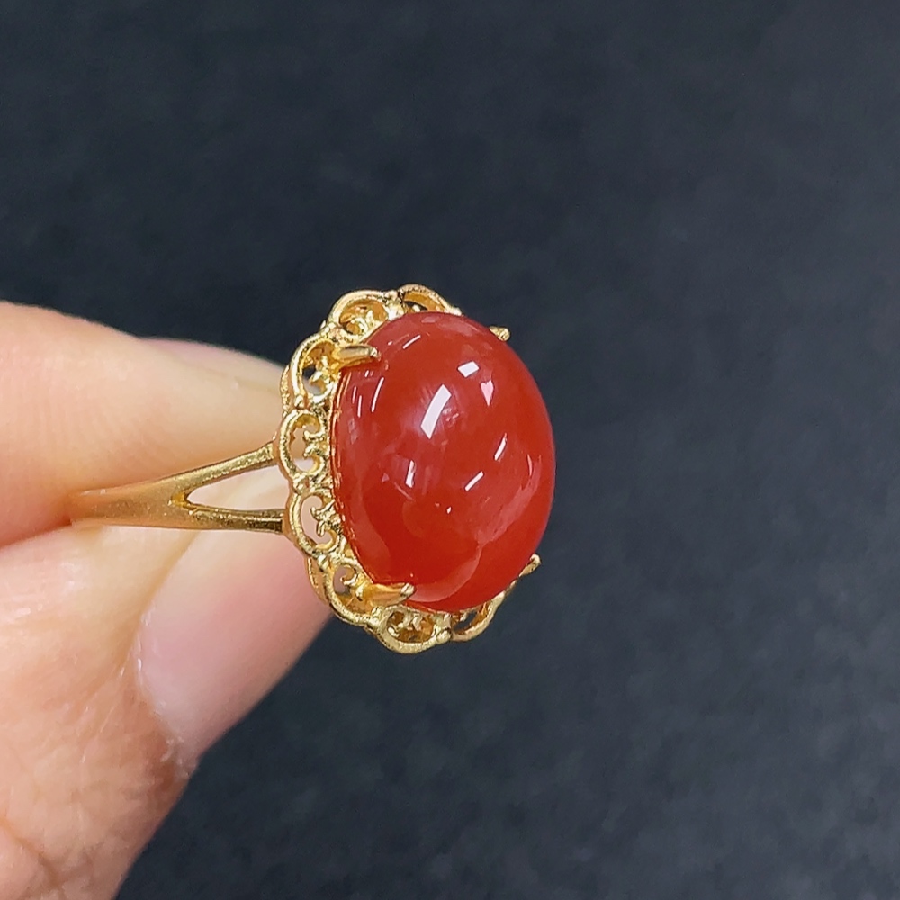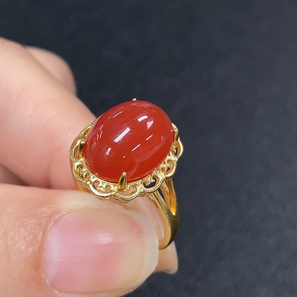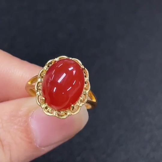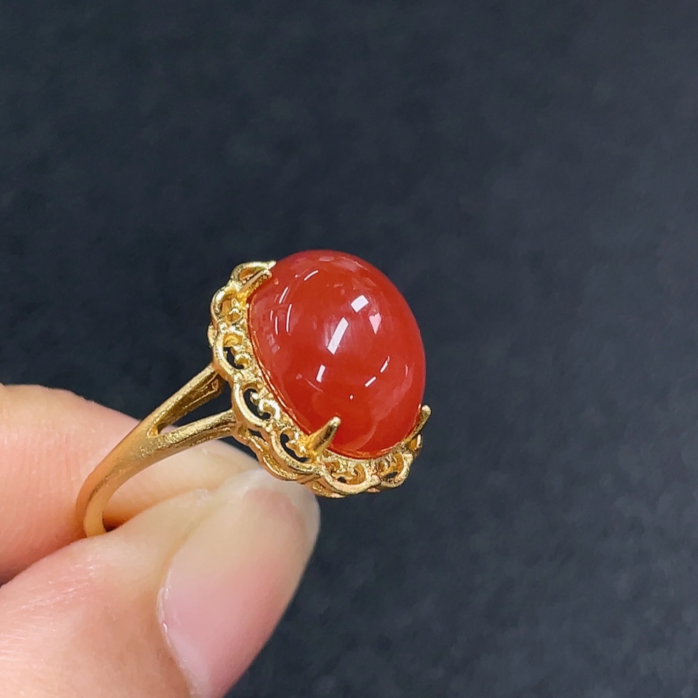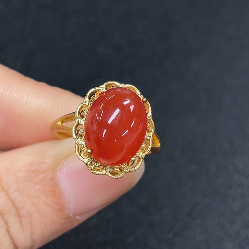 Southern Red Agate Ring Non-Gold Adjustable Visible Organic Matter Total Weight Approx. 3.61g